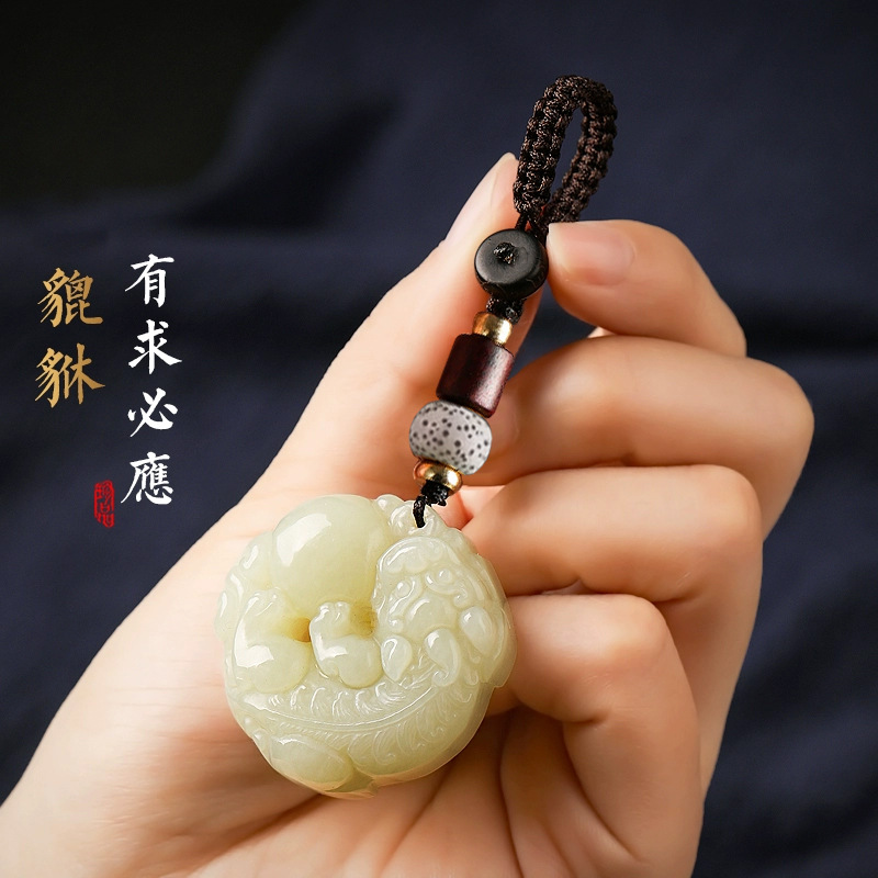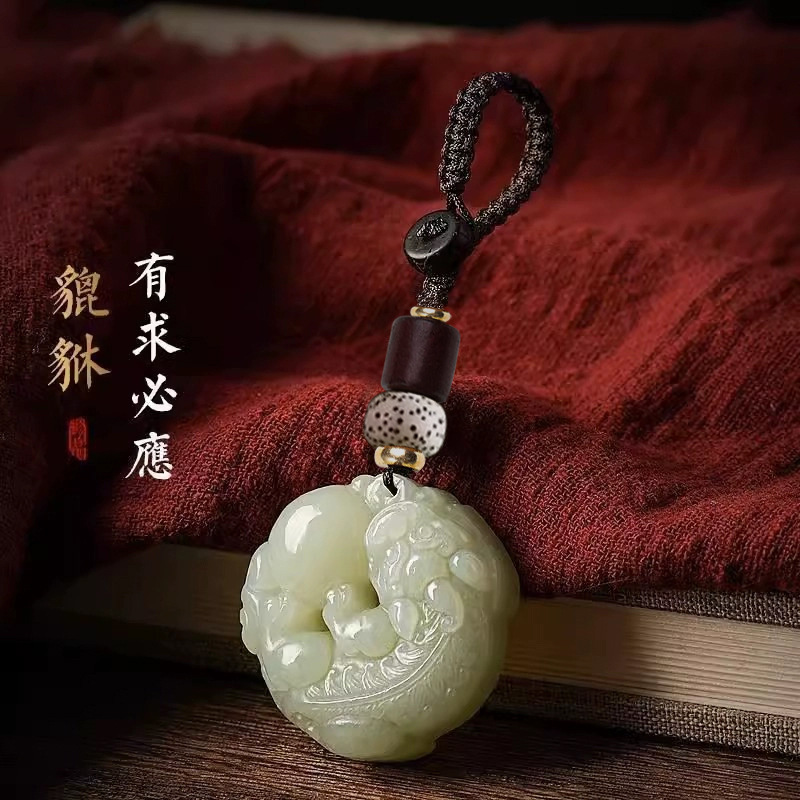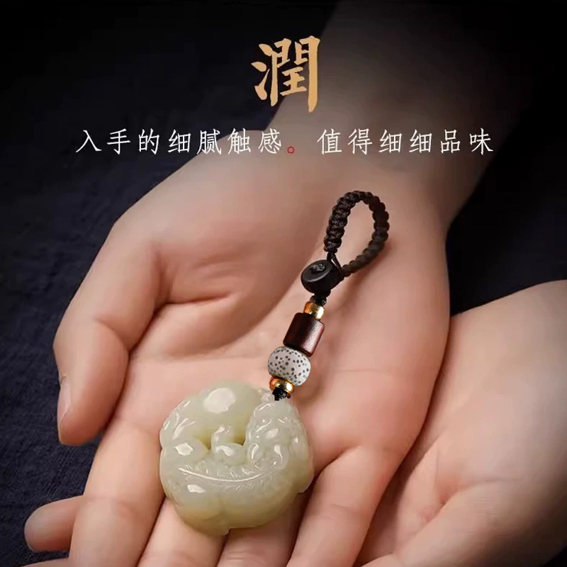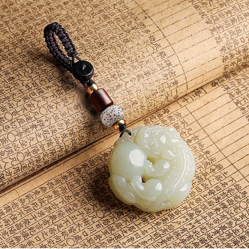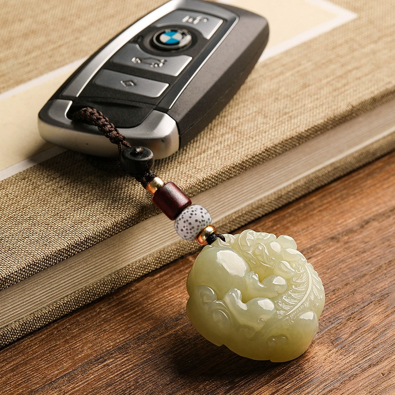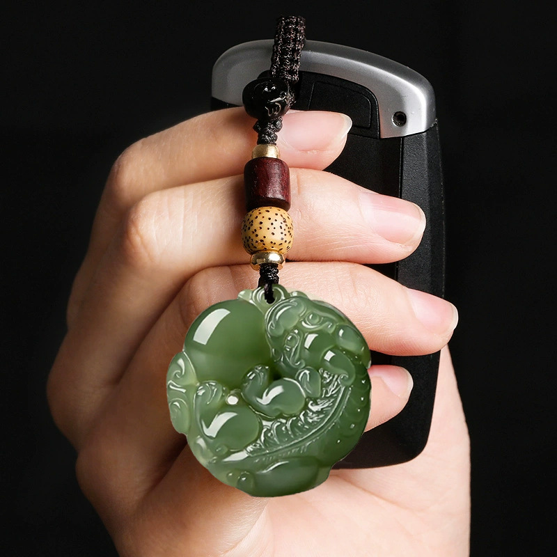 양면에 새겨진 만족보장 비취 키링, 고급 자동차 장식품, 남녀 공용 안전 펜던트, 레트로 스타일