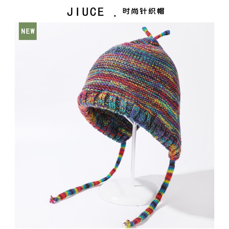 가을과 겨울 새 모자 심화 된 여성용 니트 울 캡 도파민 컬러 봉제 얼굴 작은 어부 모자