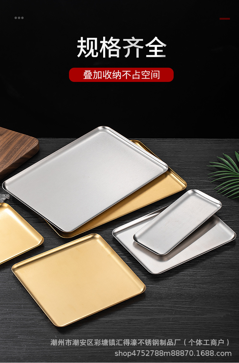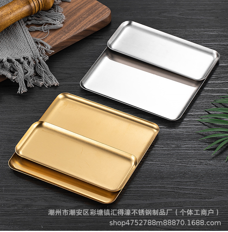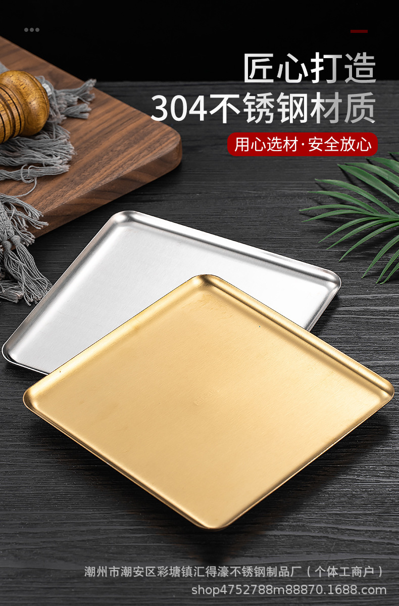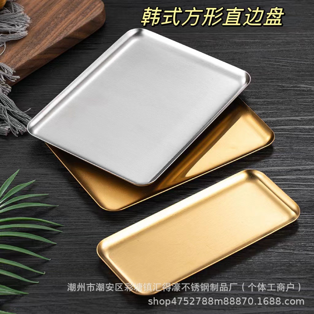한국식 스테인레스 스틸 직사각형 카페 트레이 딤섬 케이크 플레이트 상업용 황금 바베큐 플레이트 플랫 플레이트스토어 가기