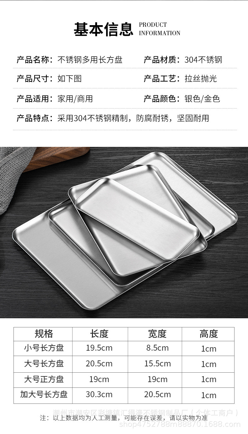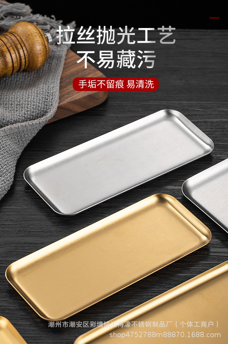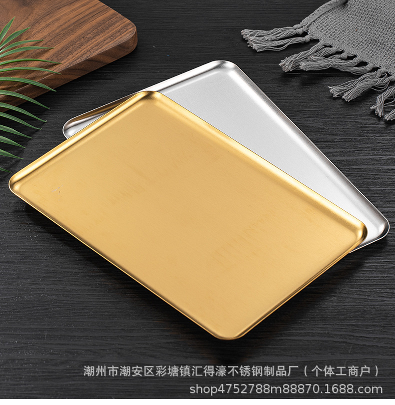 한국식 스테인레스 스틸 직사각형 카페 트레이 딤섬 케이크 플레이트 상업용 황금 바베큐 플레이트 플랫 플레이트스토어 가기