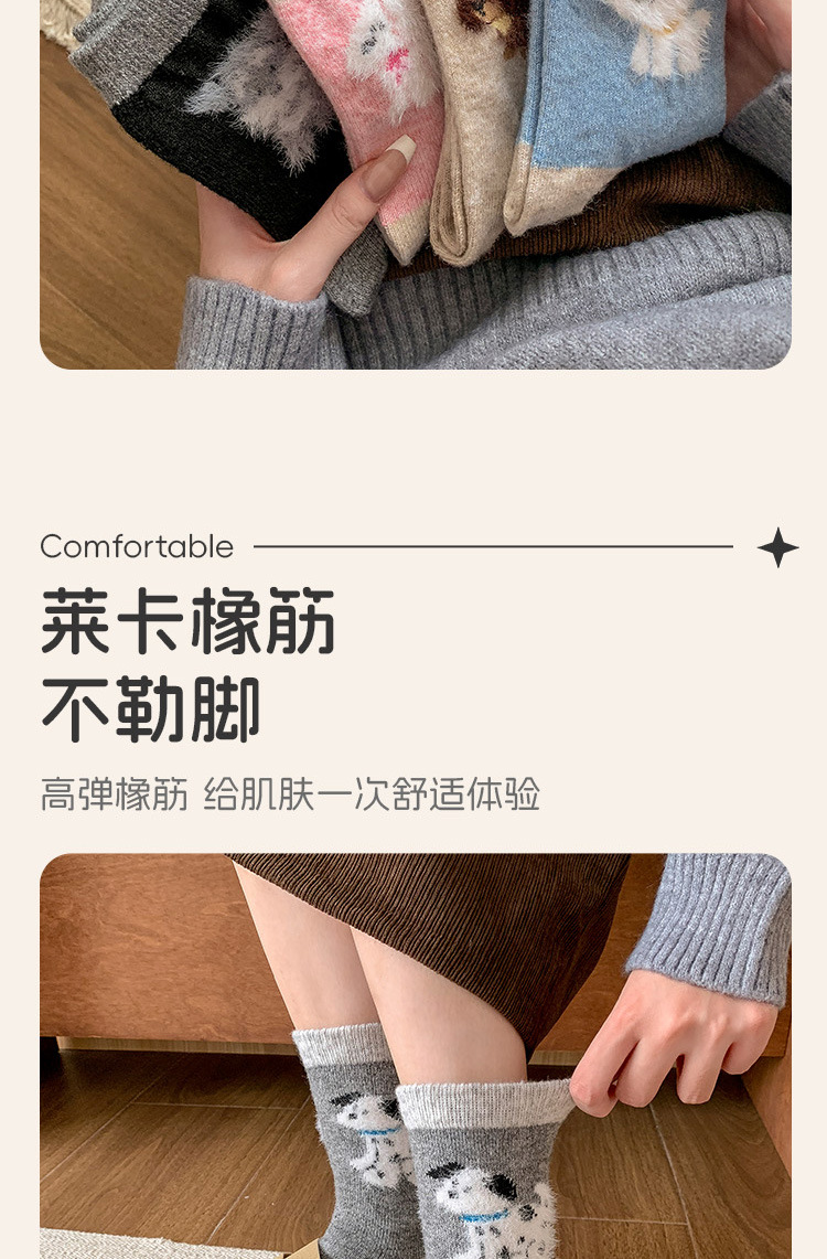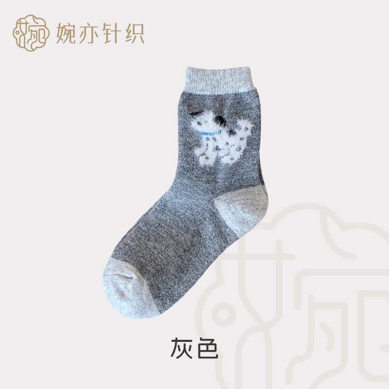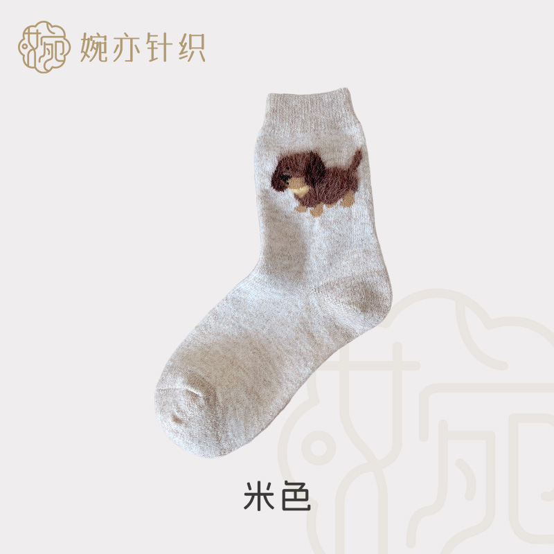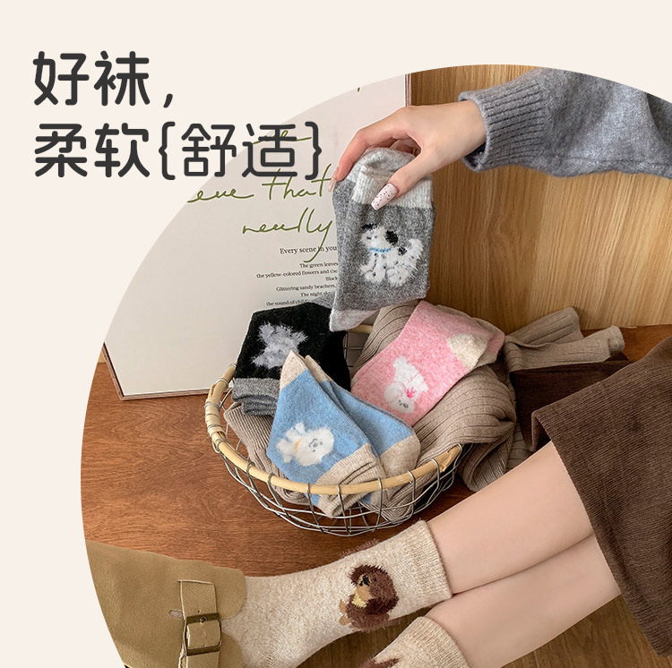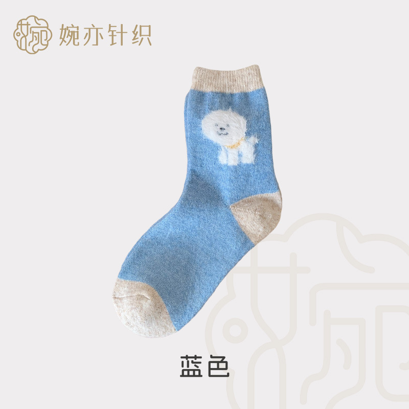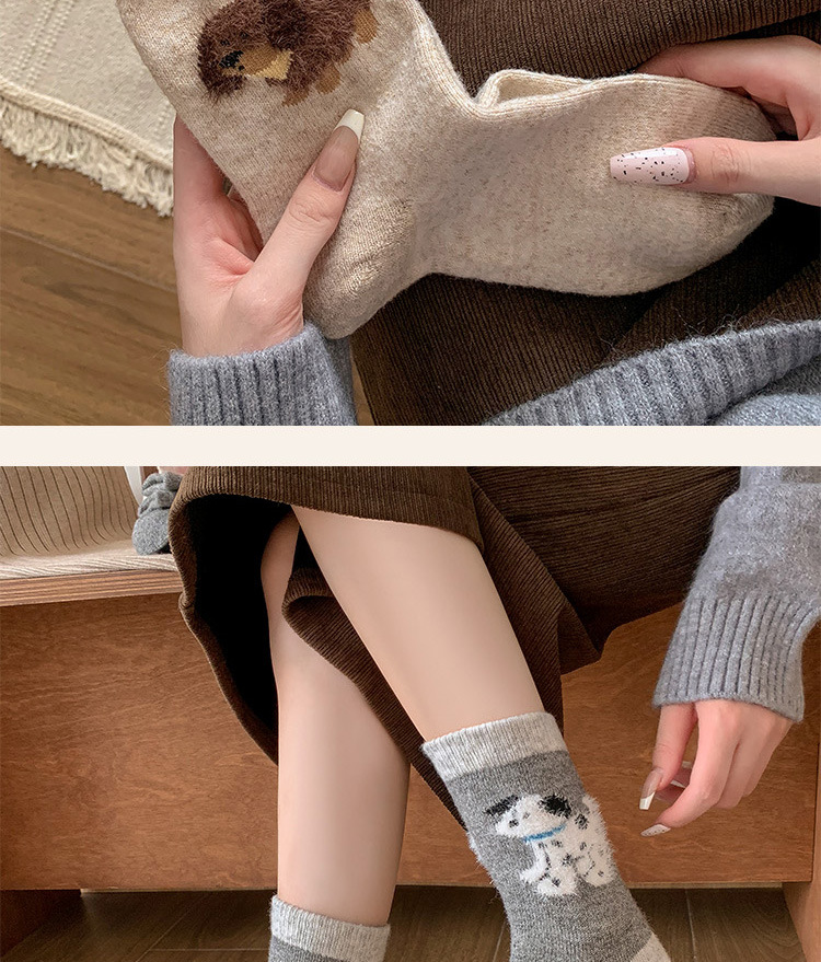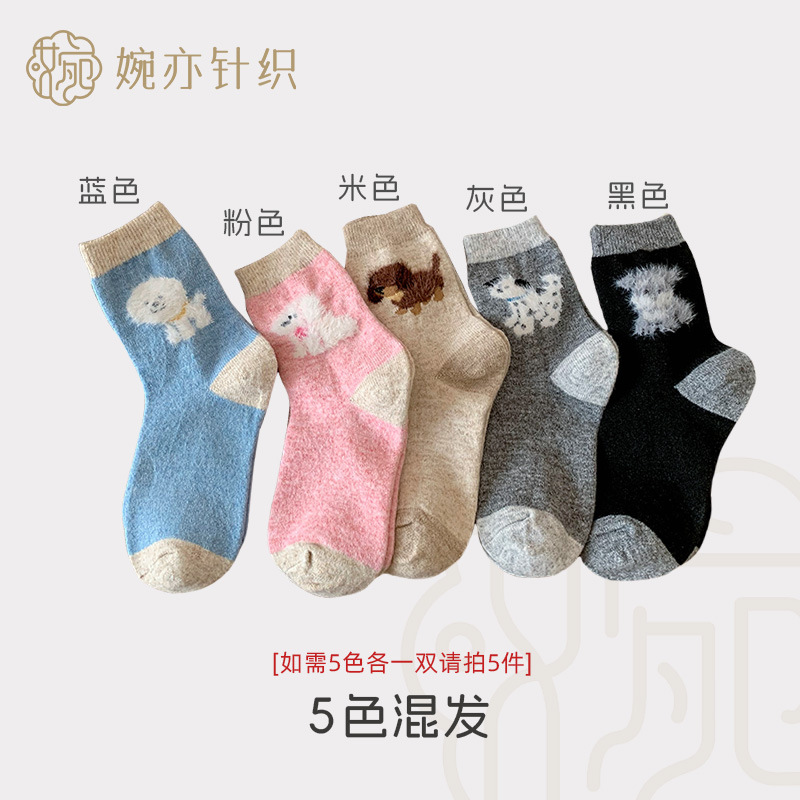 가을과 겨울 만화 퍼피 귀여운 한국 다목적 양말 두꺼운 따뜻한 달 양말 남자와 여자 중간 튜브 양모 양말스토어 가기
