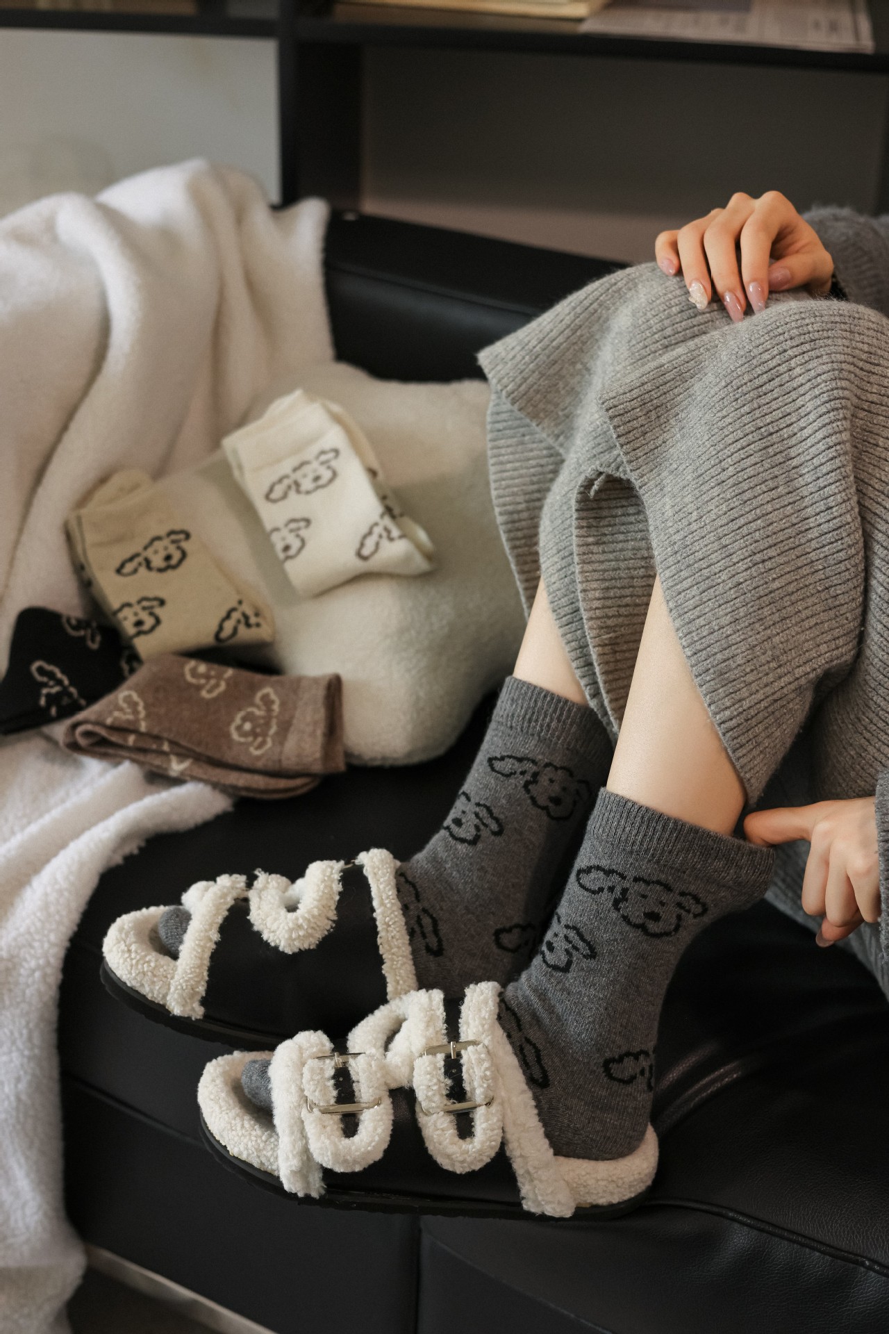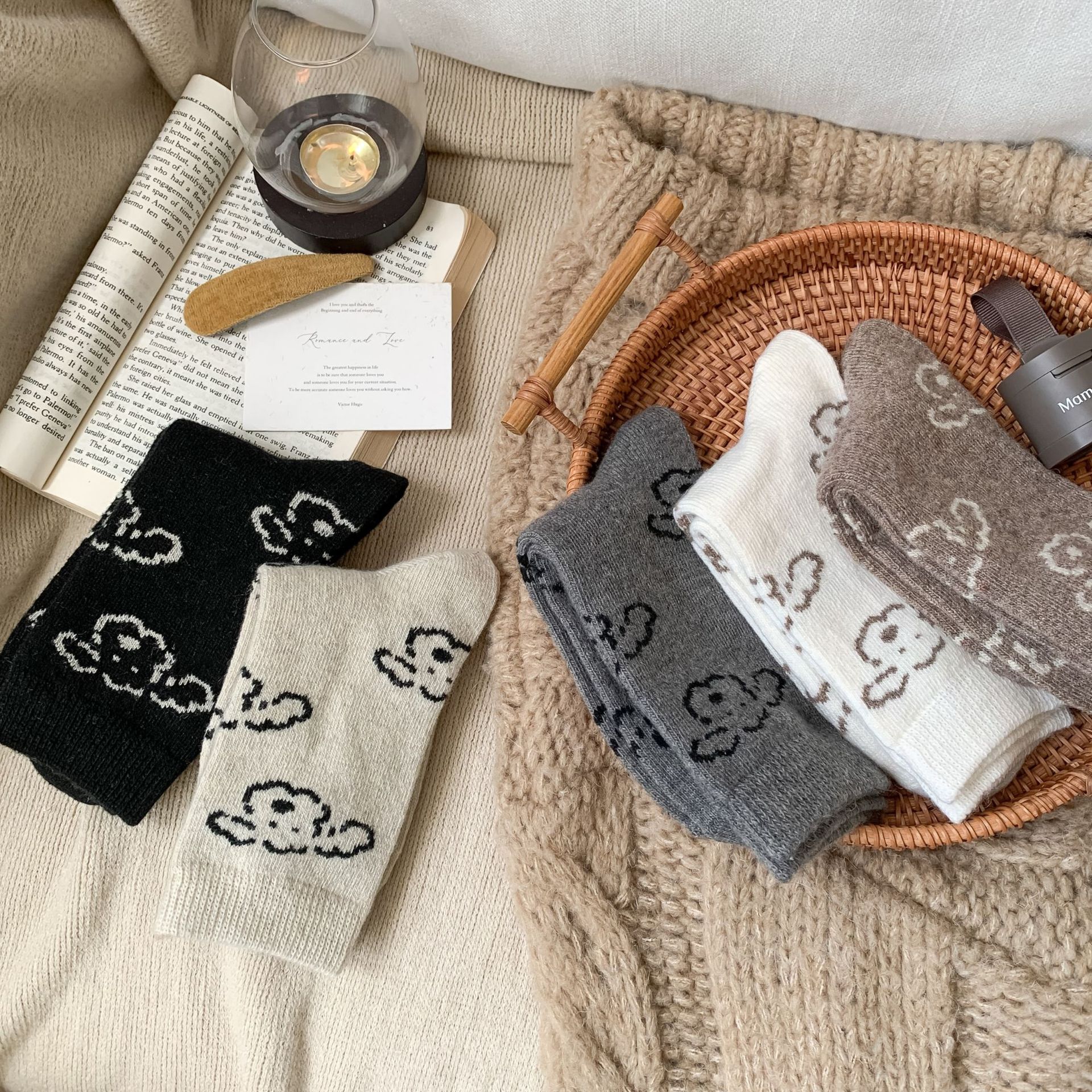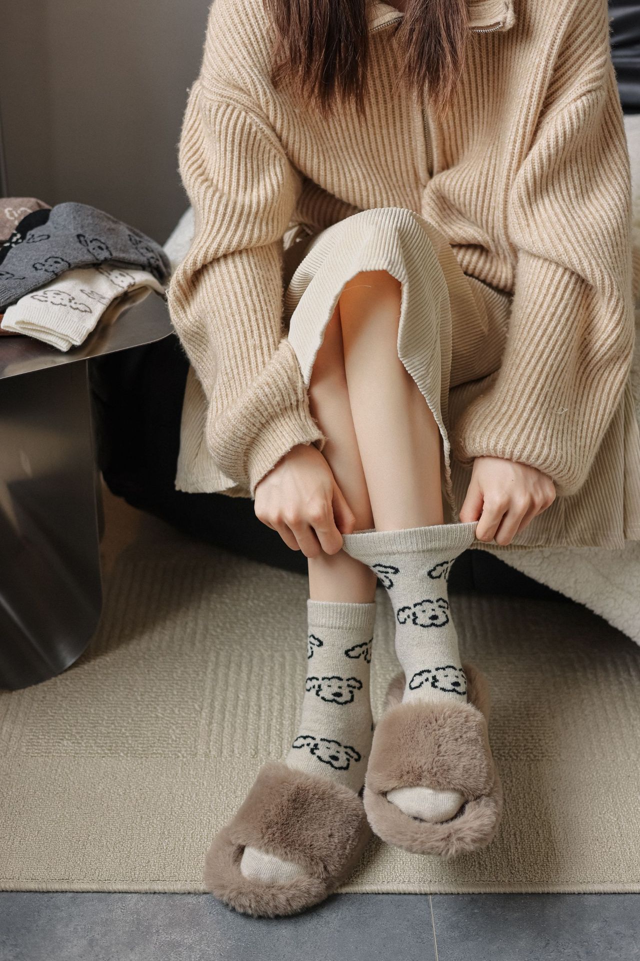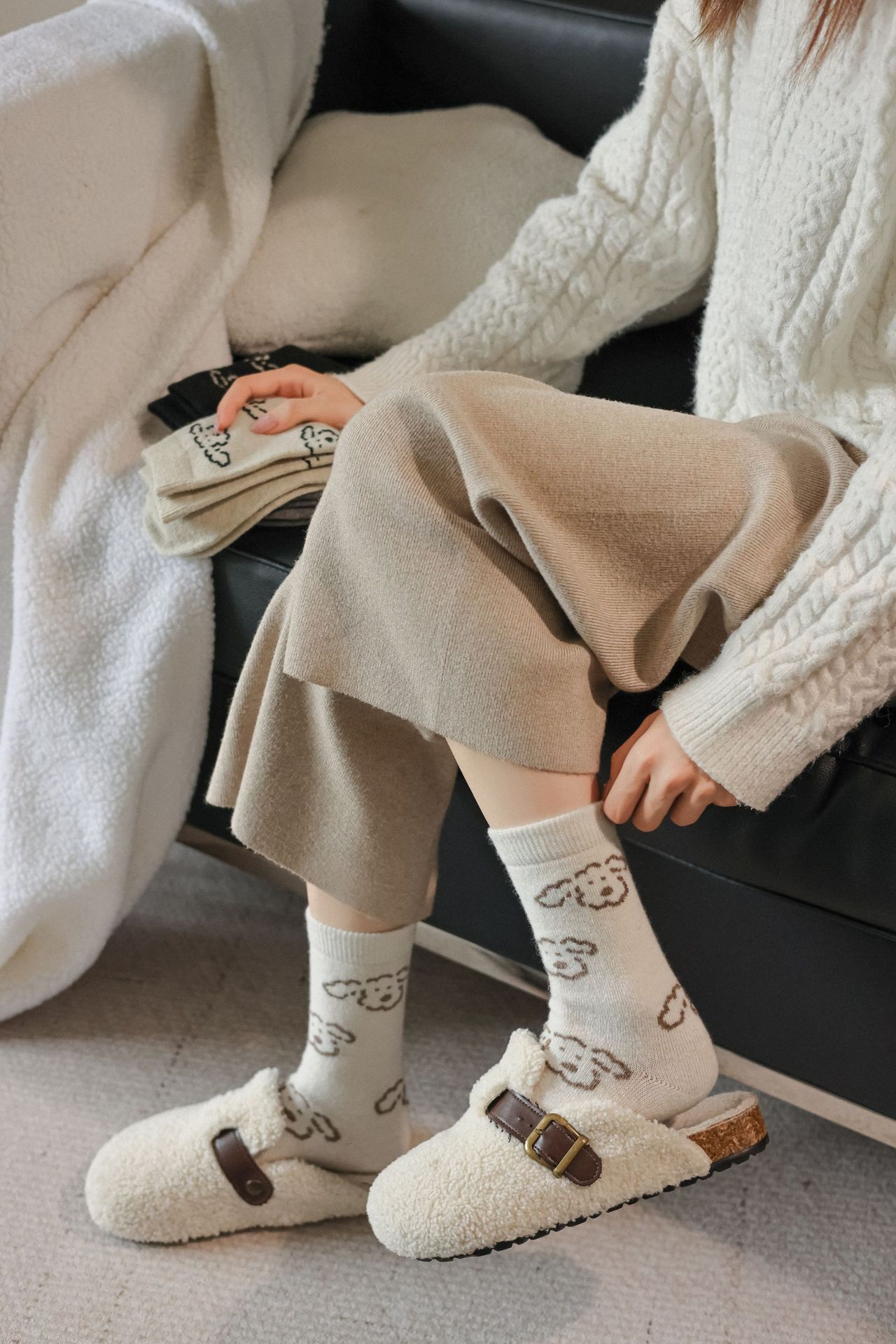 양모 강아지 양말 가을과 겨울 두꺼운 따뜻한 귀여운 Ins Birkenstock 신발 일본 만화 중간 튜브 양말스토어 가기