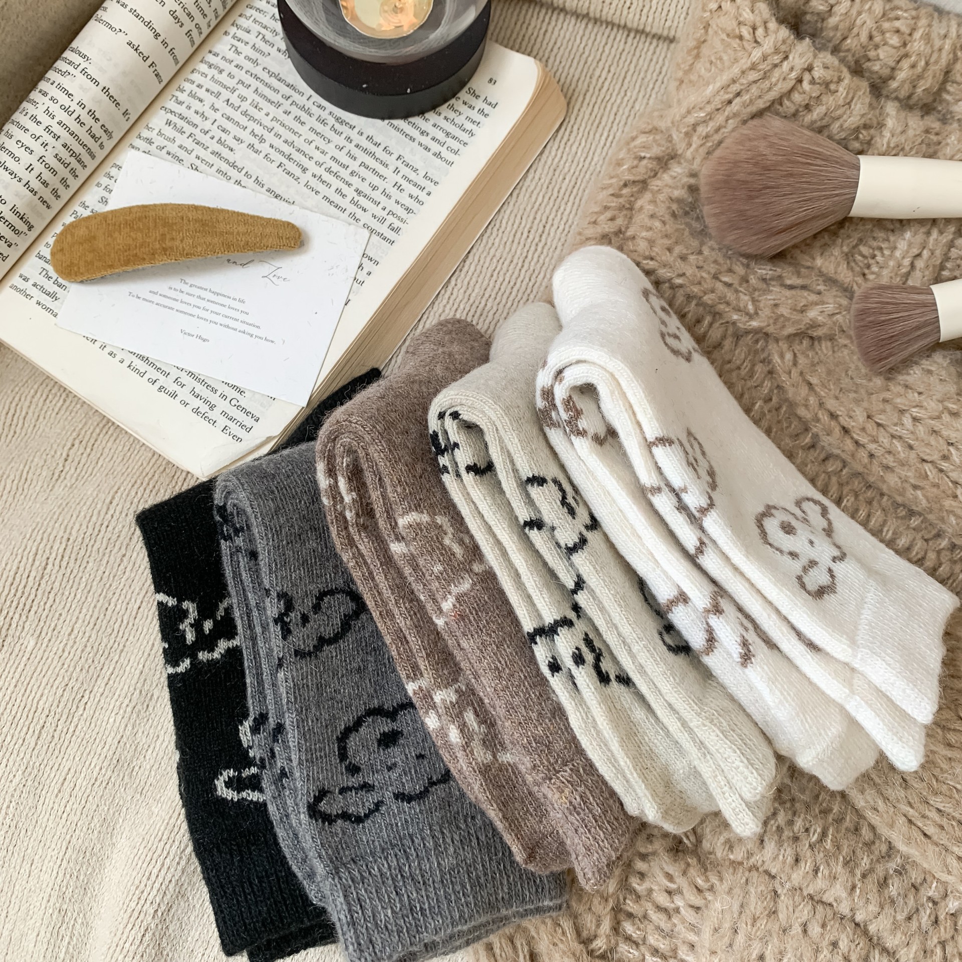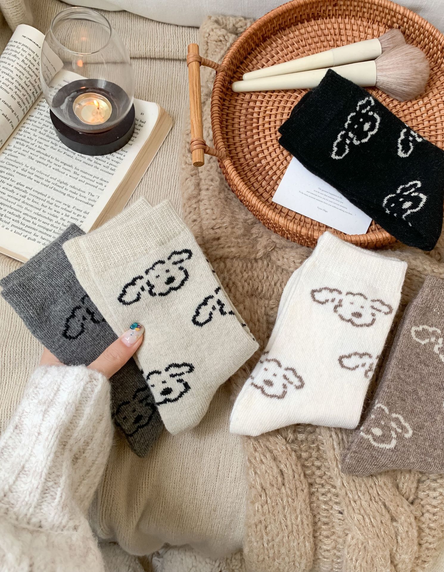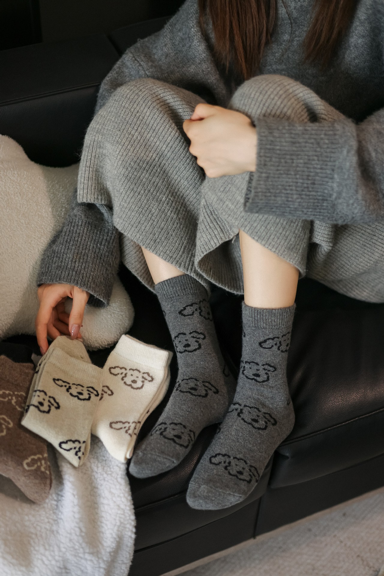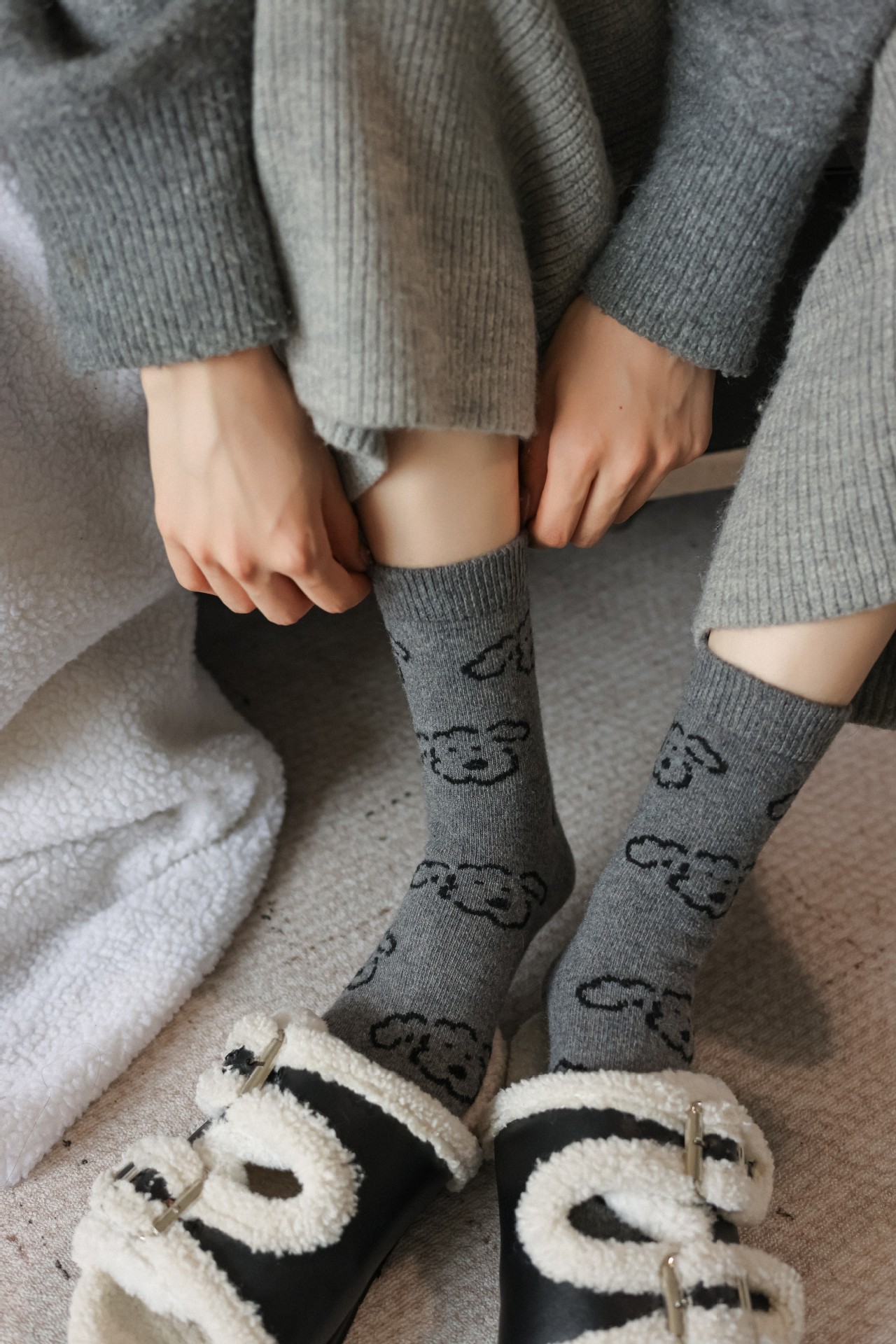 양모 강아지 양말 가을과 겨울 두꺼운 따뜻한 귀여운 Ins Birkenstock 신발 일본 만화 중간 튜브 양말스토어 가기