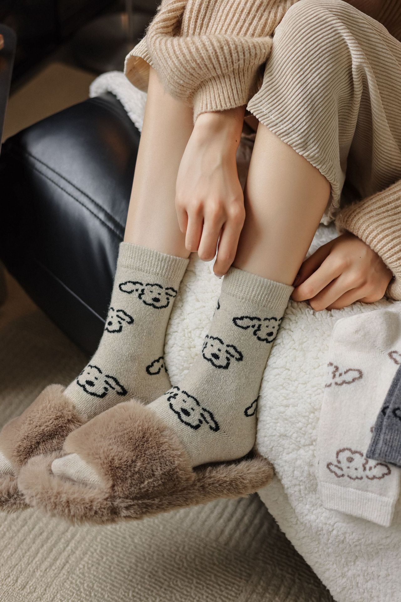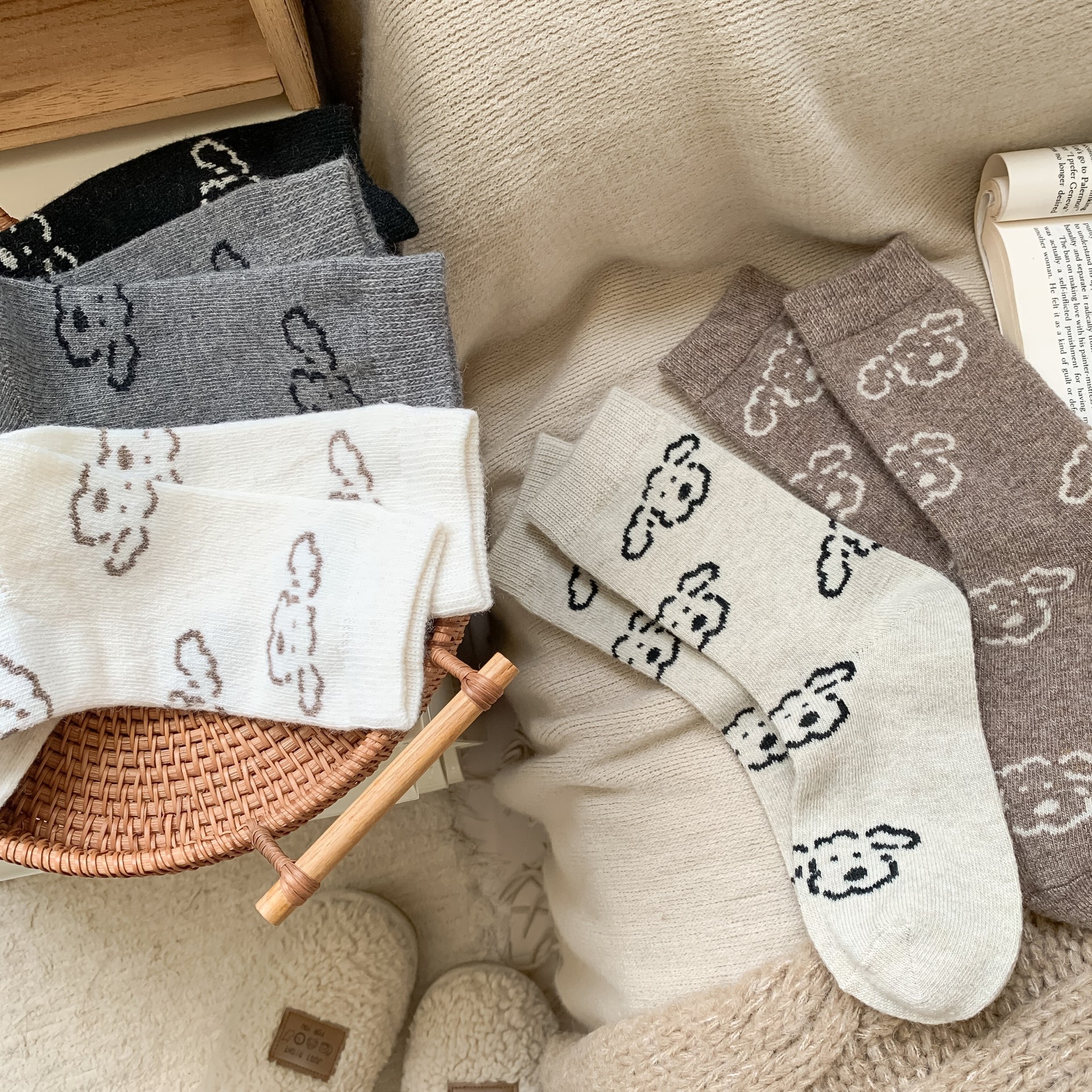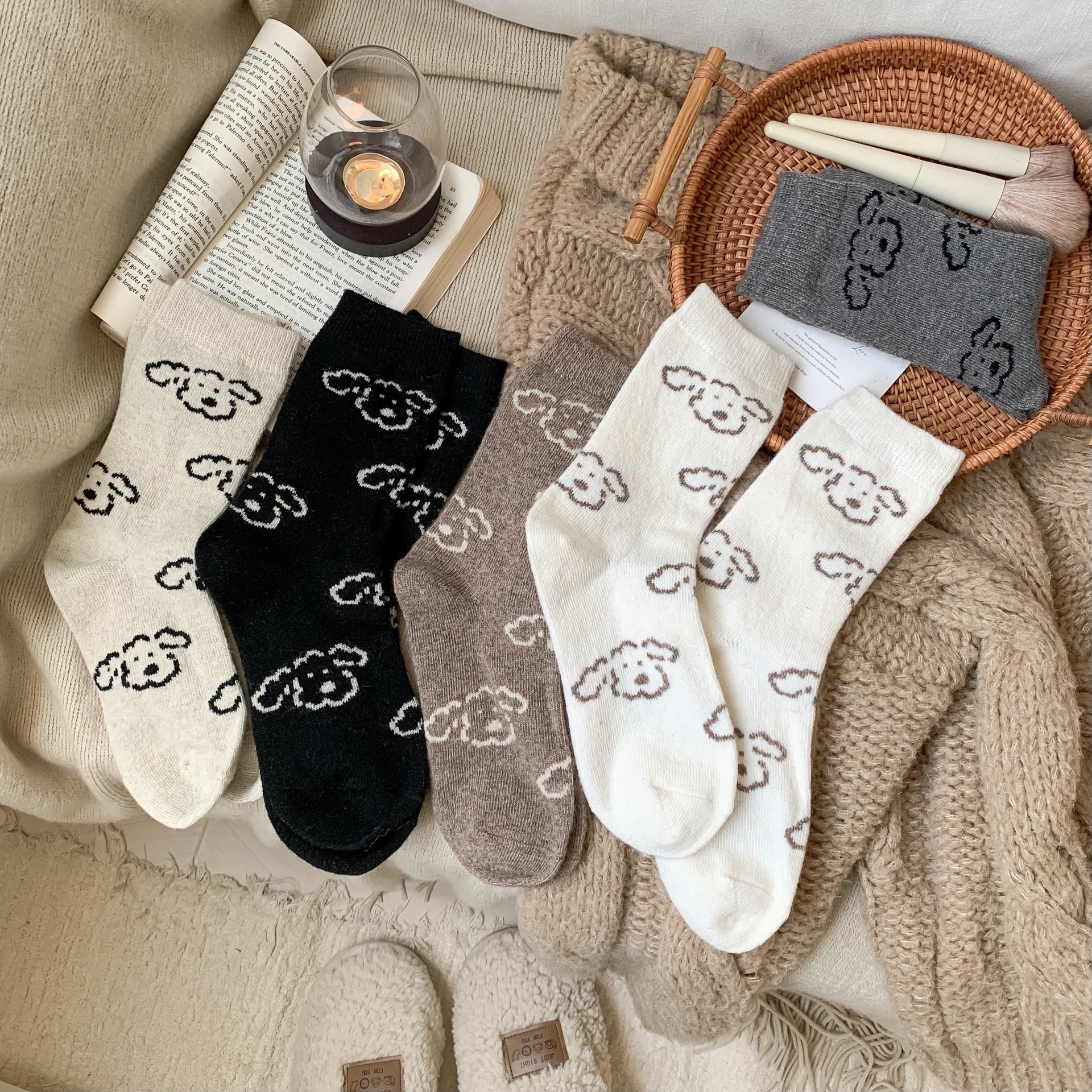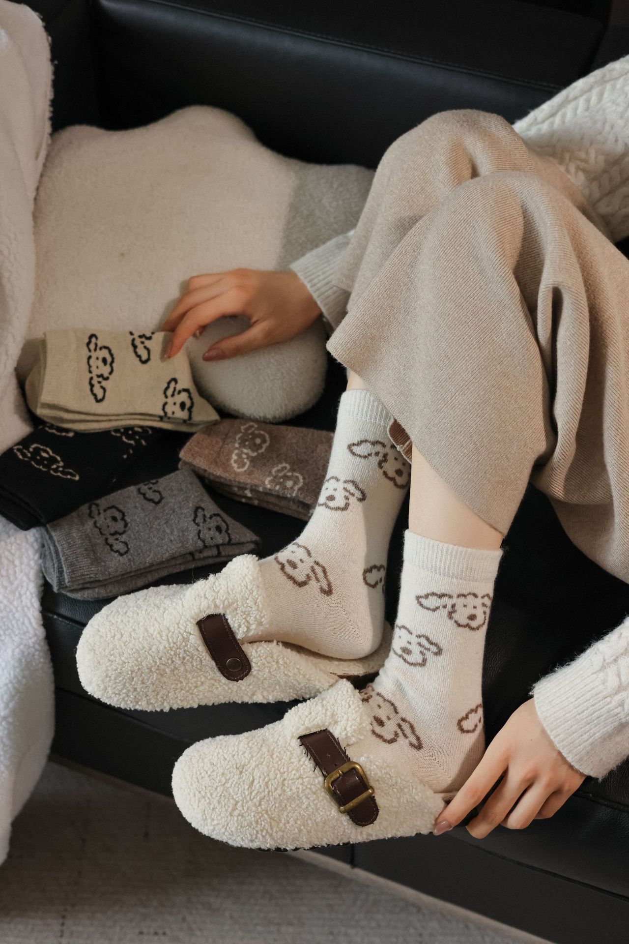 양모 강아지 양말 가을과 겨울 두꺼운 따뜻한 귀여운 Ins Birkenstock 신발 일본 만화 중간 튜브 양말