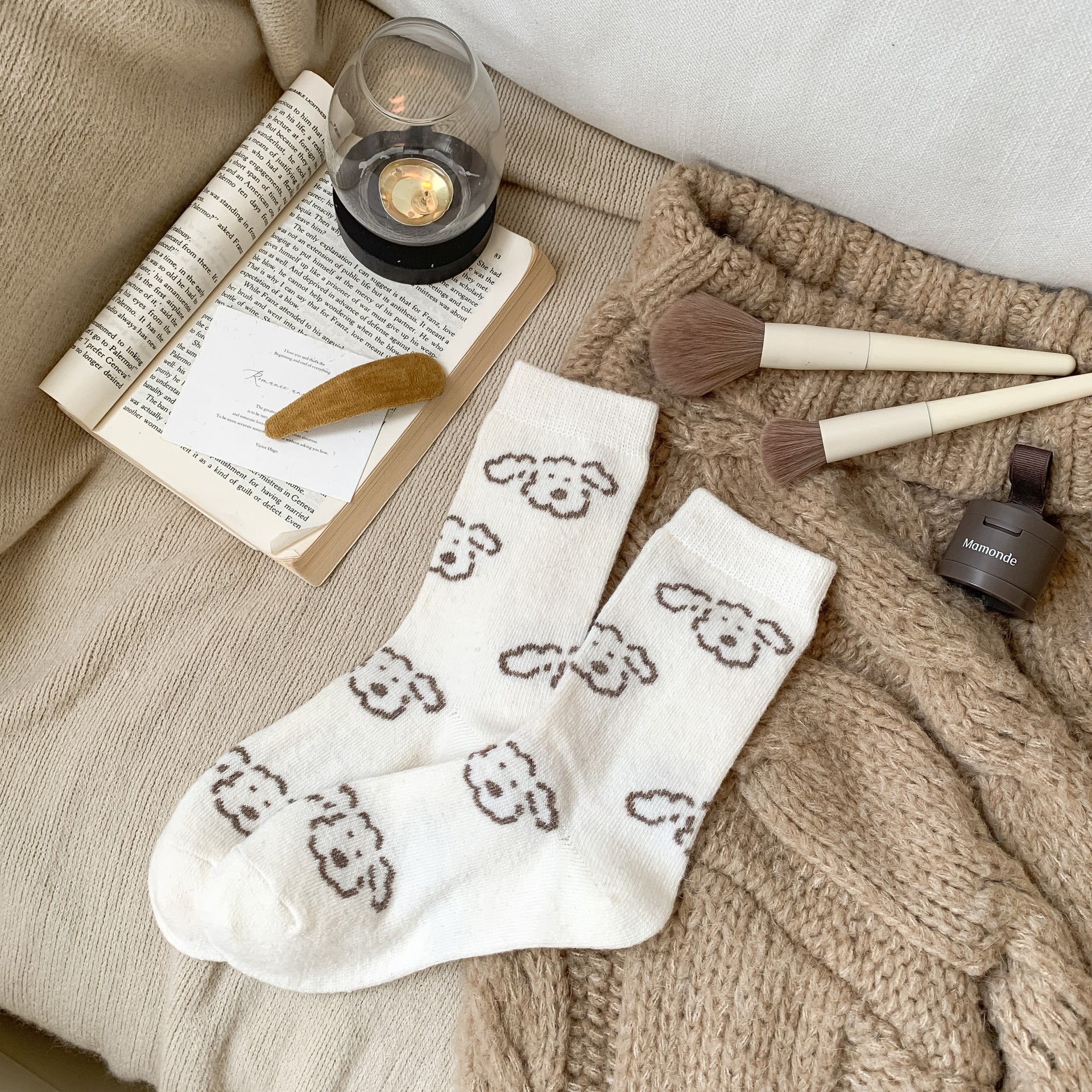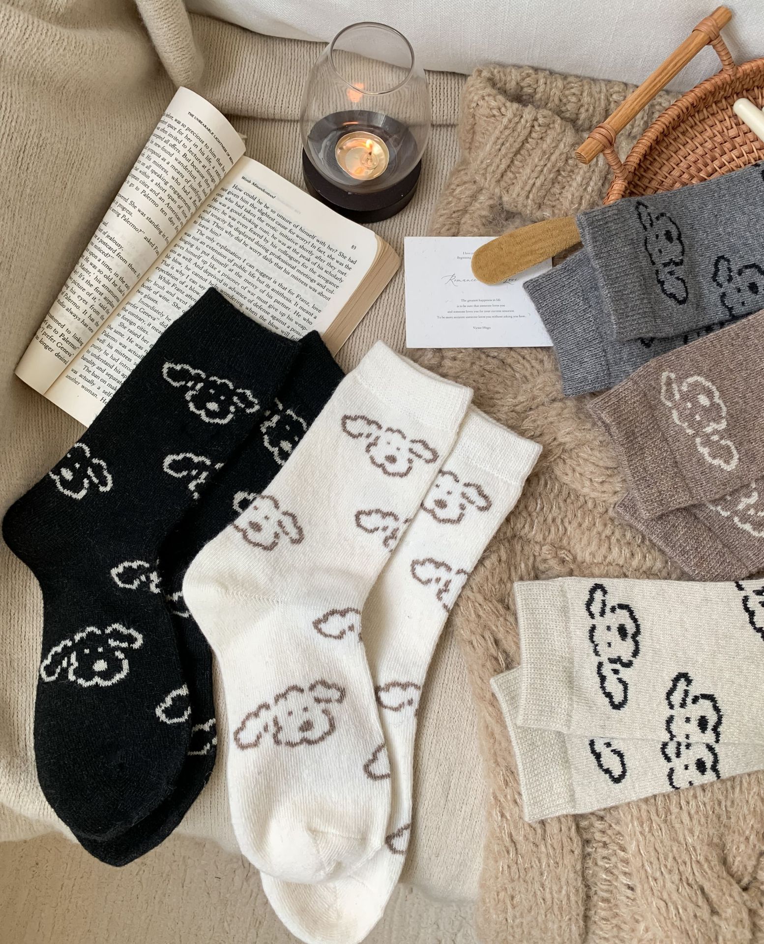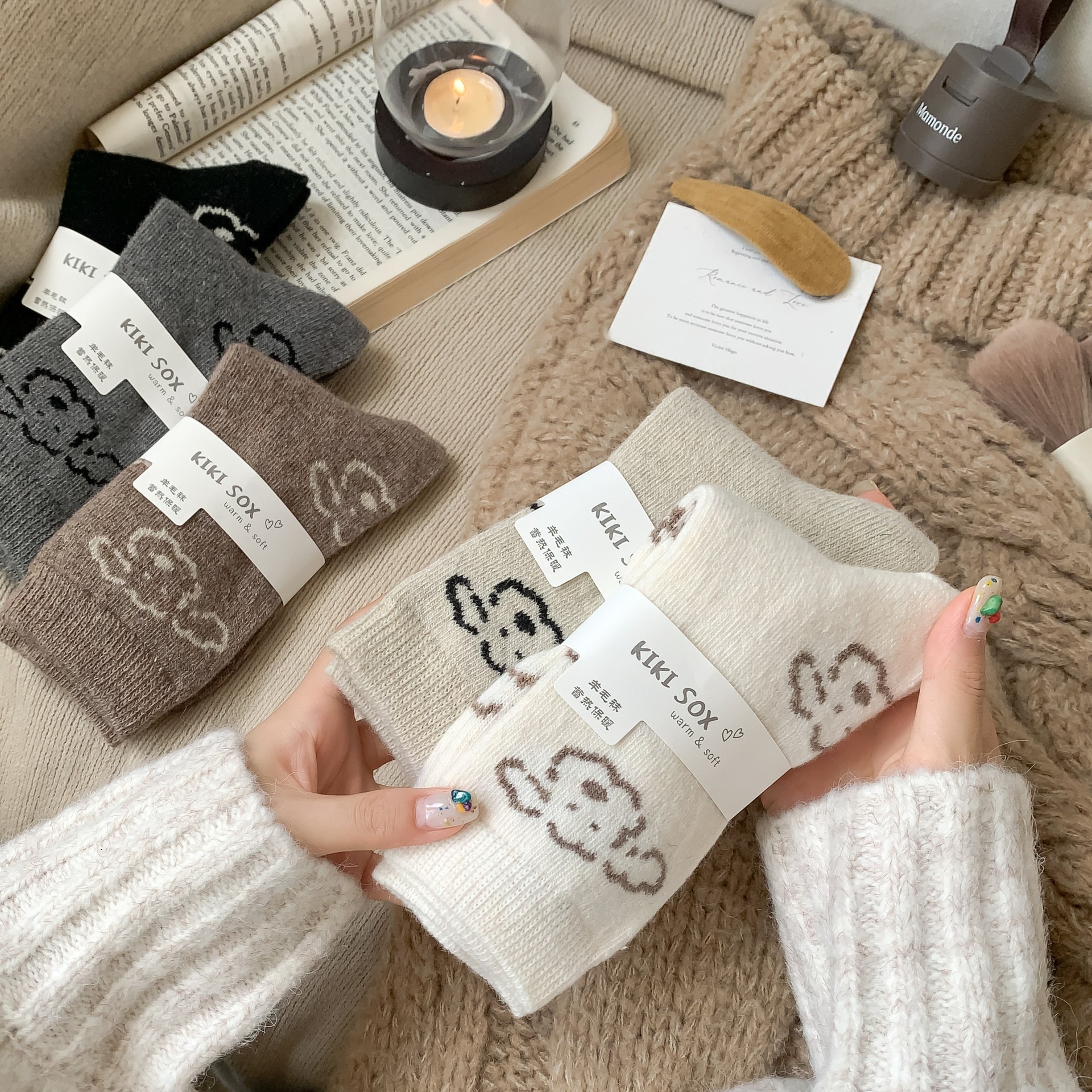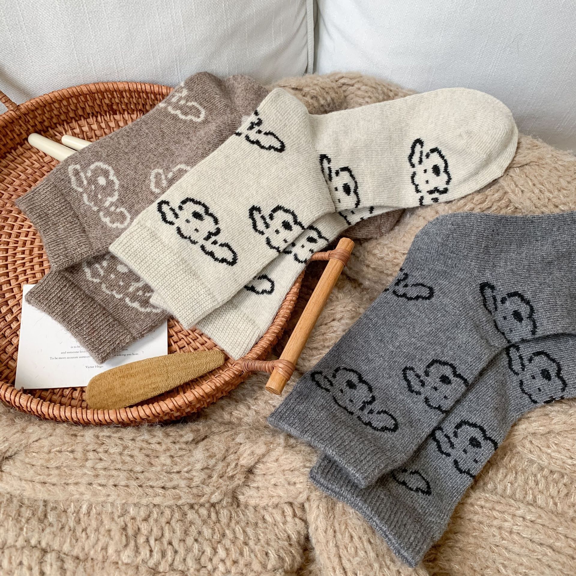 양모 강아지 양말 가을과 겨울 두꺼운 따뜻한 귀여운 Ins Birkenstock 신발 일본 만화 중간 튜브 양말