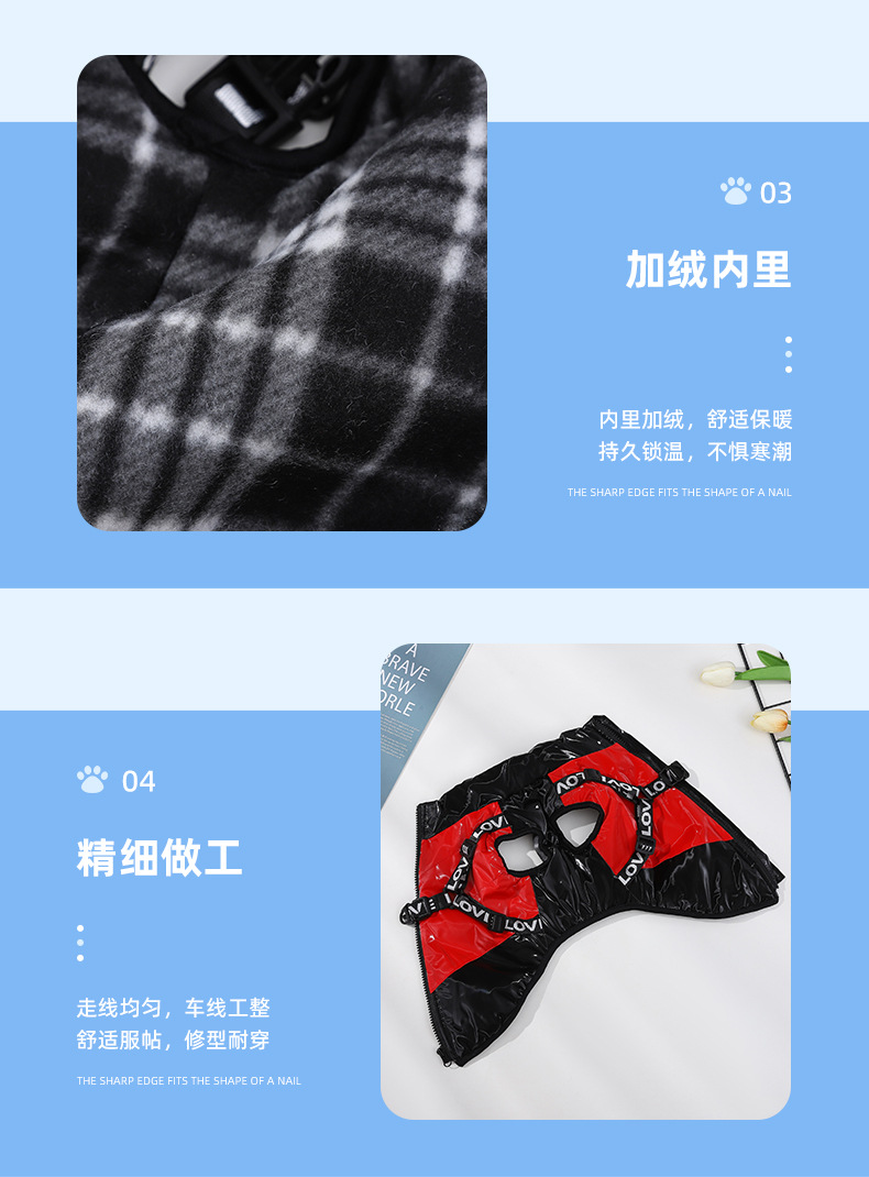 귀여운 가을과 겨울 고양이 옷 개 테디 미디어와 큰 개 기모 따뜻한 조끼 색상 매칭 가슴과 뒷 조끼