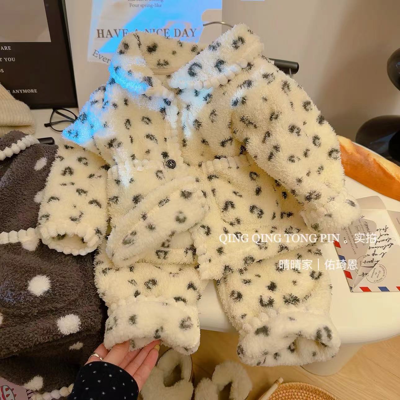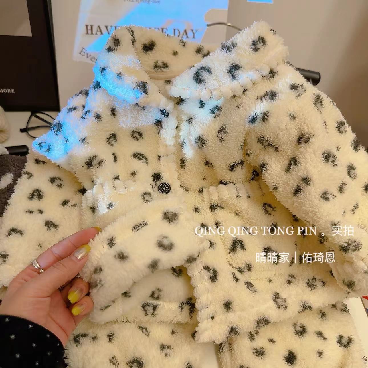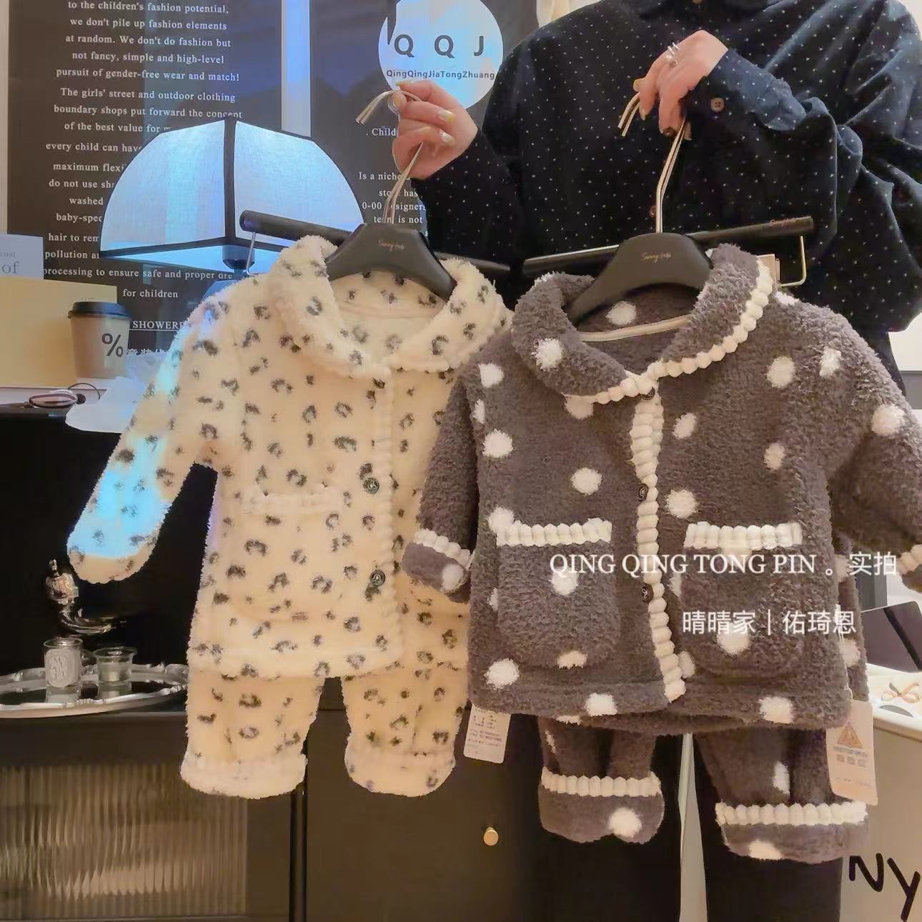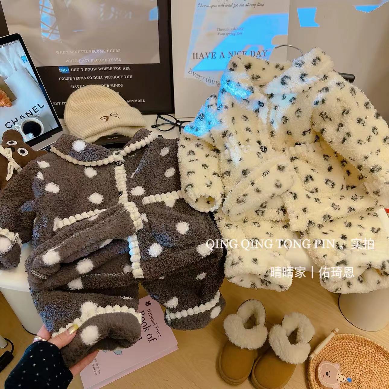 어린이 홈 옷 세트 밀렛 벨벳 기모 따뜻한 경량 카디건 간단한 조커 파자마 세트스토어 가기