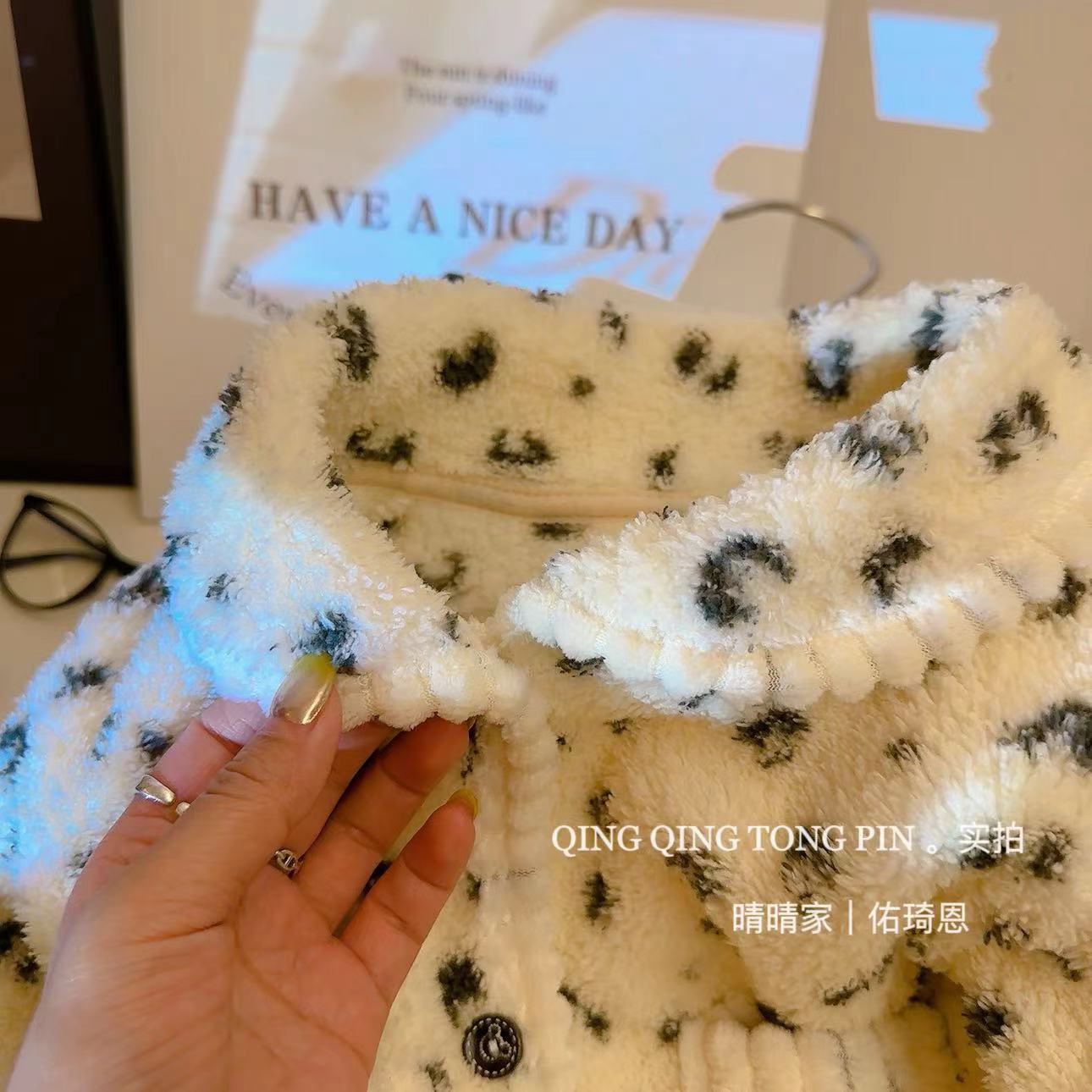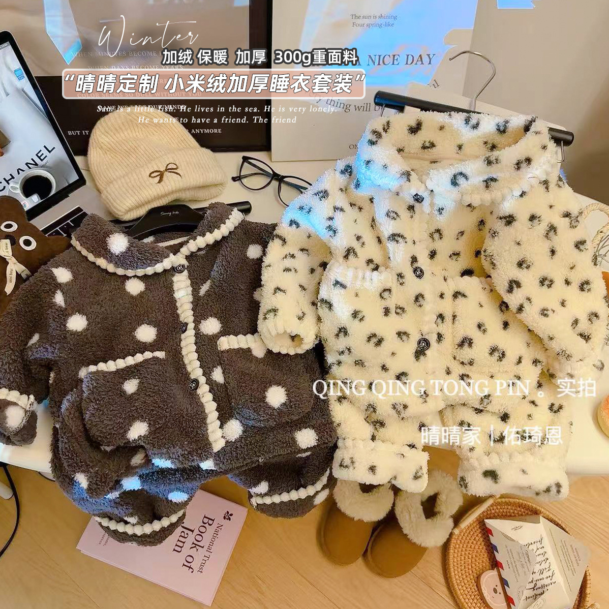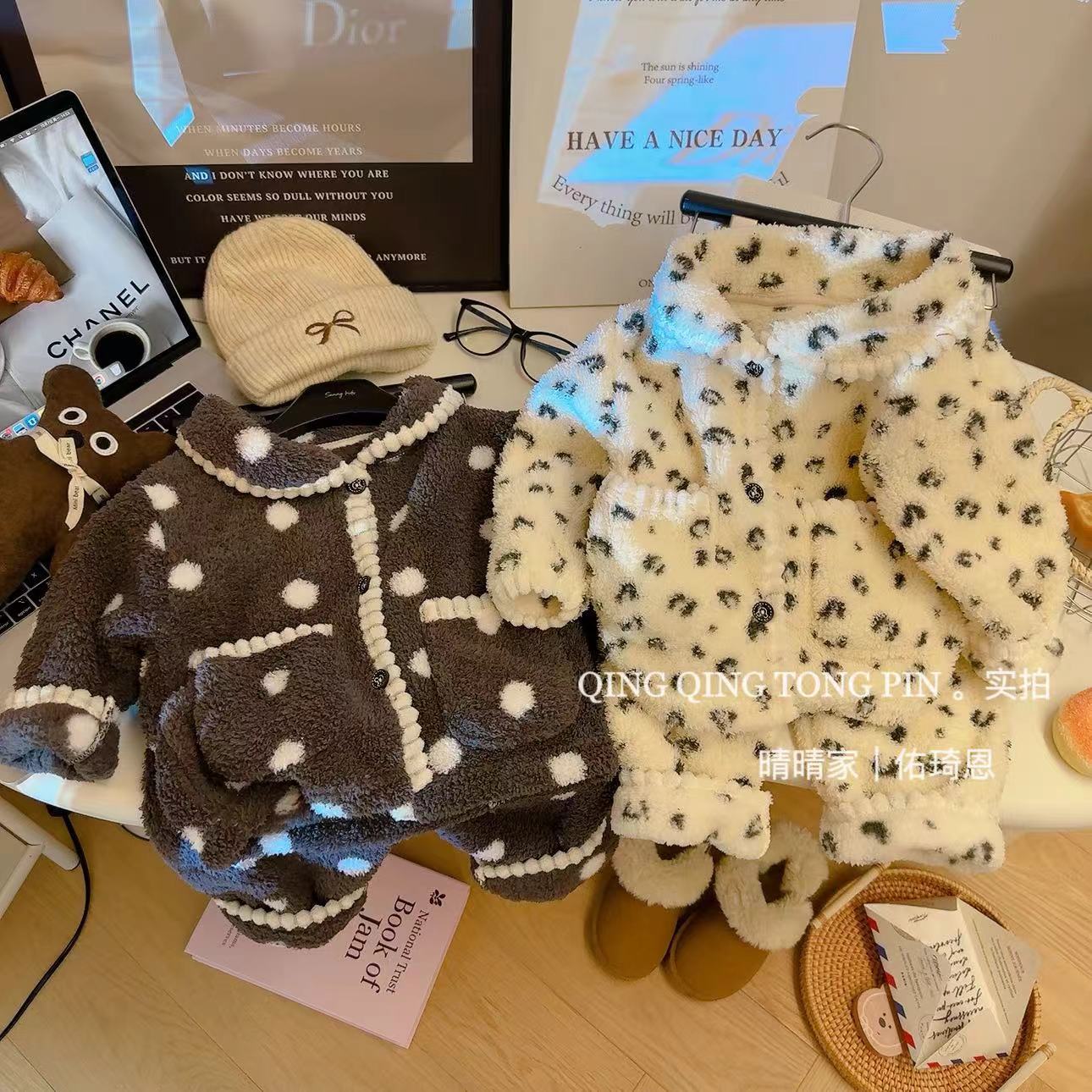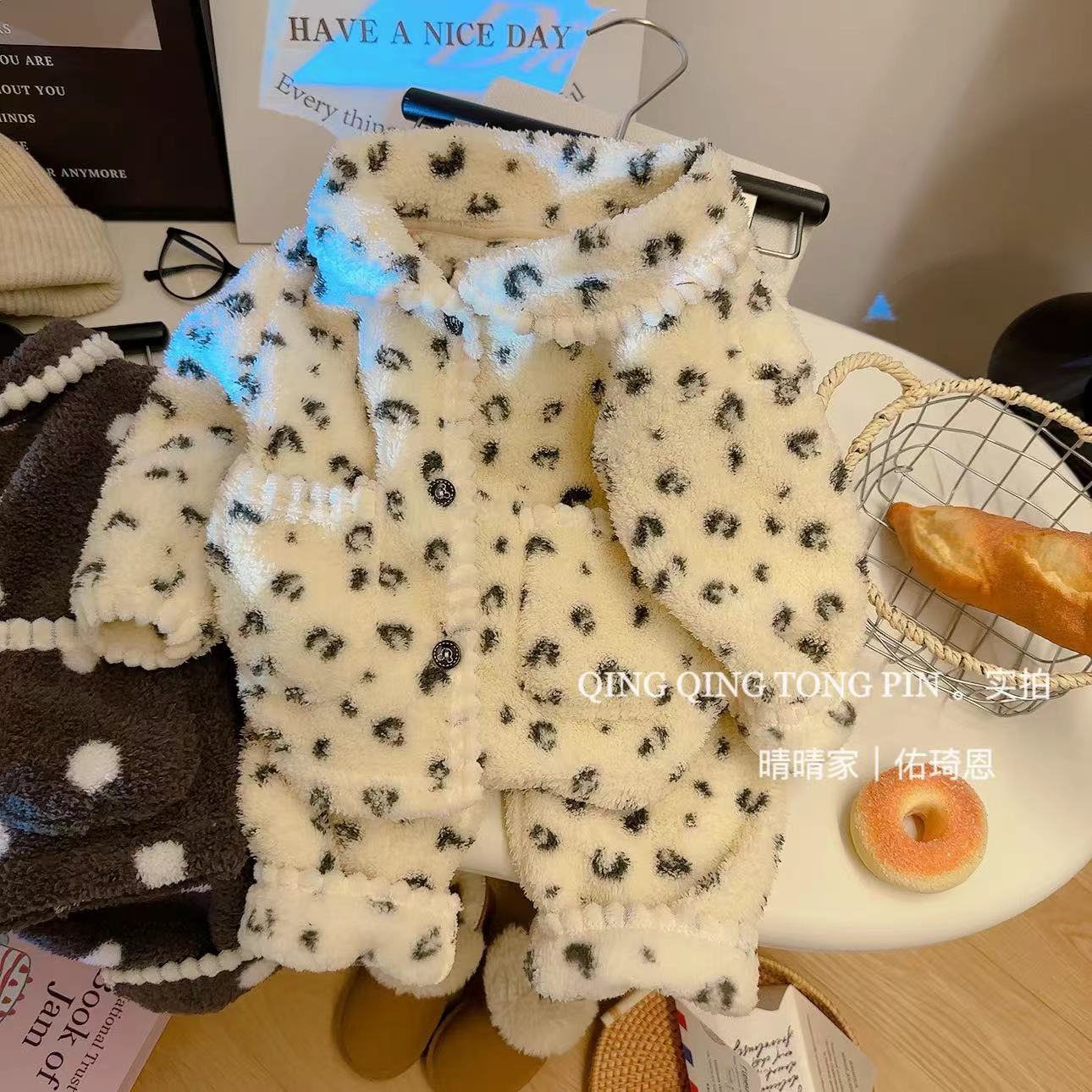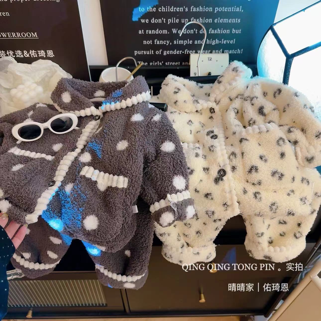 어린이 홈 옷 세트 밀렛 벨벳 기모 따뜻한 경량 카디건 간단한 조커 파자마 세트스토어 가기
