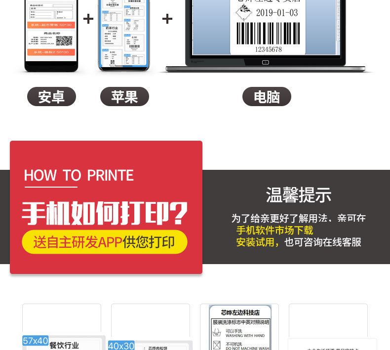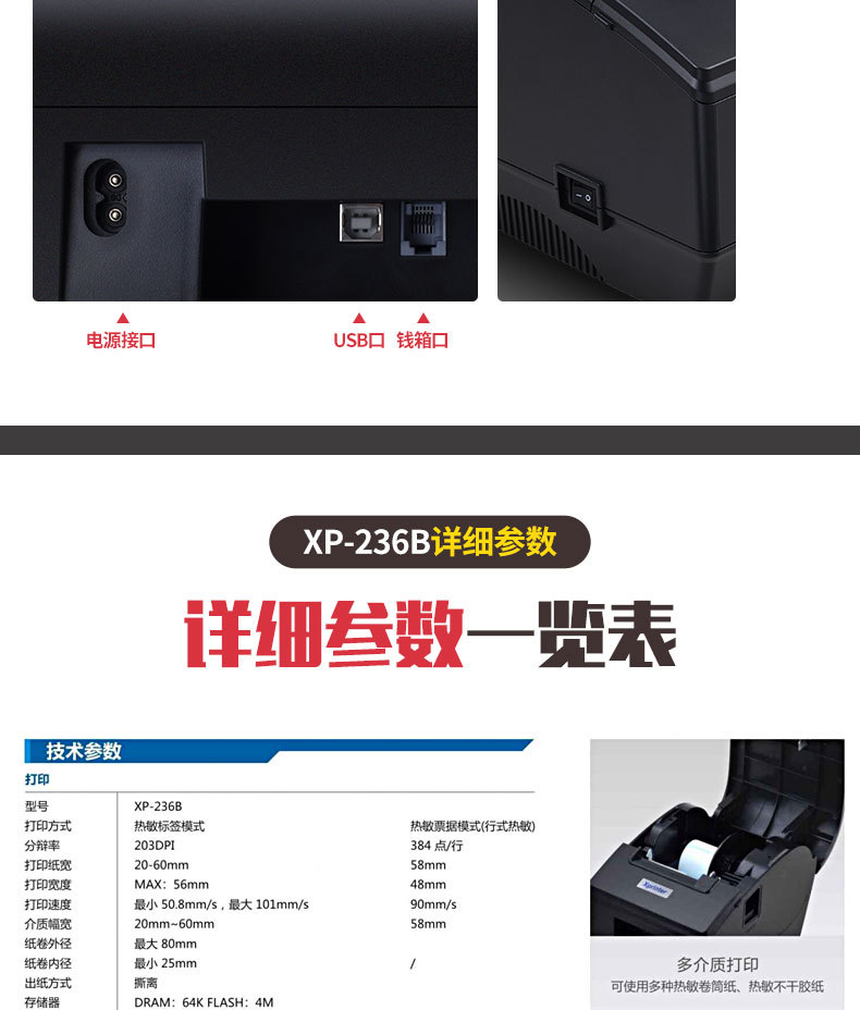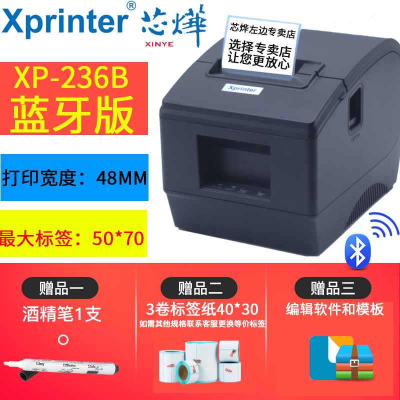 Xinye XP-236BL 열 바코드 라벨 프린터 블루투스 인쇄 바코드 상품 가격 스티커 블루투스스토어 가기
