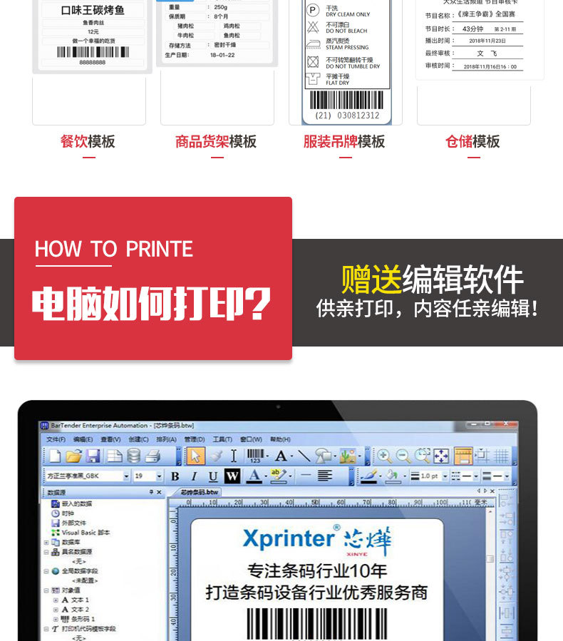 Xinye XP-236BL 열 바코드 라벨 프린터 블루투스 인쇄 바코드 상품 가격 스티커 블루투스