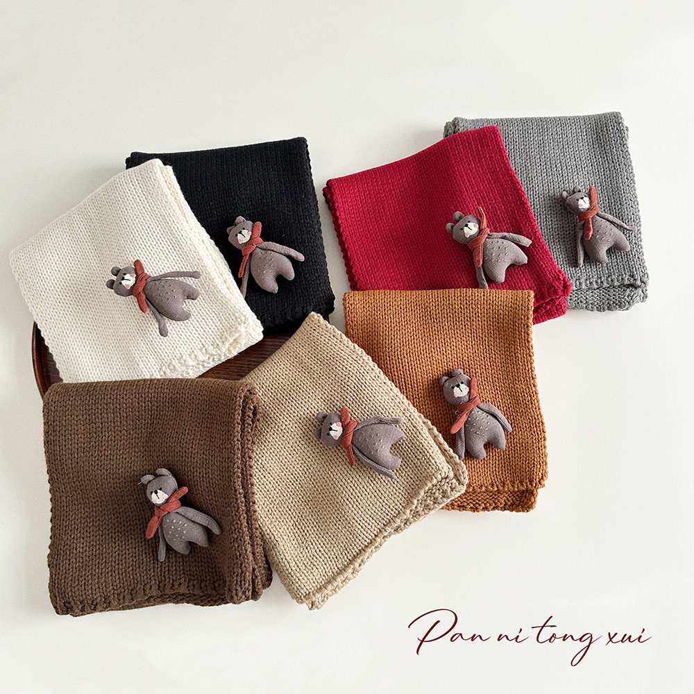 만화 곰 스카프 가을과 겨울 어린이 따뜻한 니트 양모 스카프 소년과 소녀 귀여운 방풍 양모 스카프