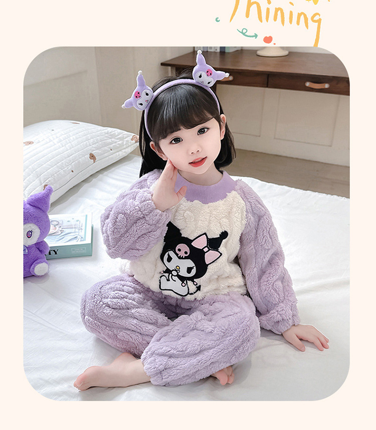 Kulomi 어린이 가을 겨울 산호 양털 잠옷 세트 아기 어린 소녀의 겨울 플란넬 홈 옷스토어 가기