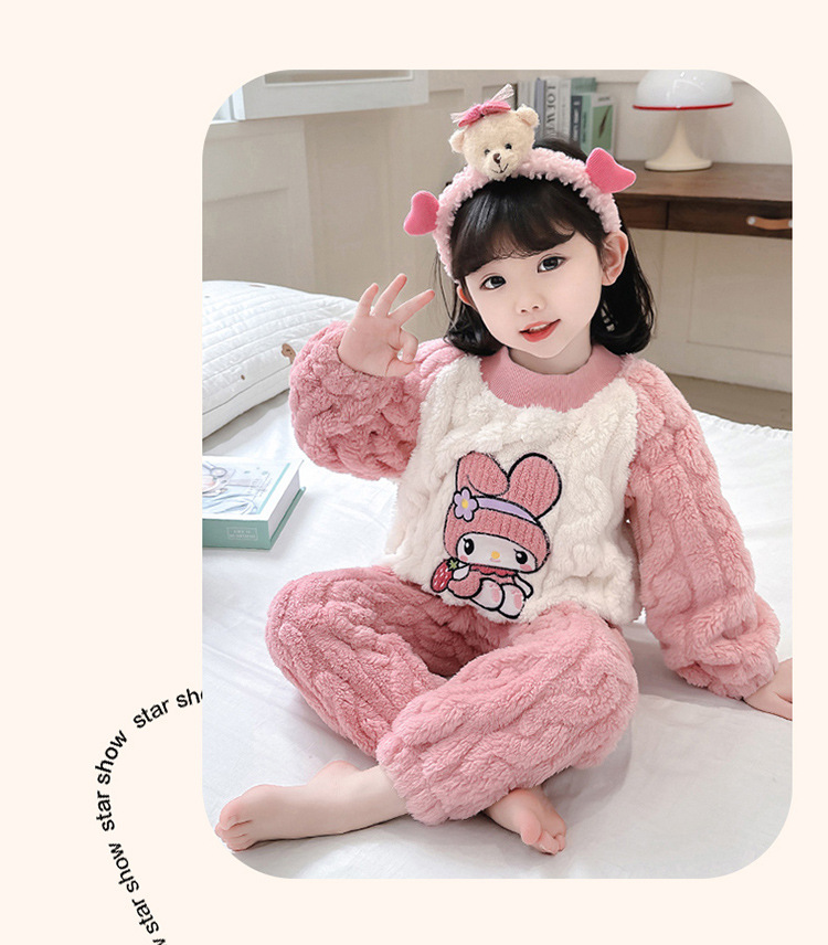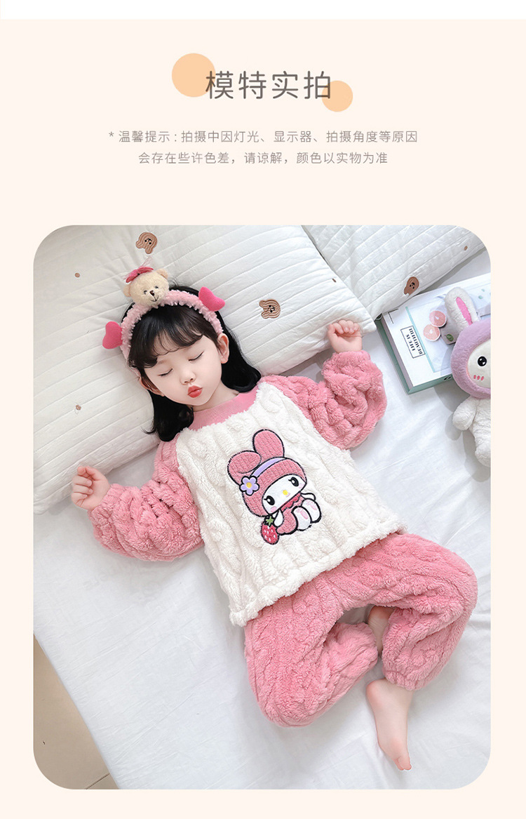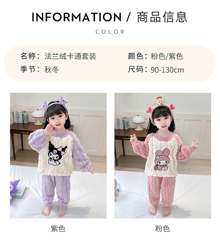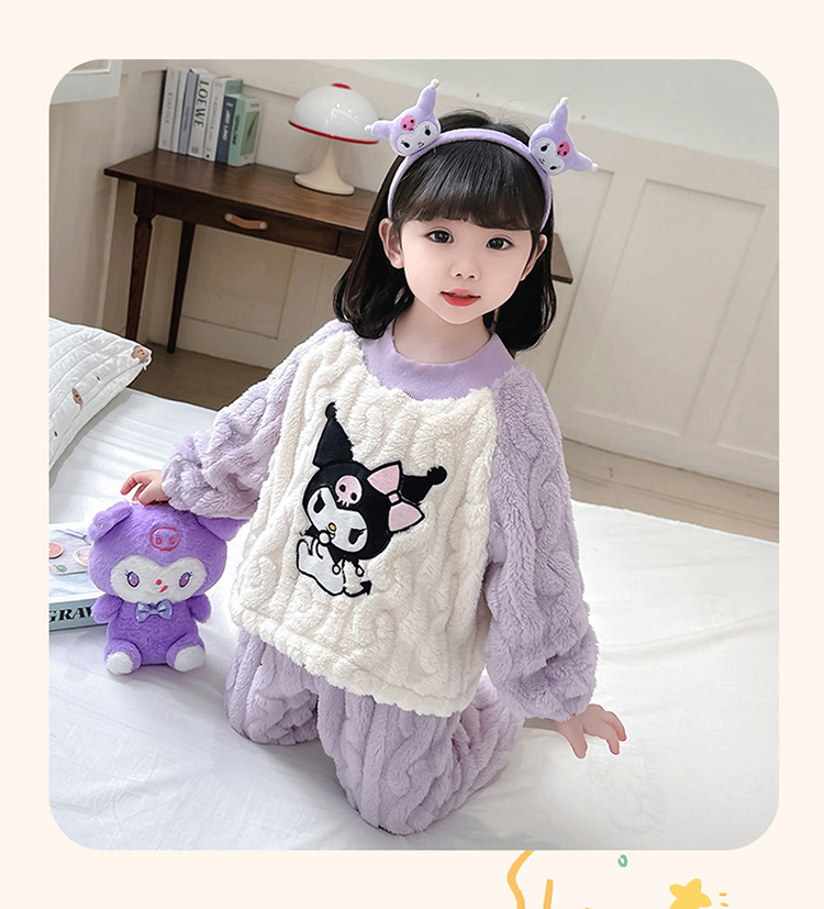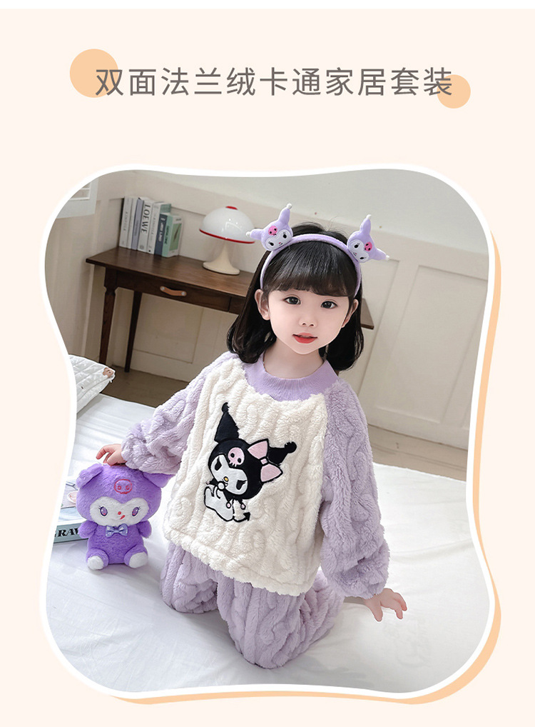 Kulomi 어린이 가을 겨울 산호 양털 잠옷 세트 아기 어린 소녀의 겨울 플란넬 홈 옷