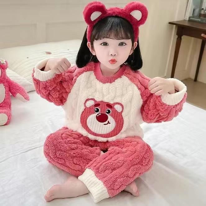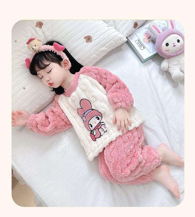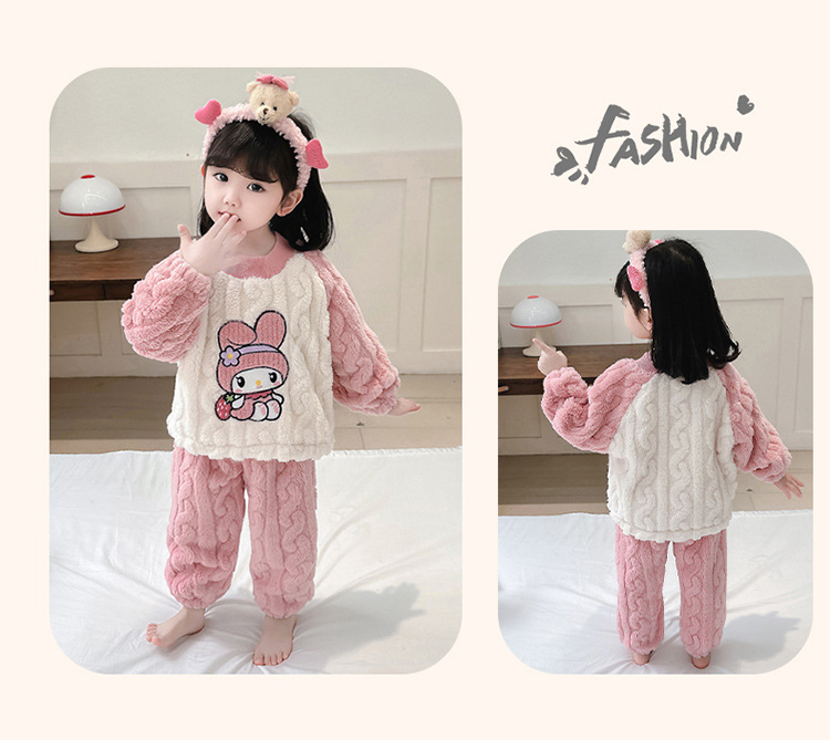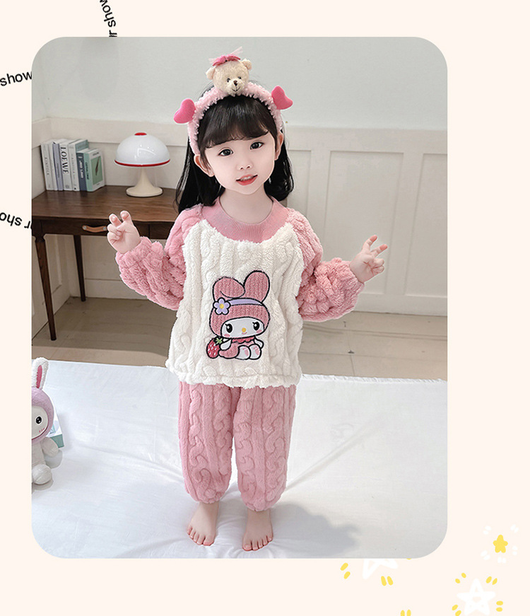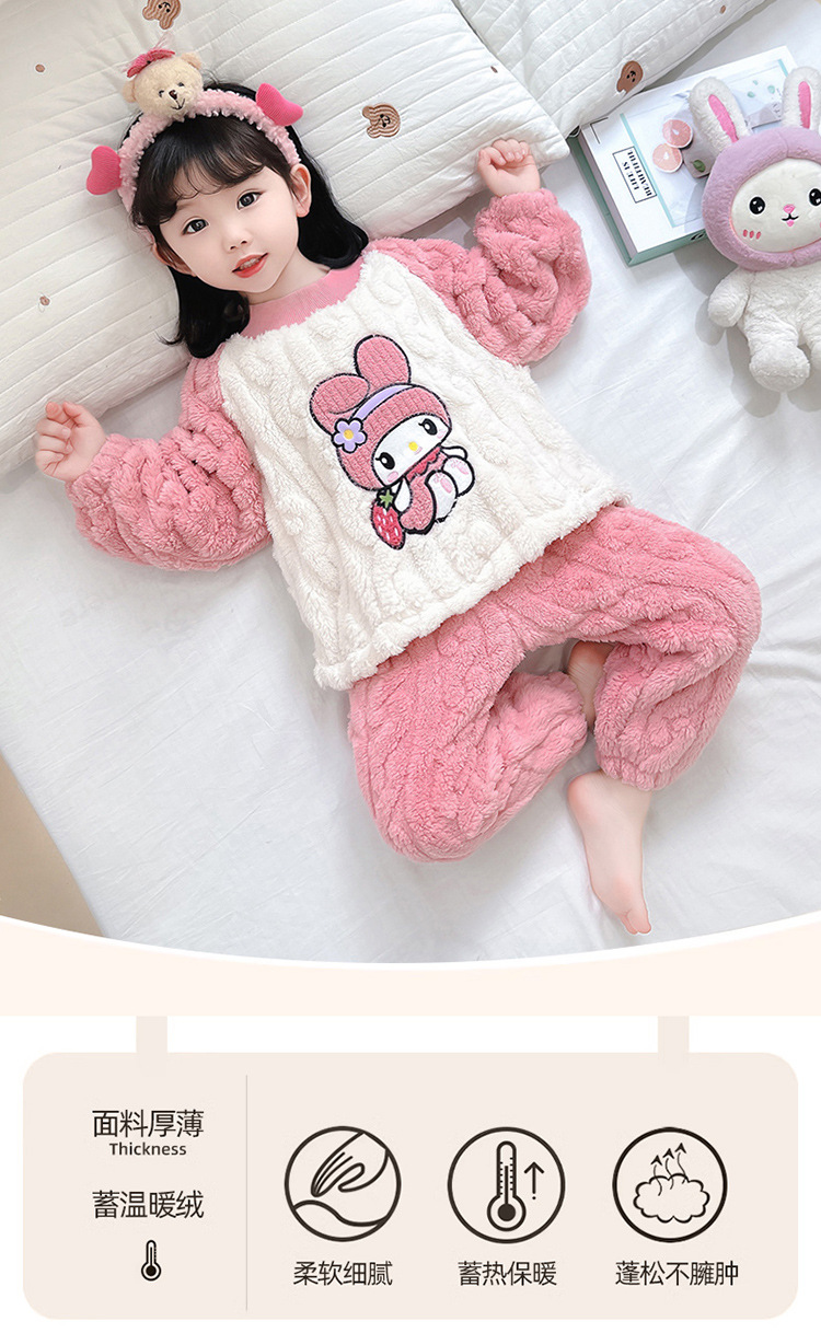 Kulomi 어린이 가을 겨울 산호 양털 잠옷 세트 아기 어린 소녀의 겨울 플란넬 홈 옷