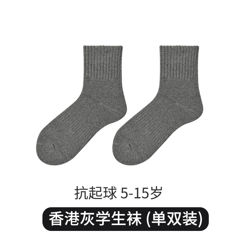 Xuwei A7 항균 소년 소녀 단색 흑백 회색 중간 및 대형 어린이 튜브 양말 청소년 스포츠 학생면 양말