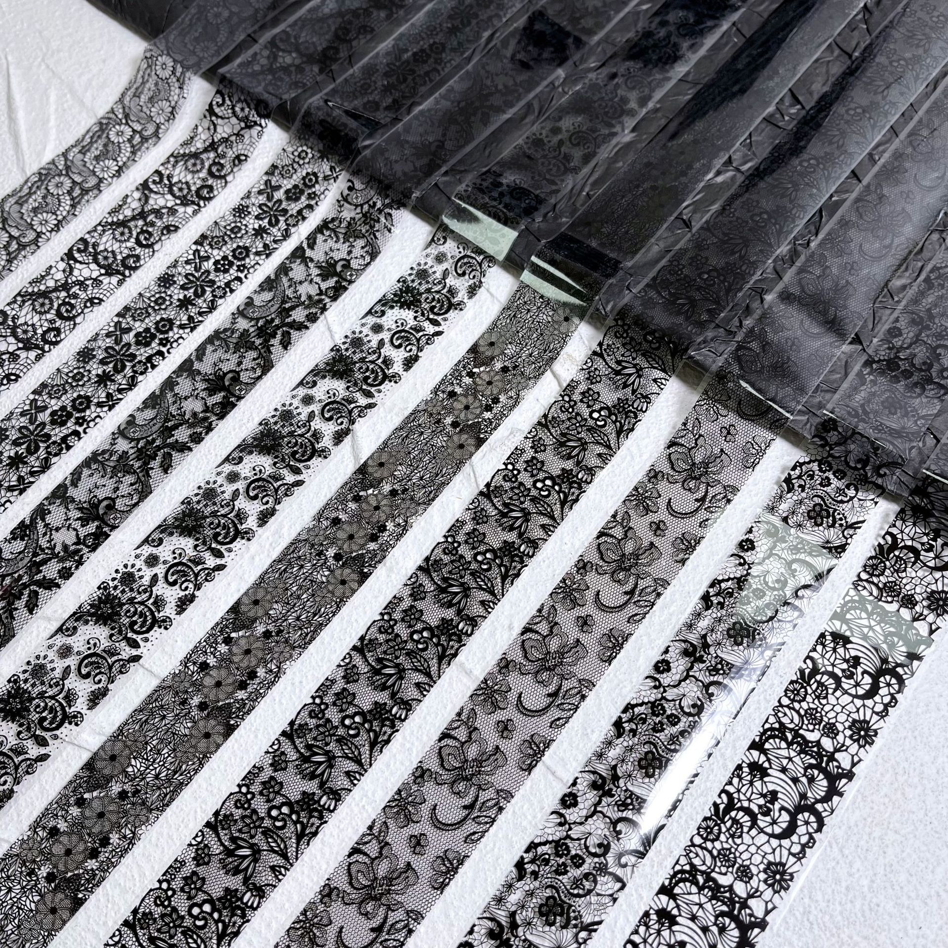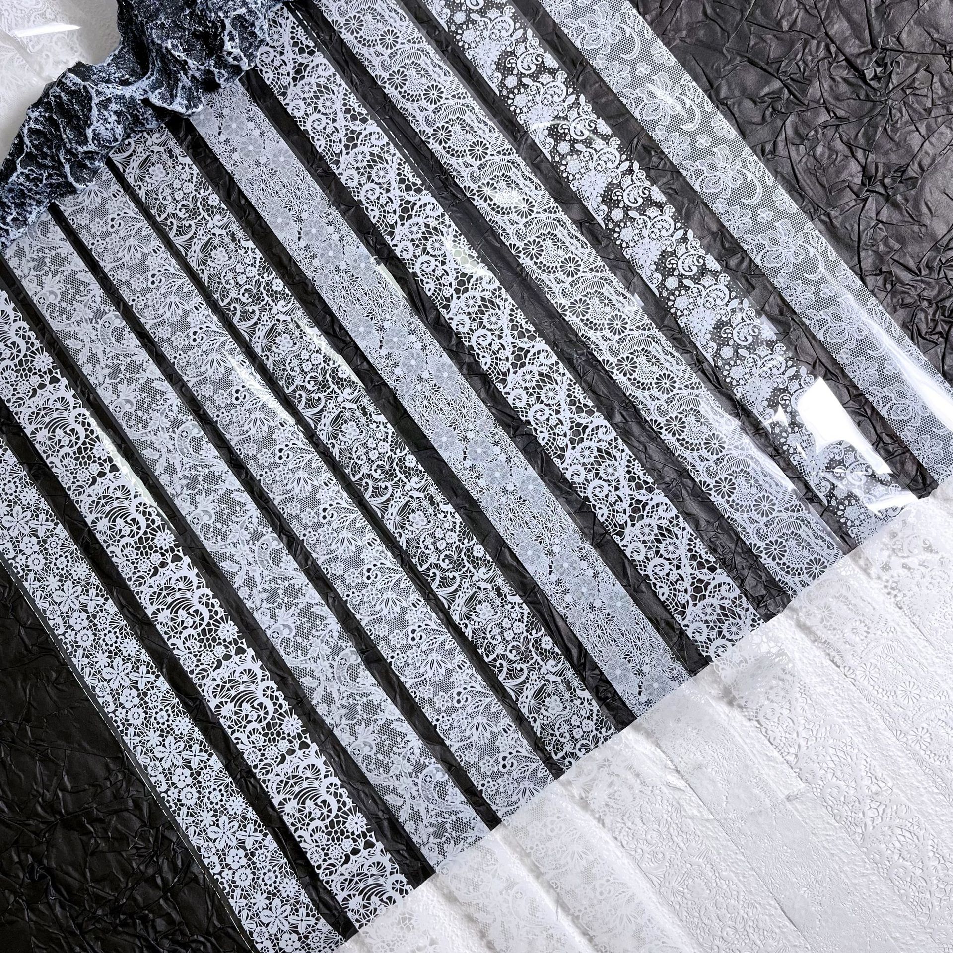 네일 아트 흑백 레이스 전송 종이 전송 스티커 스타 인스 타 그램 스타일 세트 빈 메쉬 스티커