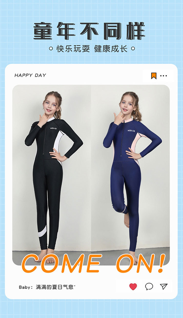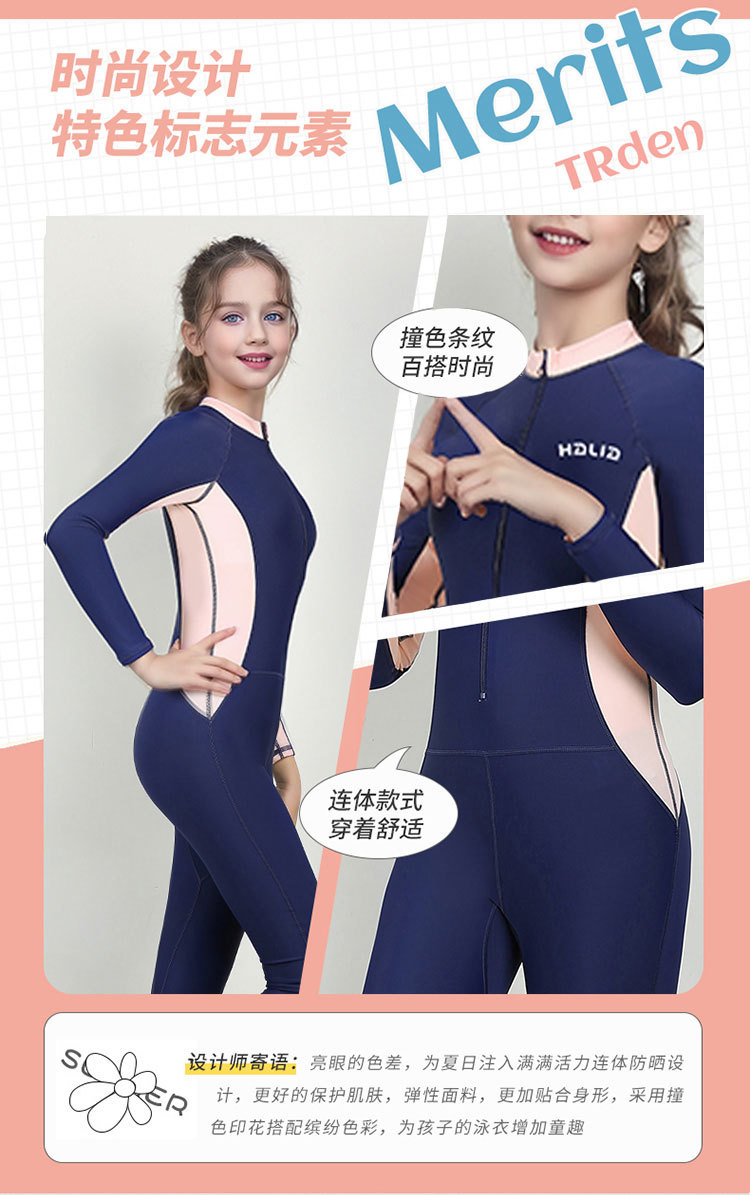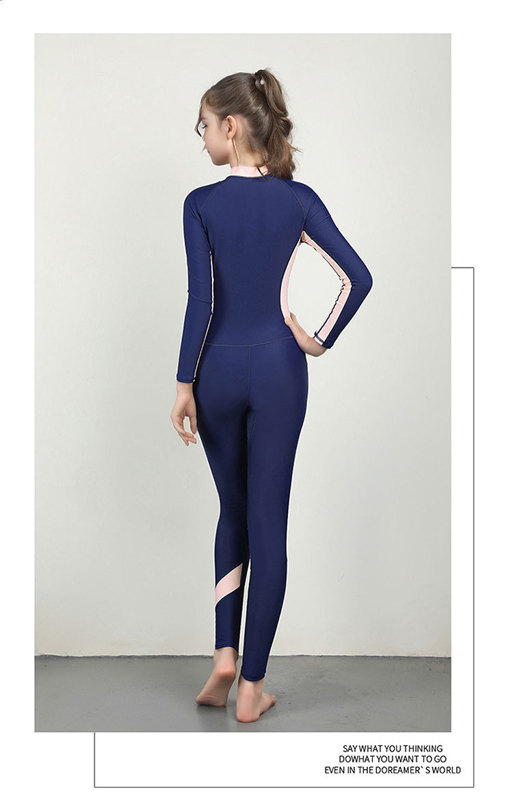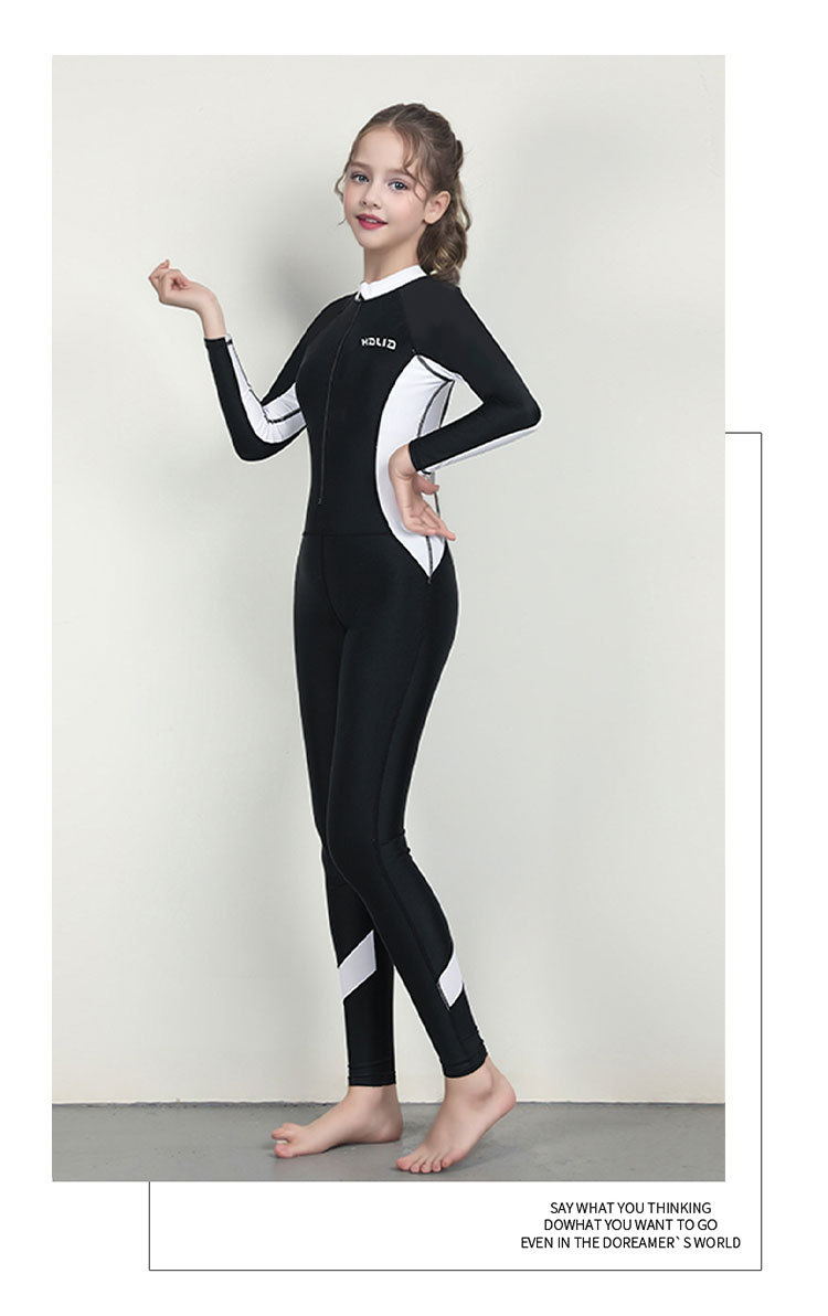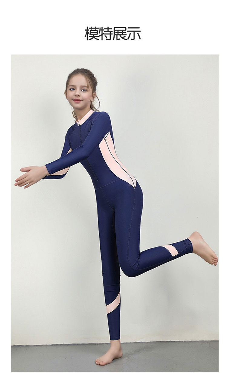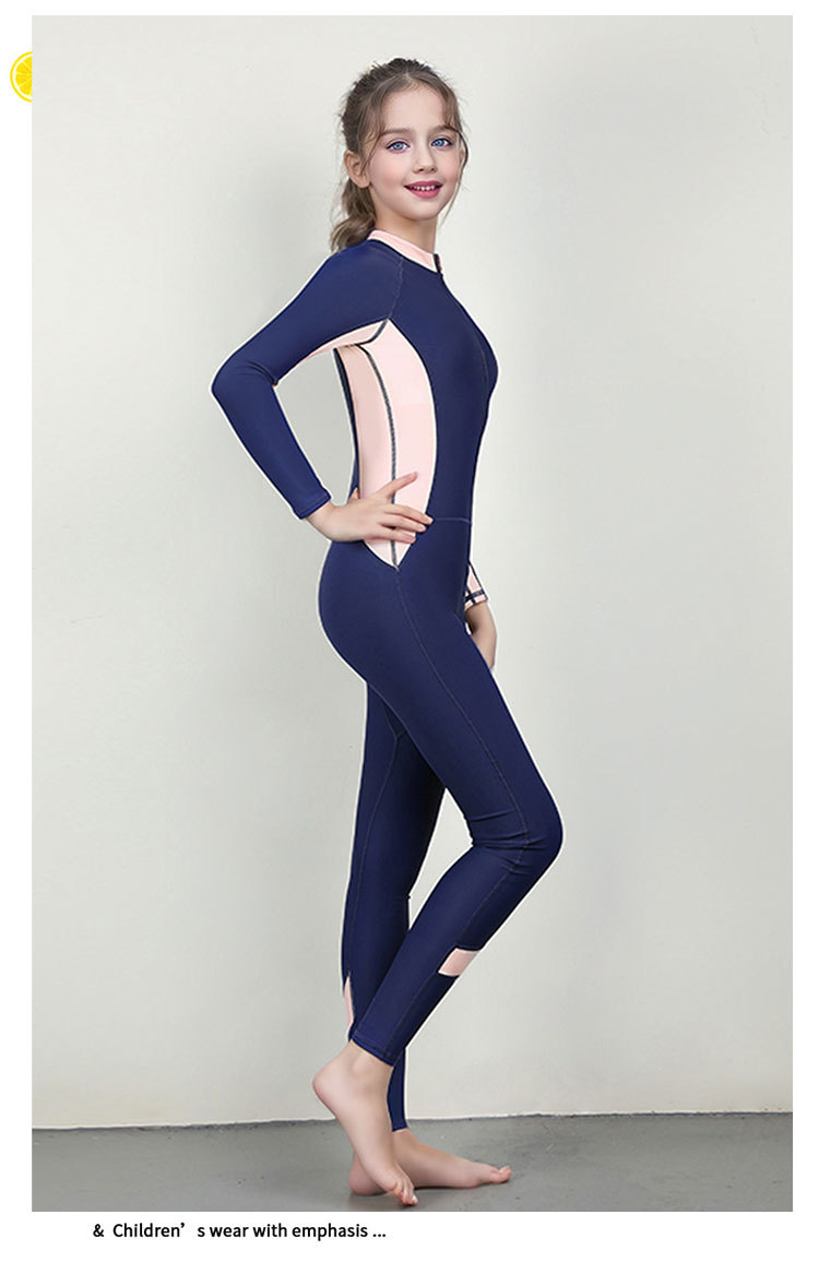 신형 어린이 긴팔 수영복 여아 원피스 수영복 전신 태양 보호 빠른 건조 다이빙 세트 훈련 맞춤형 대외 무역