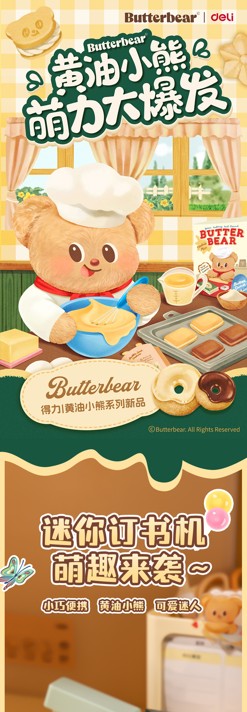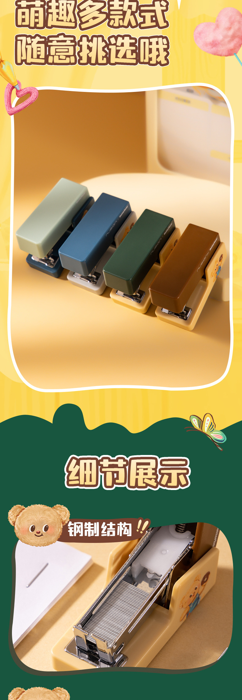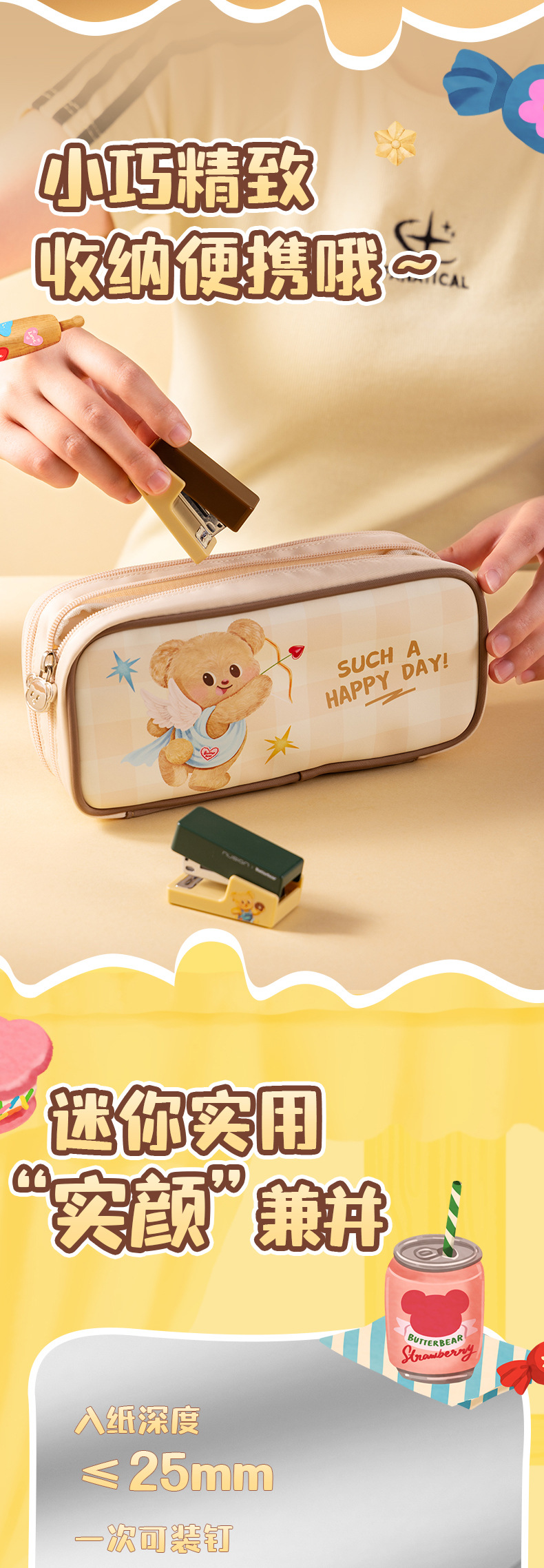 델리 NS083-B 버터 베어 뉴지 스테이플러 학생 소형 휴대용 사무실 스테이플러 바닥 미끄럼 방지
