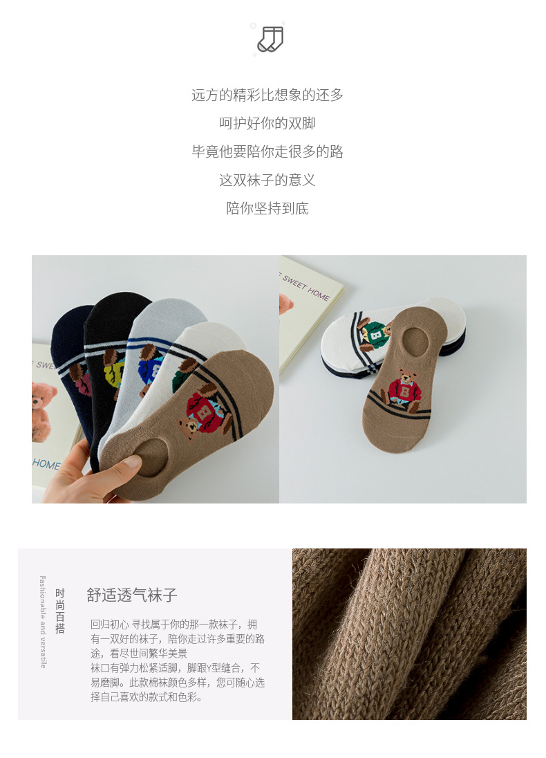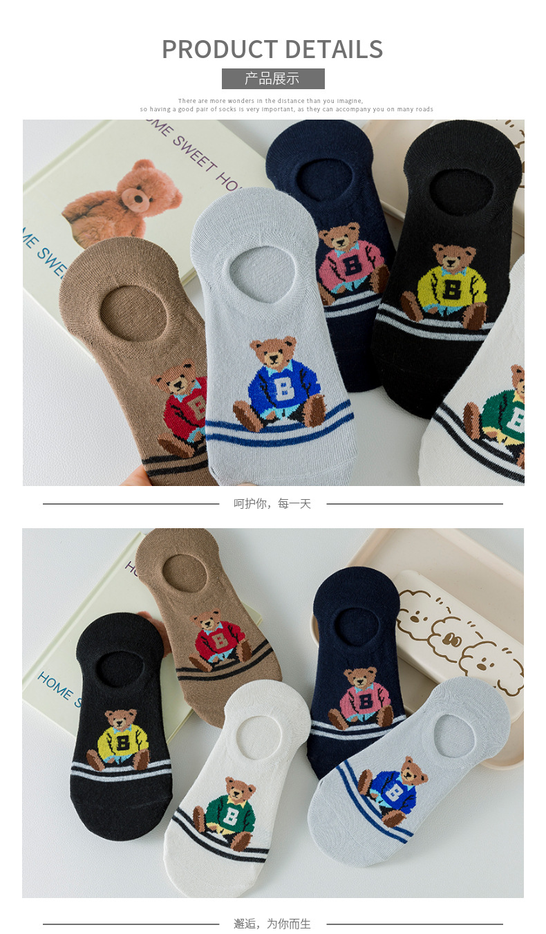 국경 양말 여성의 가을 새로운 트렌드 조커 큰 곰 여성 보이지 않는 양말 땀 흡수성 통기성 양말 도매스토어 가기