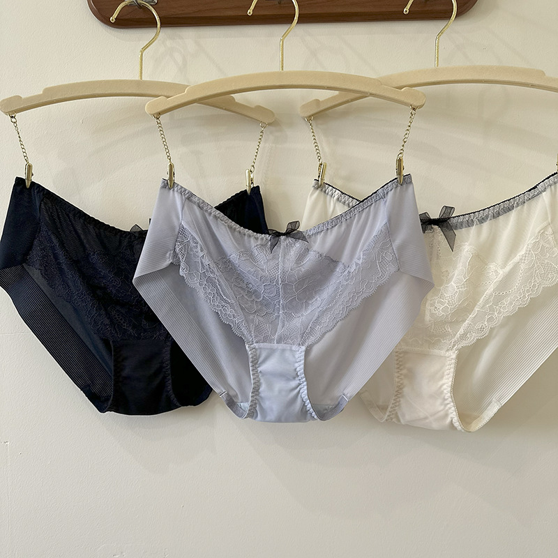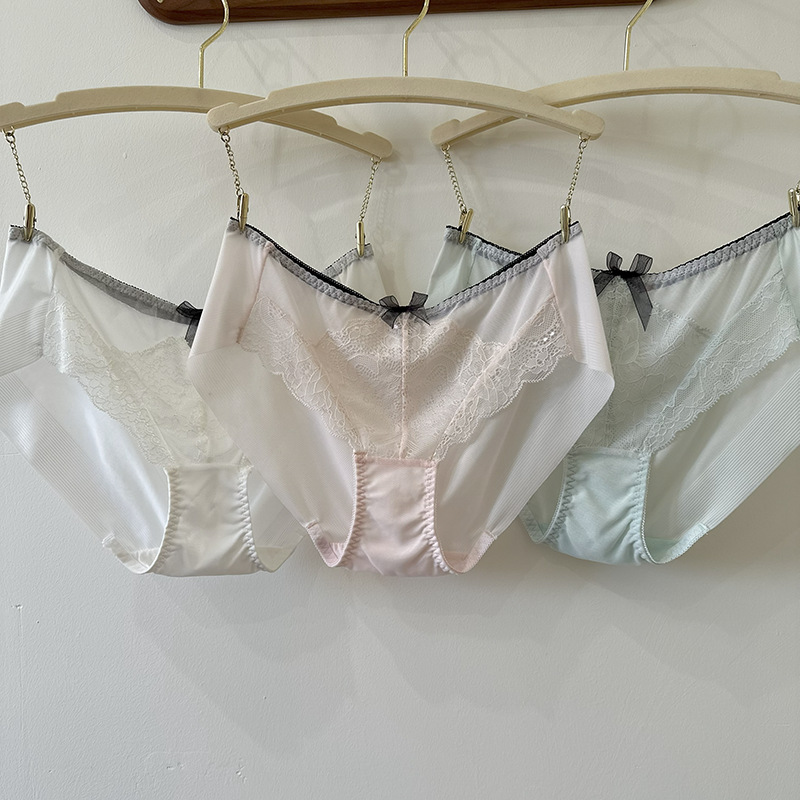 한국 주문 소프트 레이스 퍼플 미드 웨이스트 소녀 속옷 플러스 사이즈 가방 힙합 원활한 여성 브리프스토어 가기