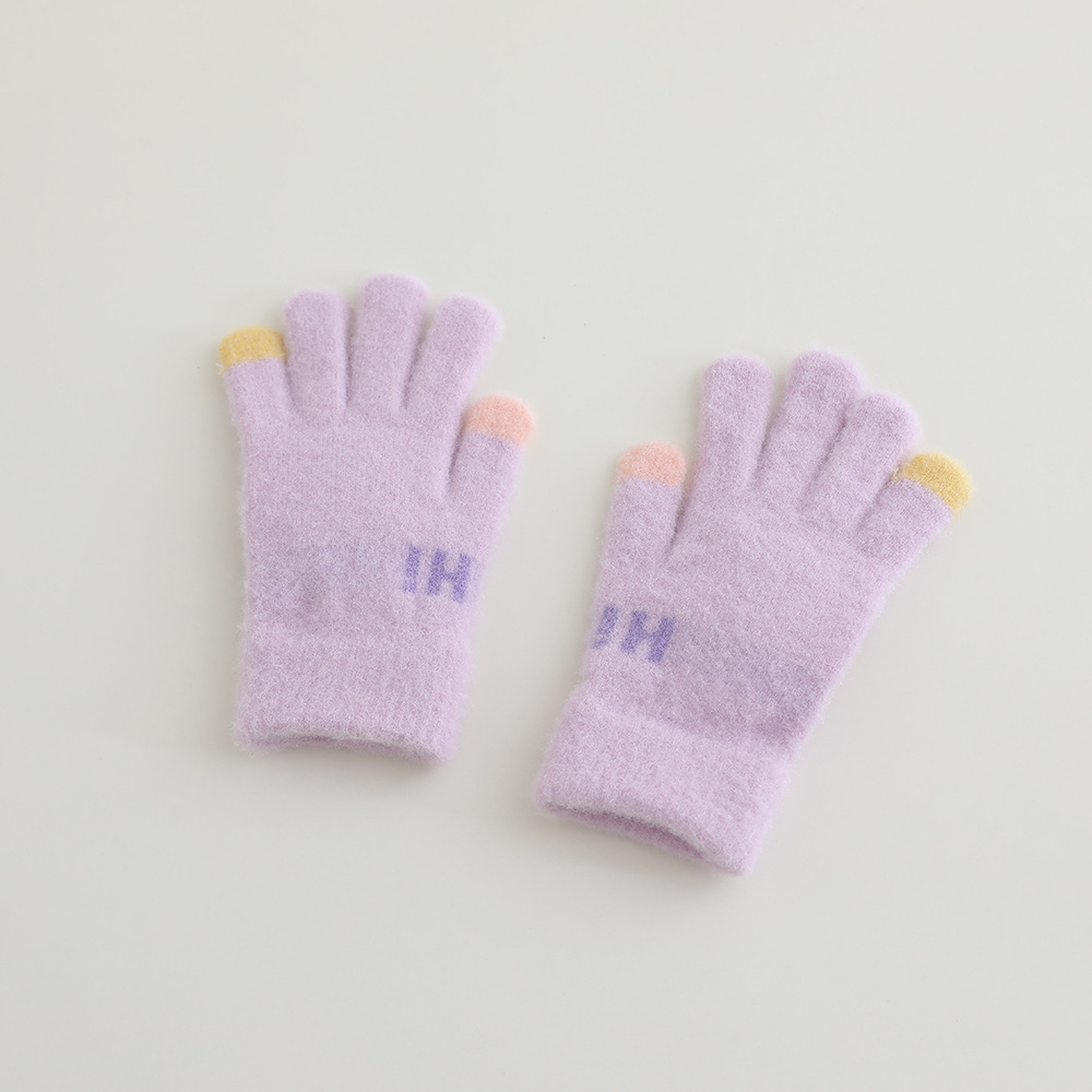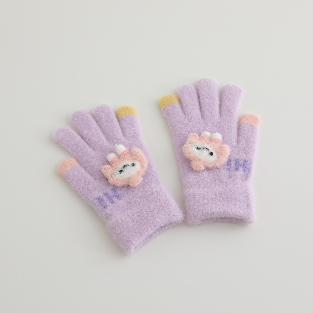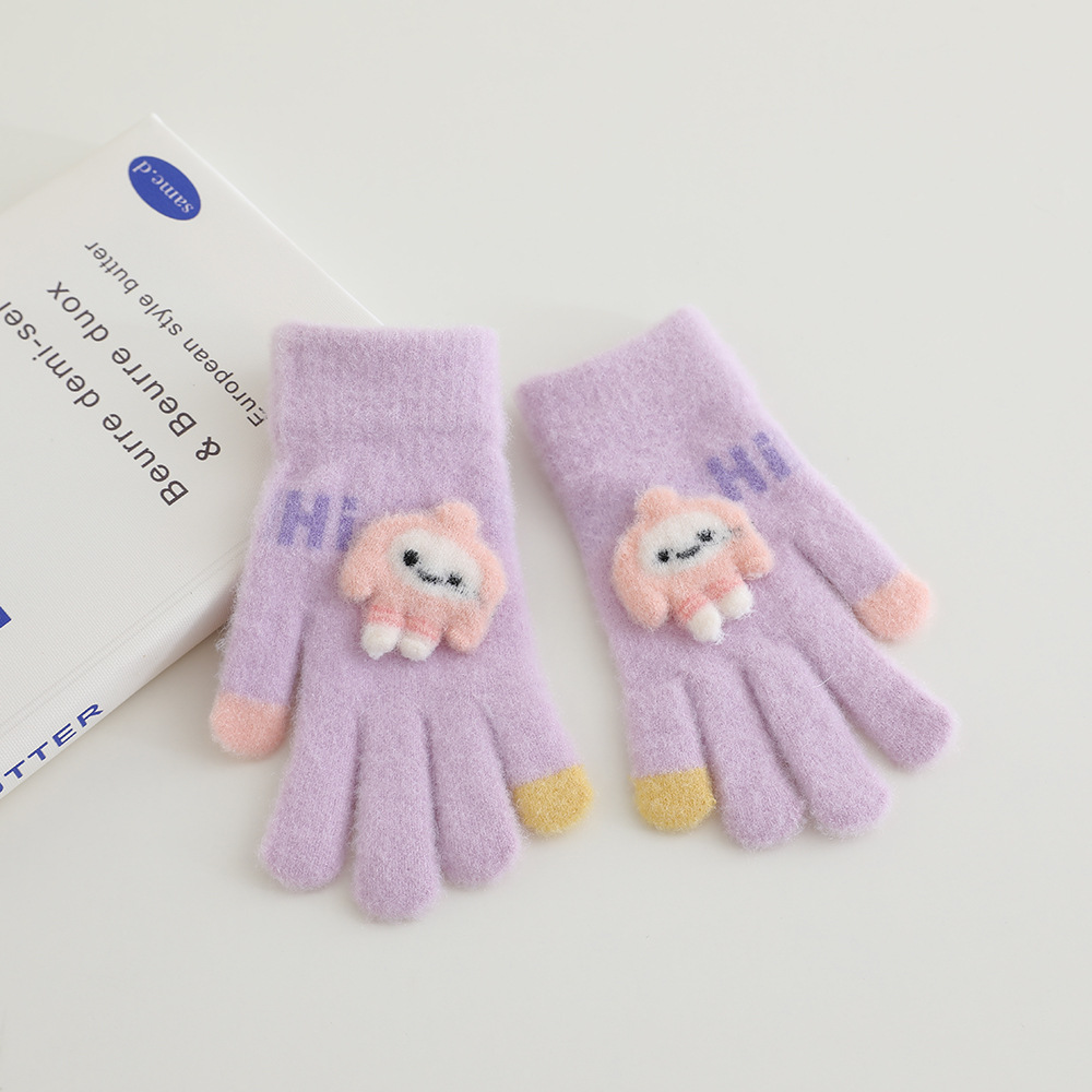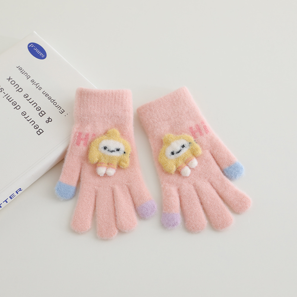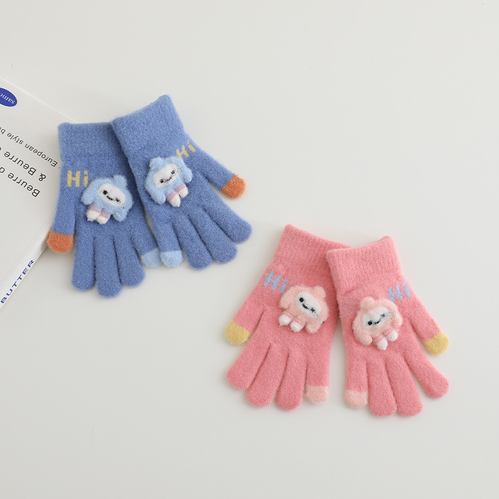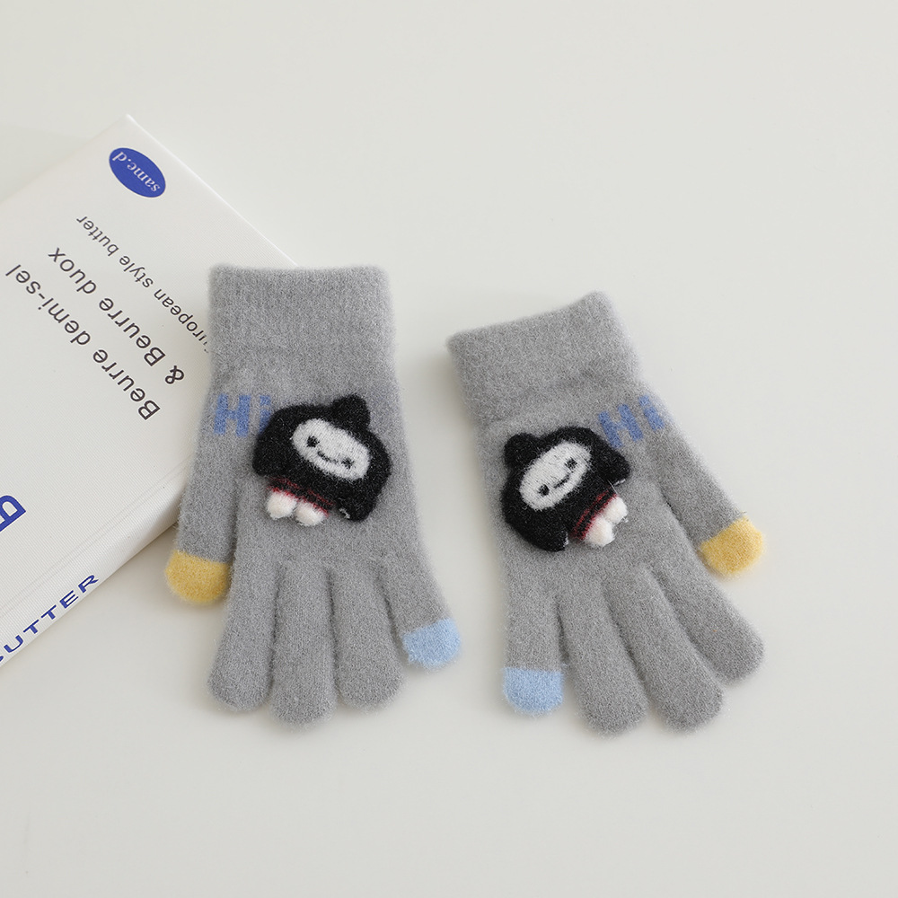 어린이 장갑 겨울 따뜻한 기모 다섯 손가락 분할 손가락 소년과 소녀 귀여운 만화 어린이 학생 니트 쓰기