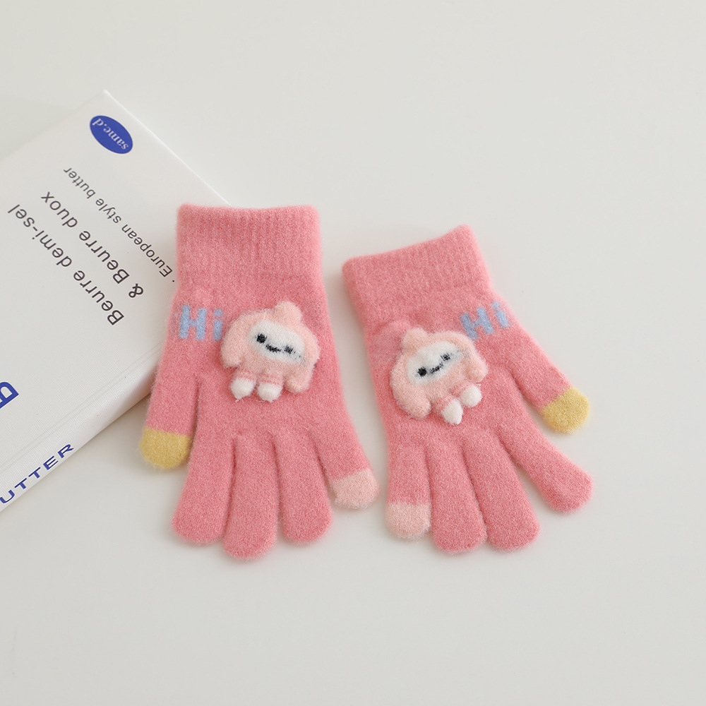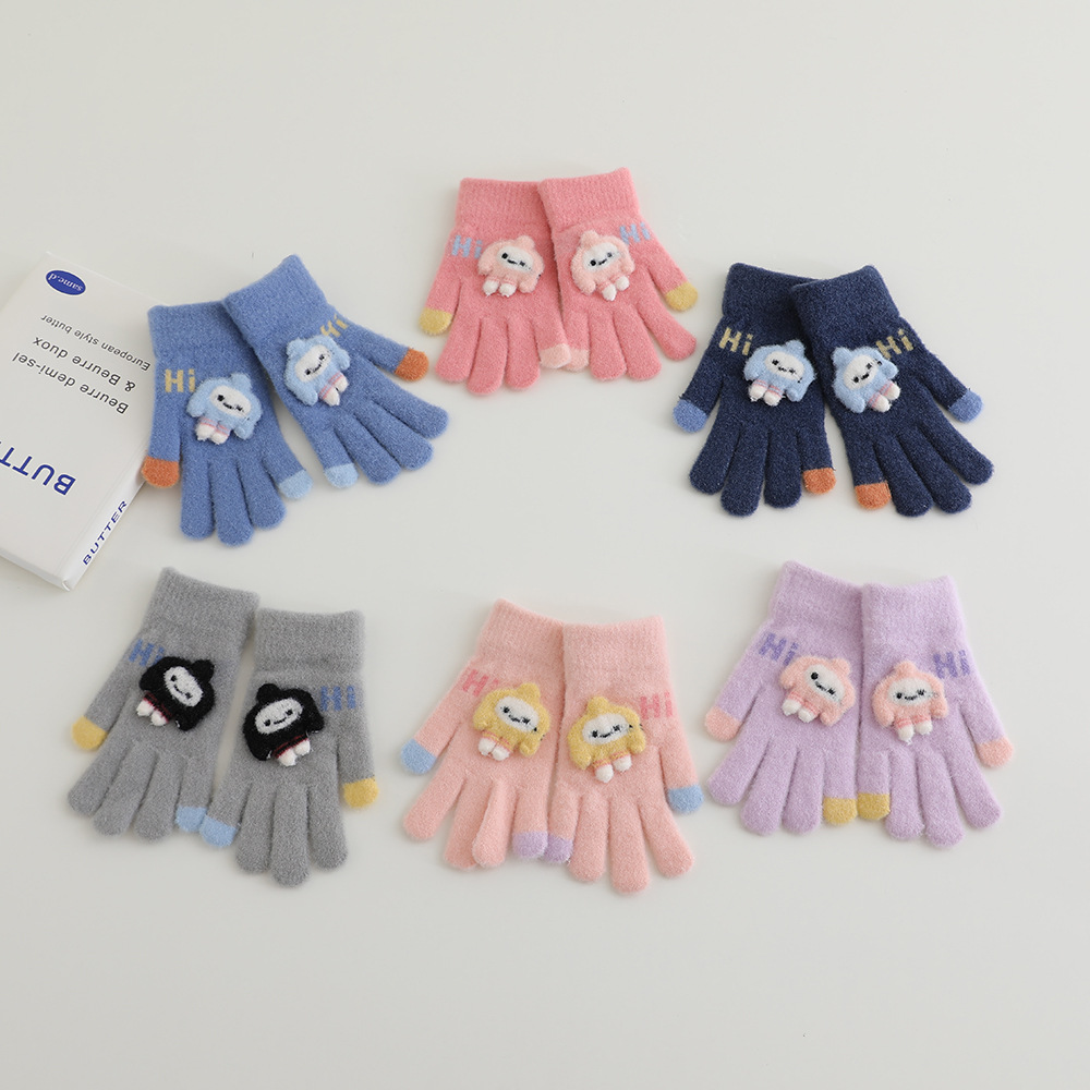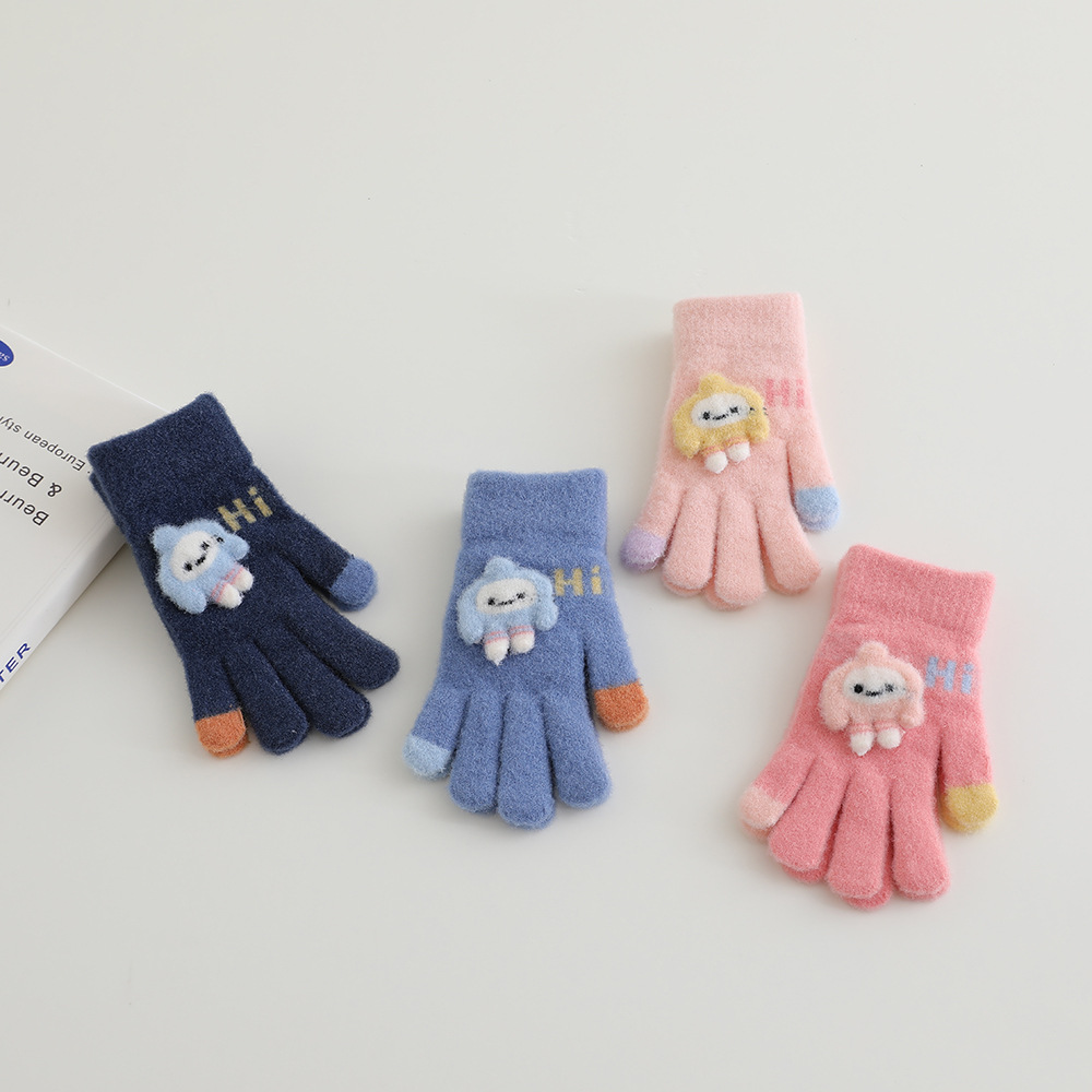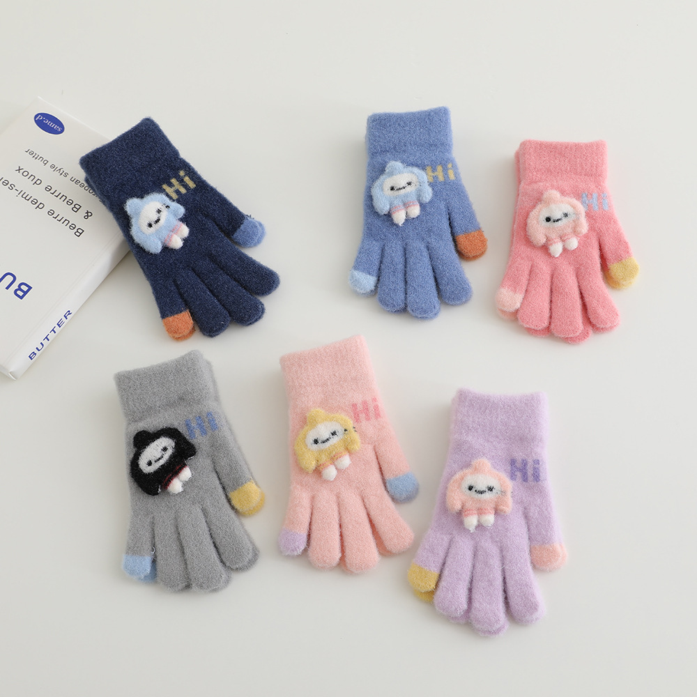 어린이 장갑 겨울 따뜻한 기모 다섯 손가락 분할 손가락 소년과 소녀 귀여운 만화 어린이 학생 니트 쓰기스토어 가기