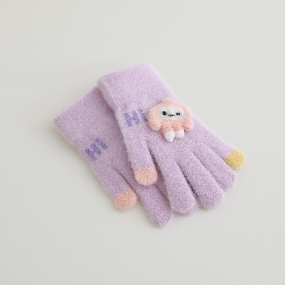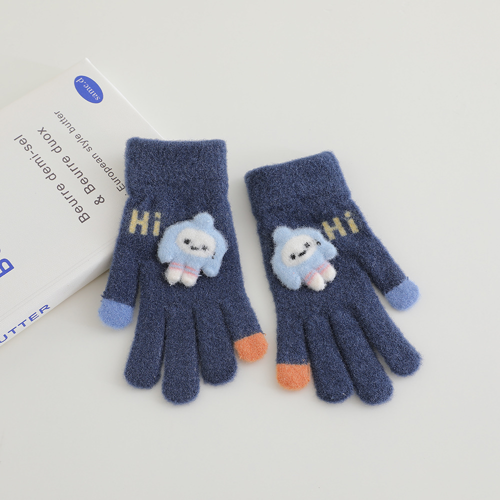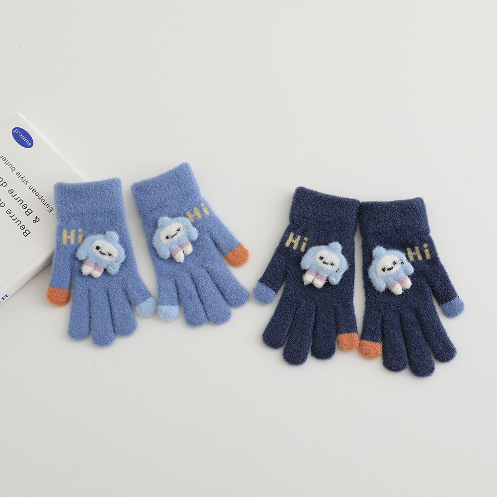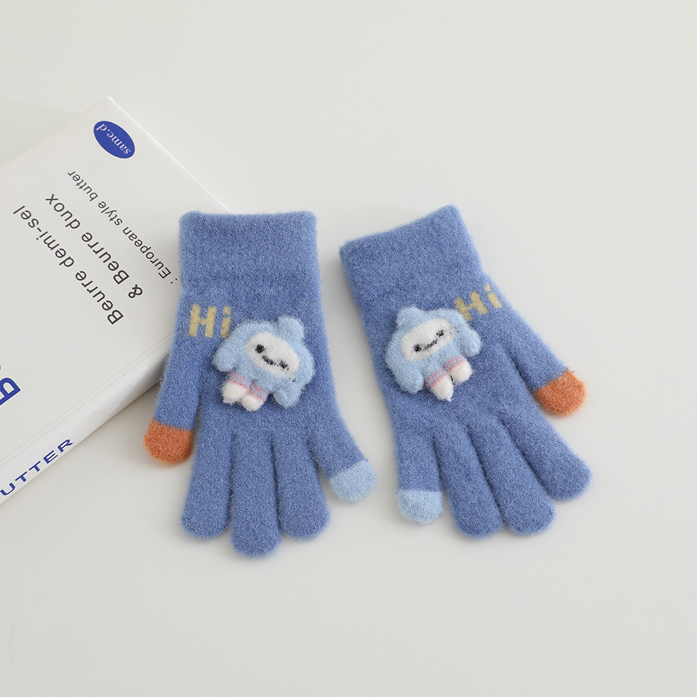 어린이 장갑 겨울 따뜻한 기모 다섯 손가락 분할 손가락 소년과 소녀 귀여운 만화 어린이 학생 니트 쓰기스토어 가기