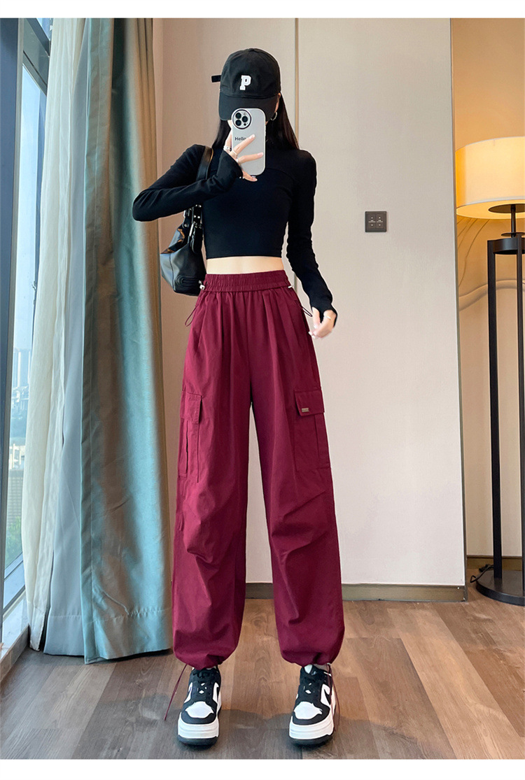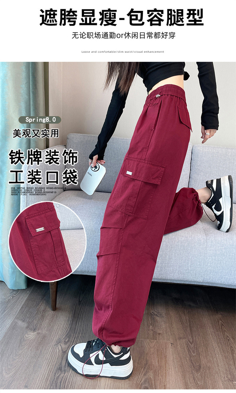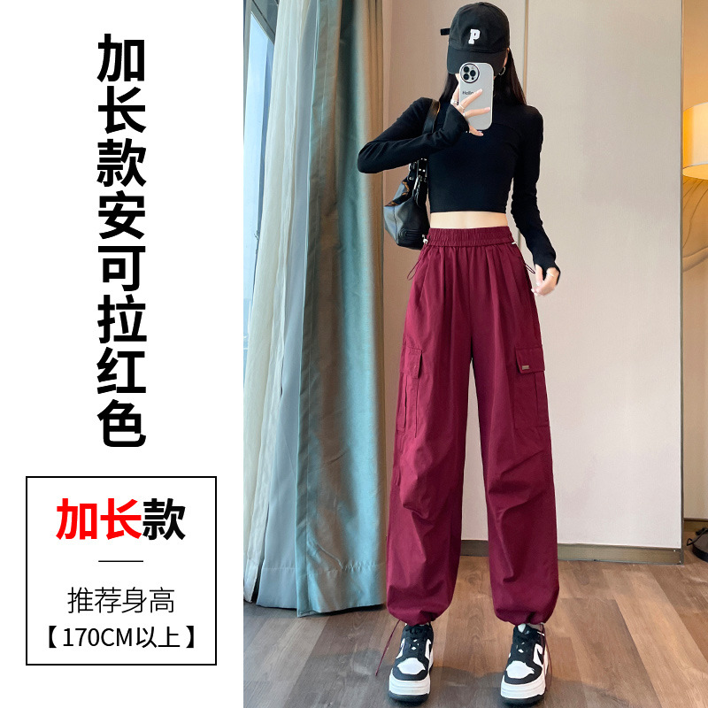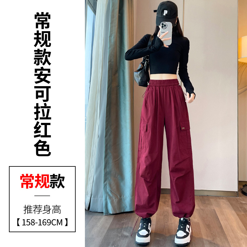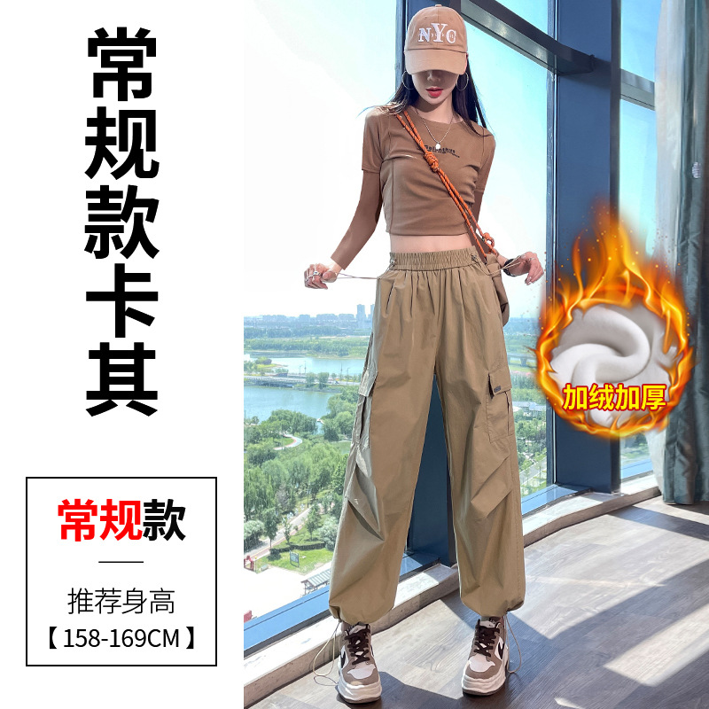 미국식 안코라 레드 쿠션 바지 여자 가을과 겨울 기모 두꺼운 발목 바지 타이트 웨이스트 투웨어 스포츠 등산 바지 트렌디