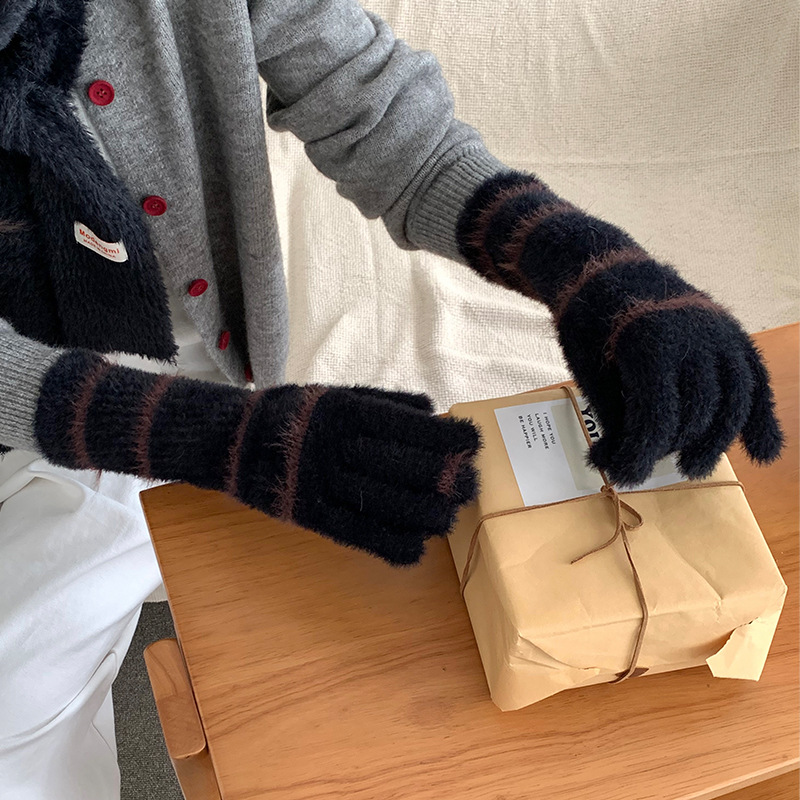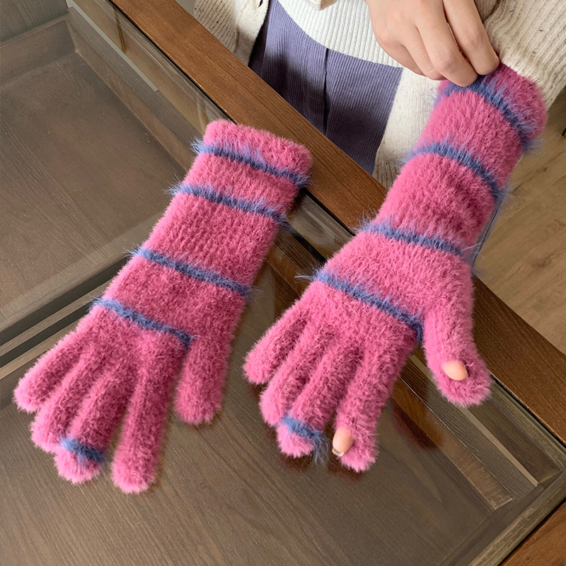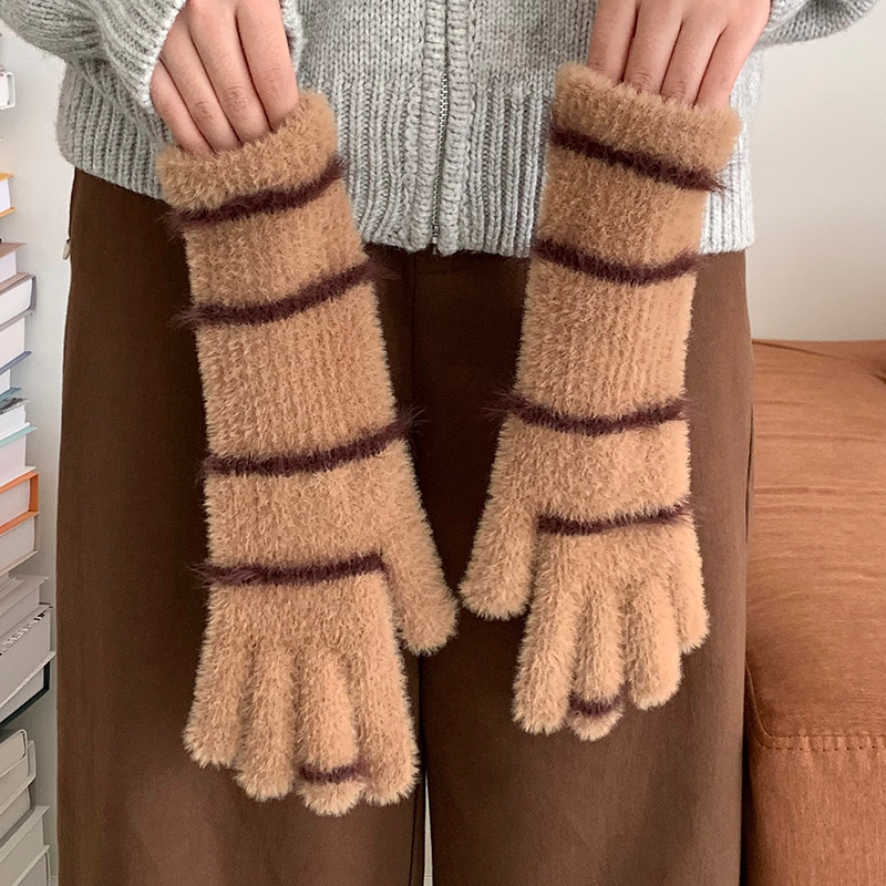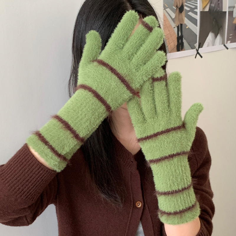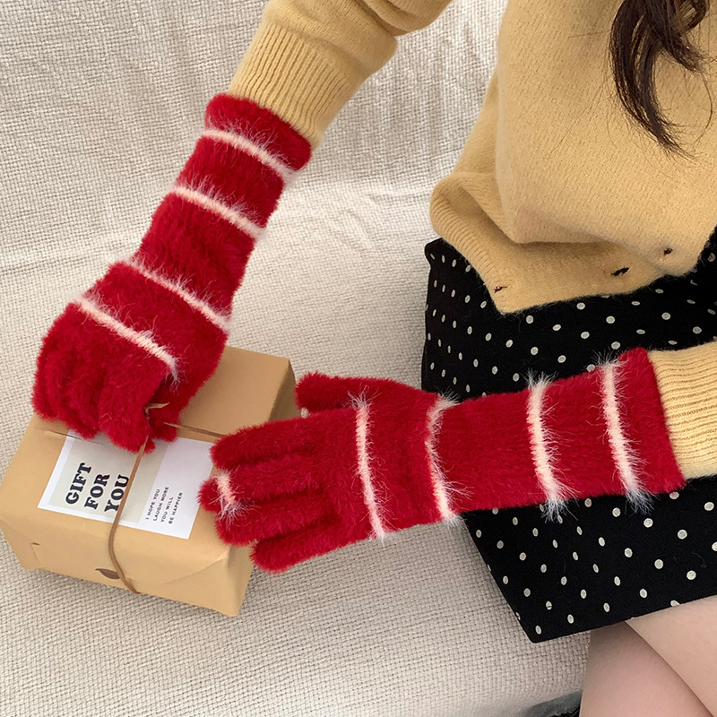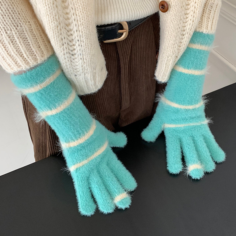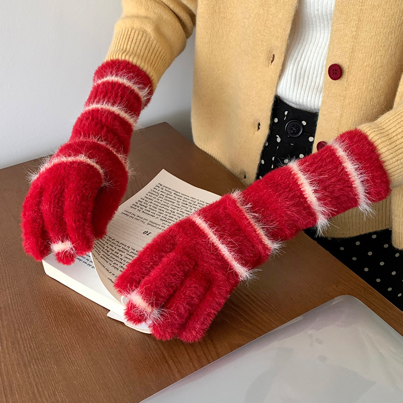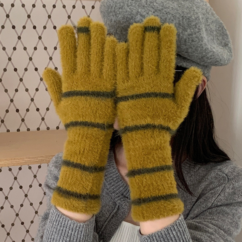 장갑 여성의 겨울 새 기모 두꺼운 줄무늬 터치 스크린 한국식 학생 커플 남자 따뜻한 한파 보호 장갑스토어 가기