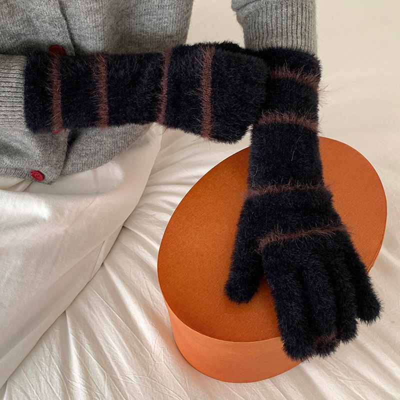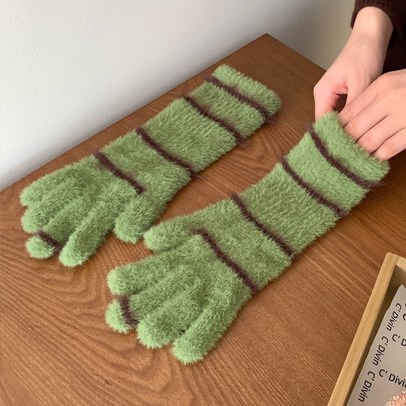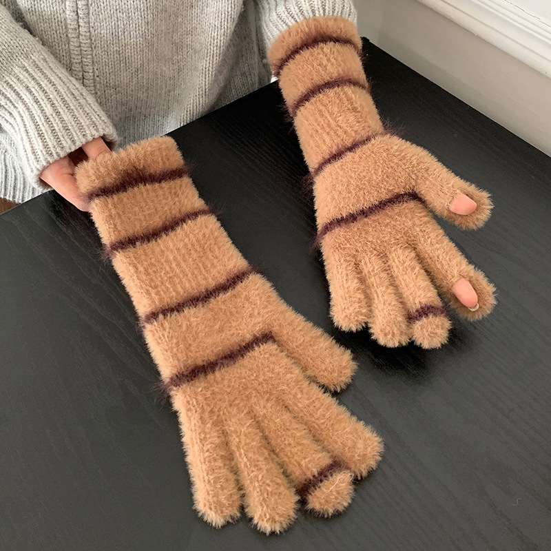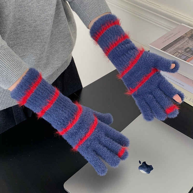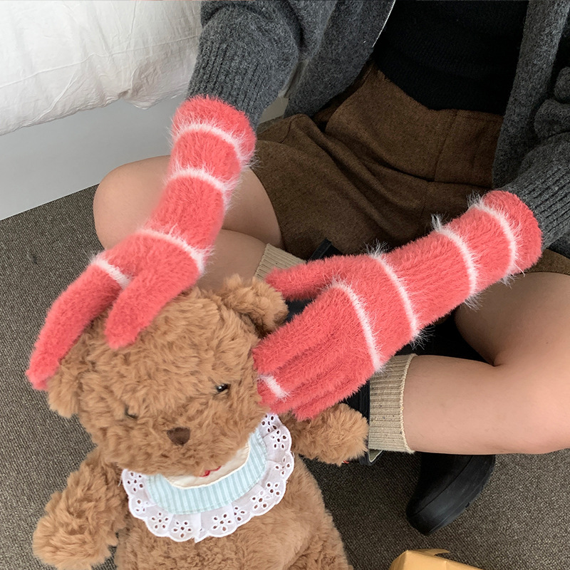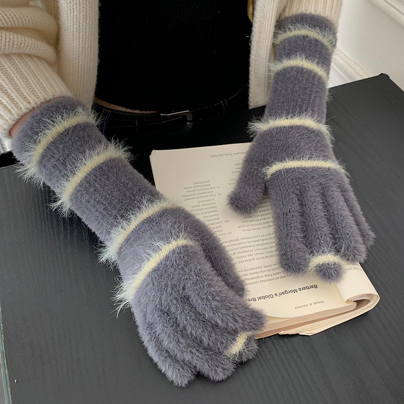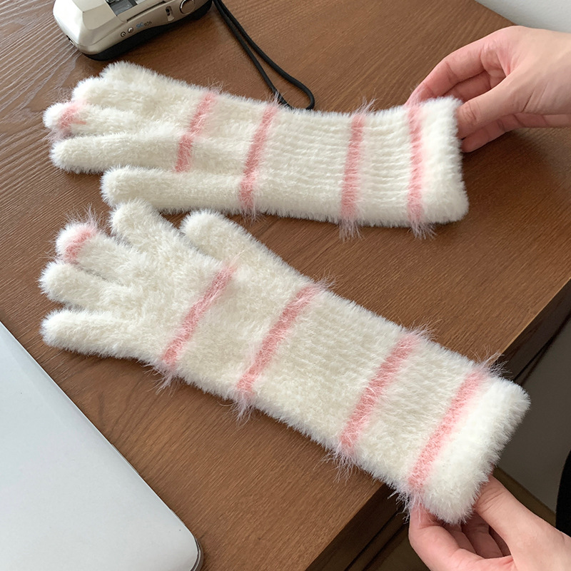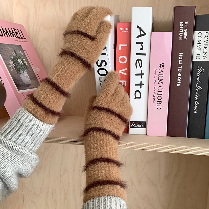 장갑 여성의 겨울 새 기모 두꺼운 줄무늬 터치 스크린 한국식 학생 커플 남자 따뜻한 한파 보호 장갑스토어 가기