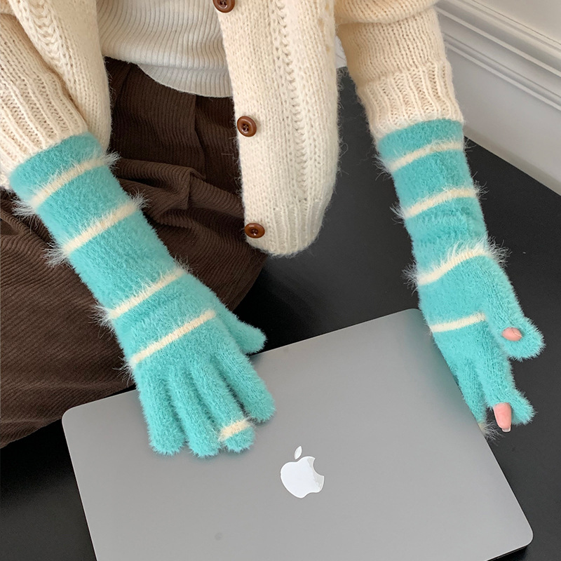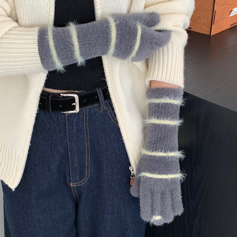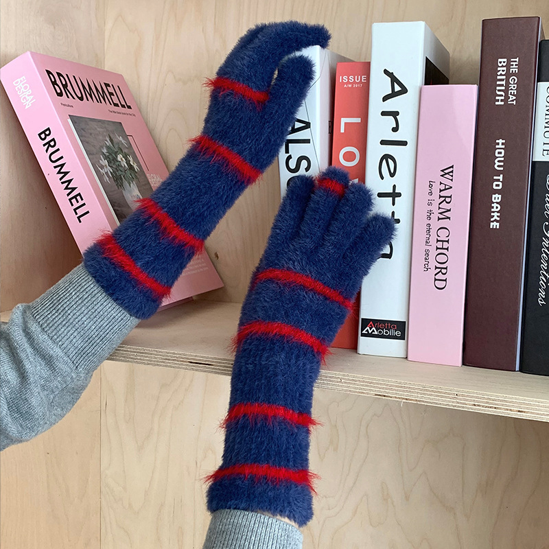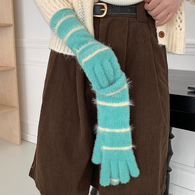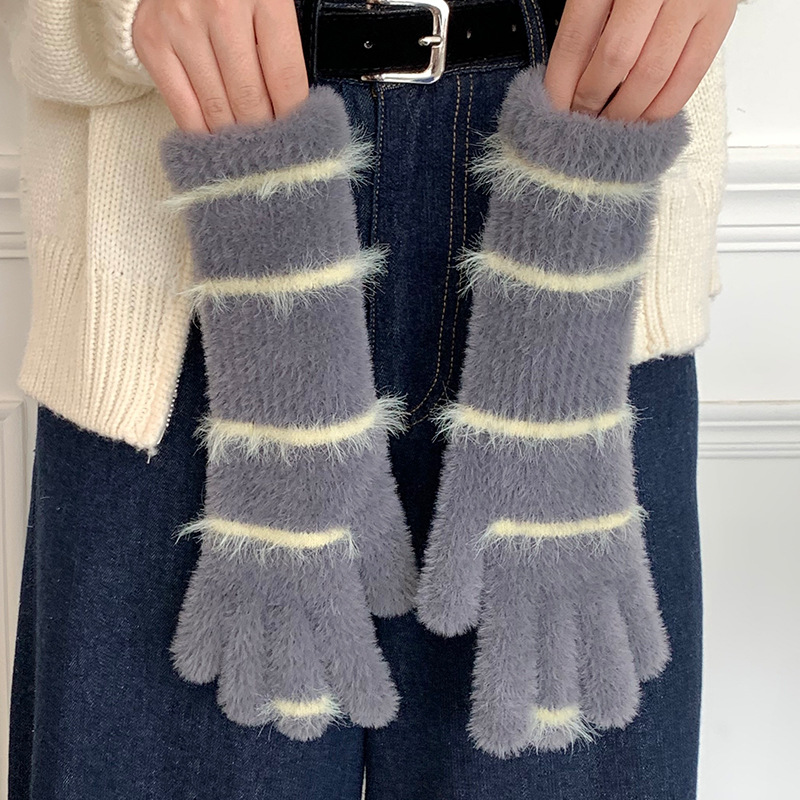 • 퍼리 스트라이프 장갑 - 레이크 블루
