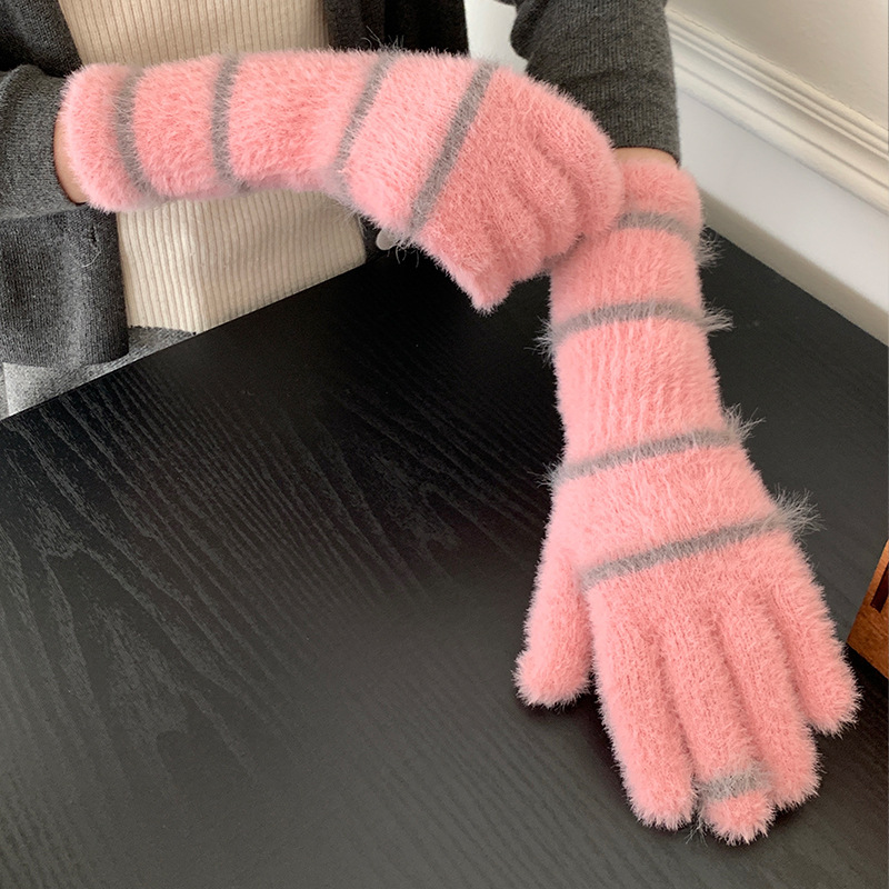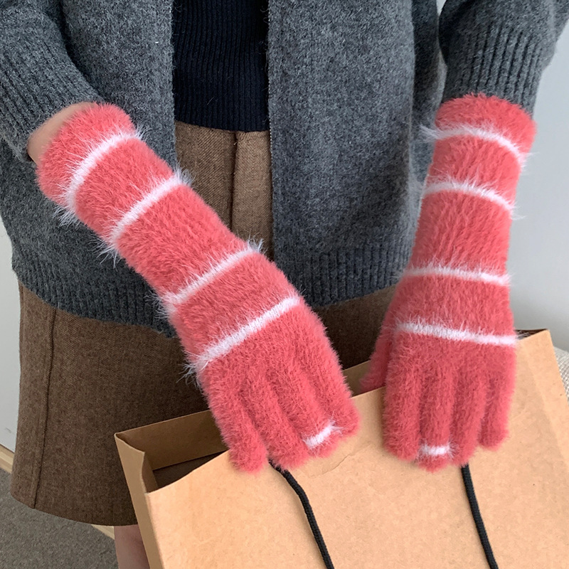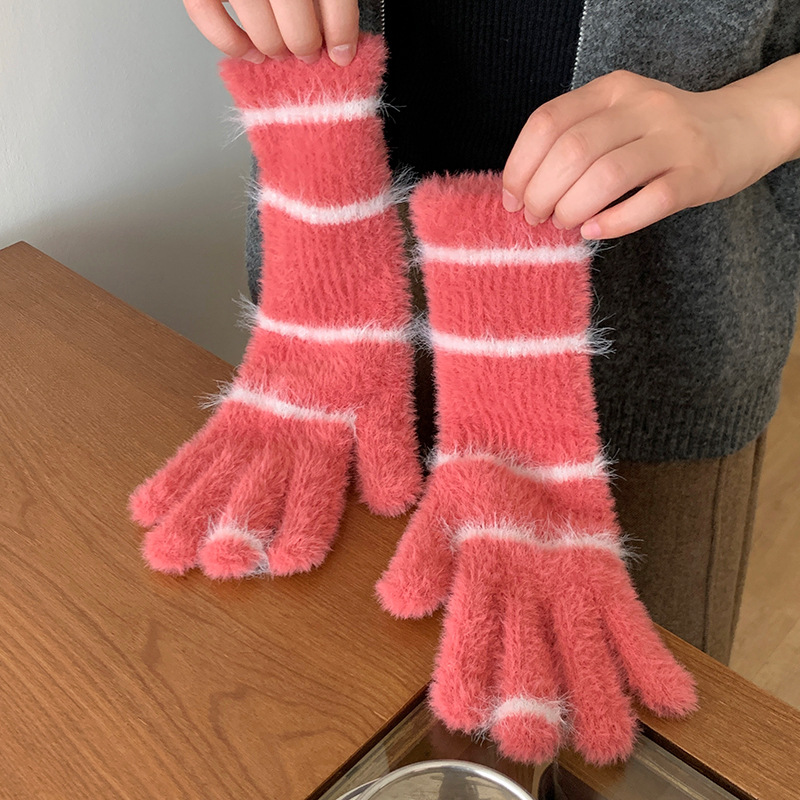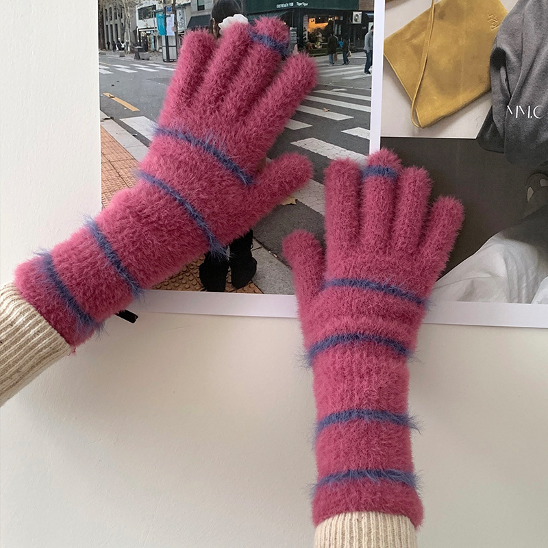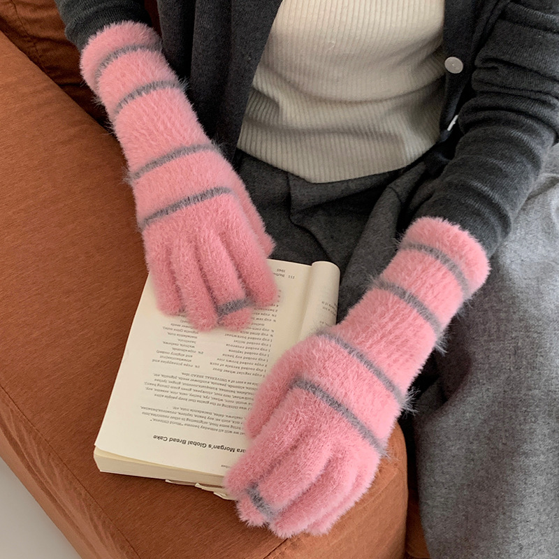 • 퍼리 스트라이프 장갑 - 라이트 핑크