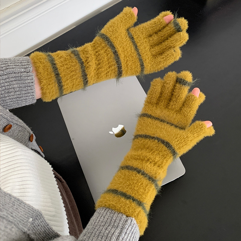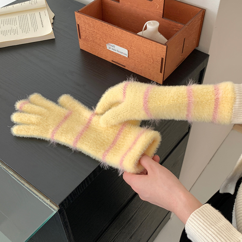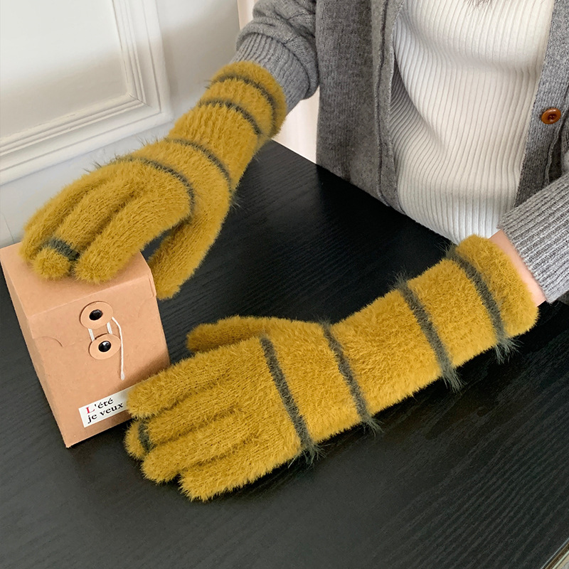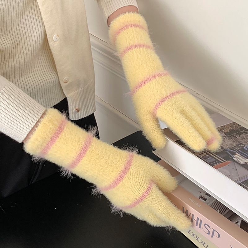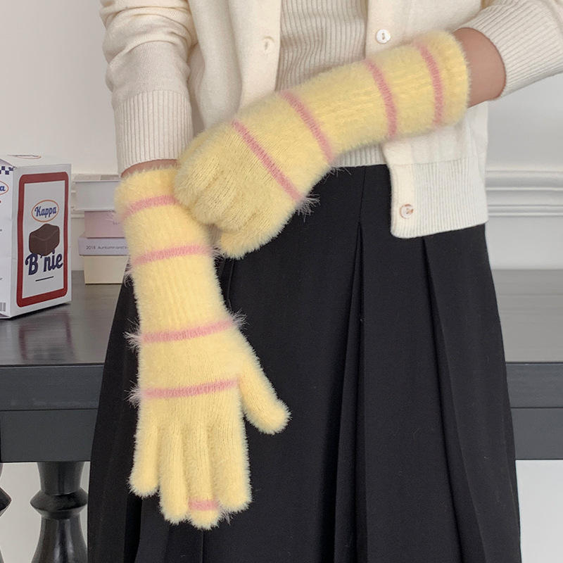 • 퍼리 스트라이프 장갑 - 구스 옐로우