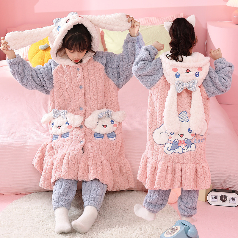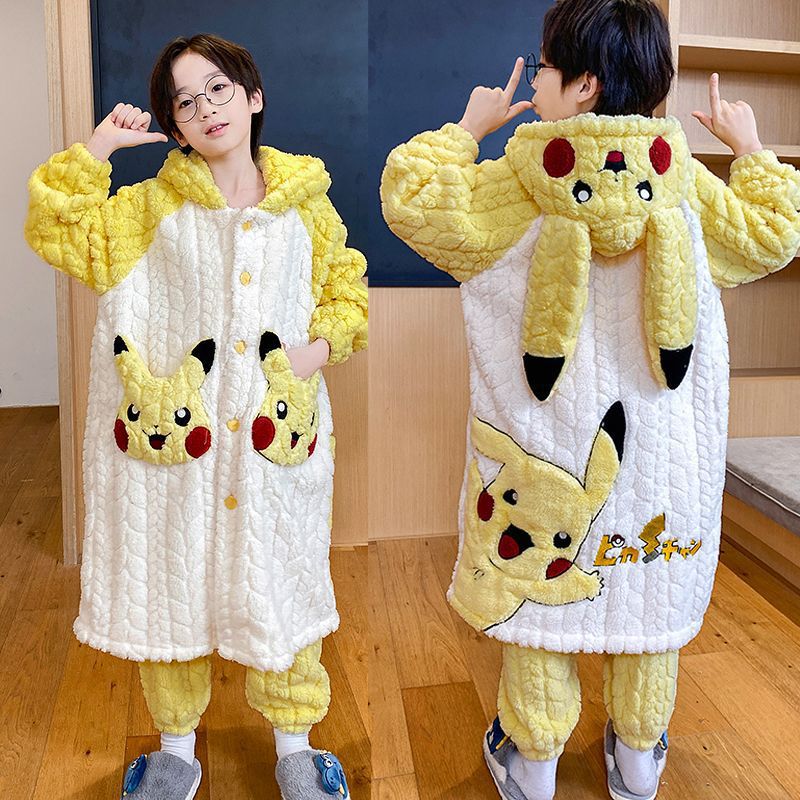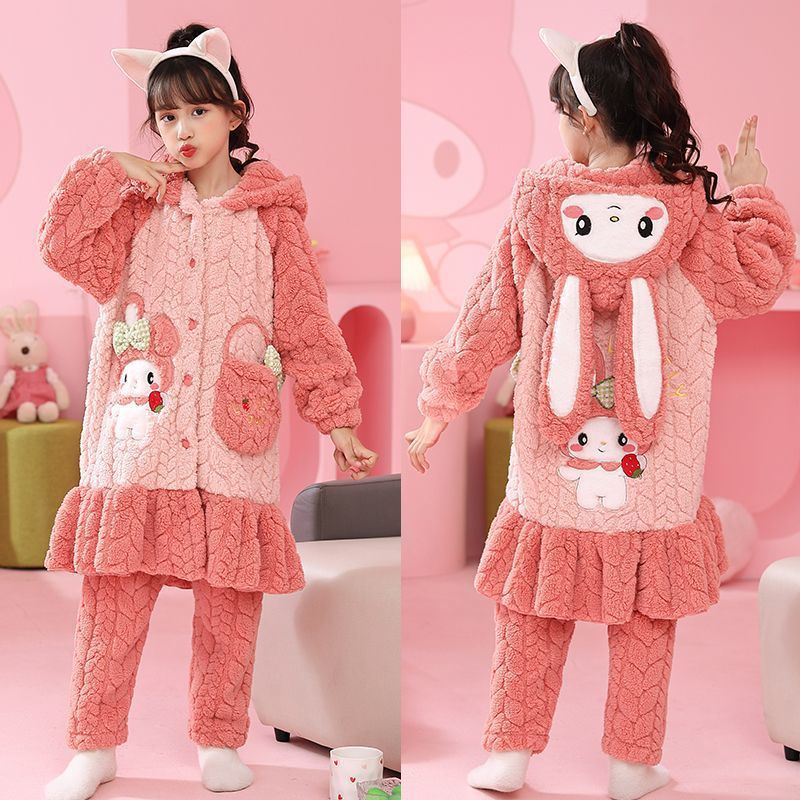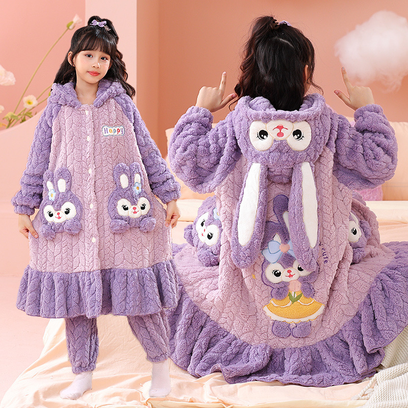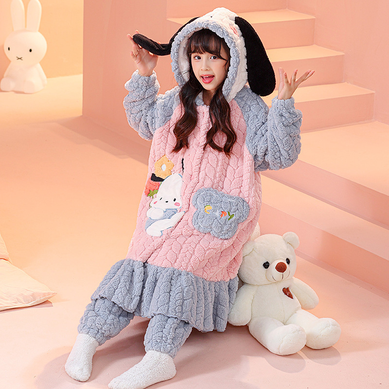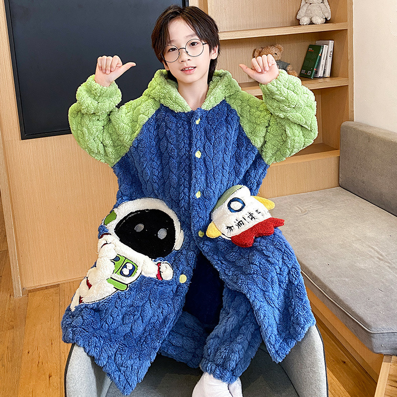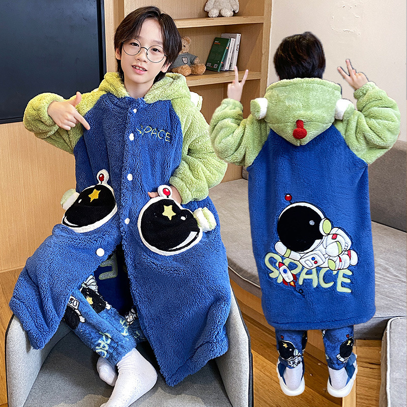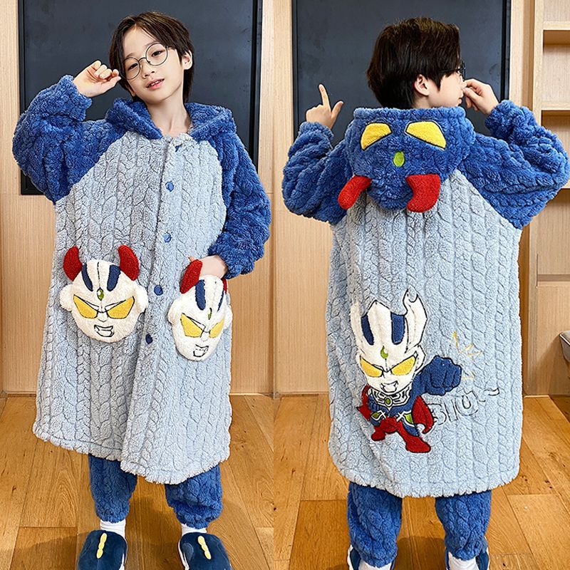 한국 스타일 가을 겨울 소년 소녀를위한 어린이 잠옷 두꺼운 자카드 봉제 어린이 만화 잠옷 바지 세트