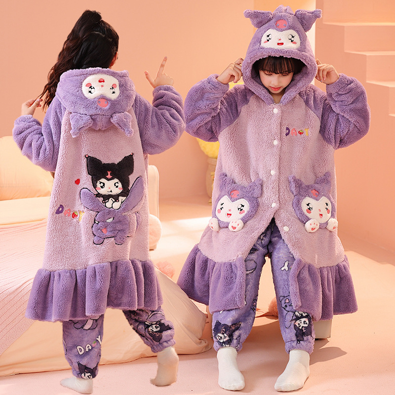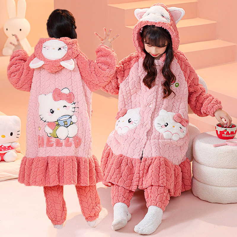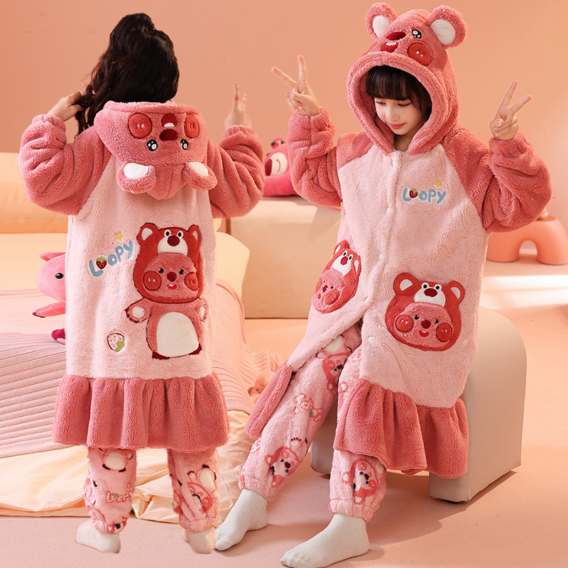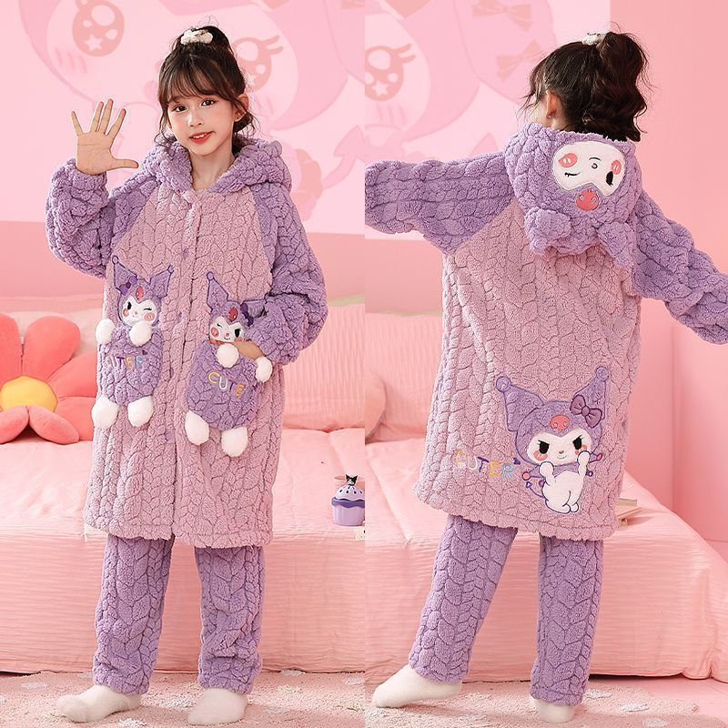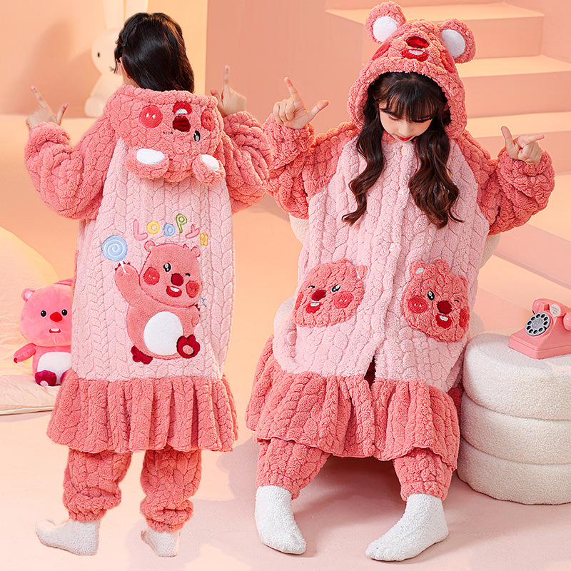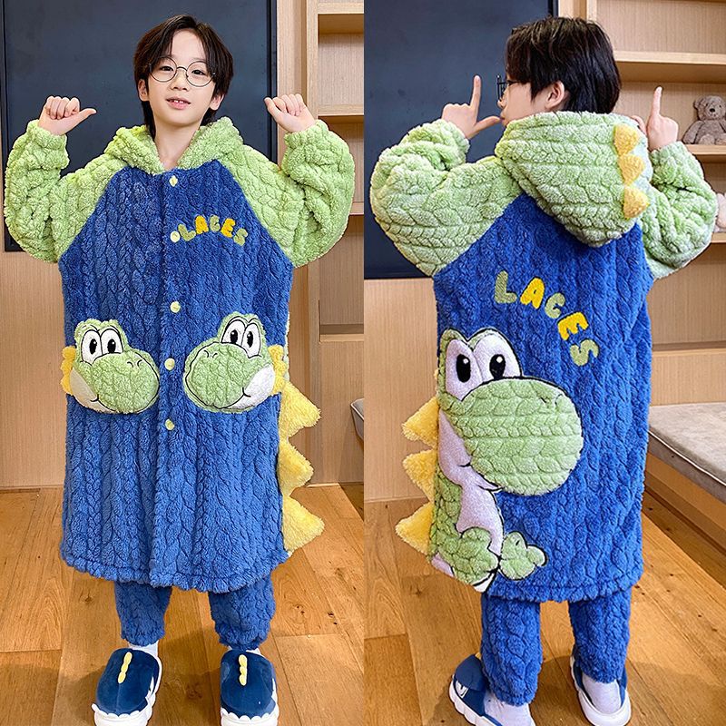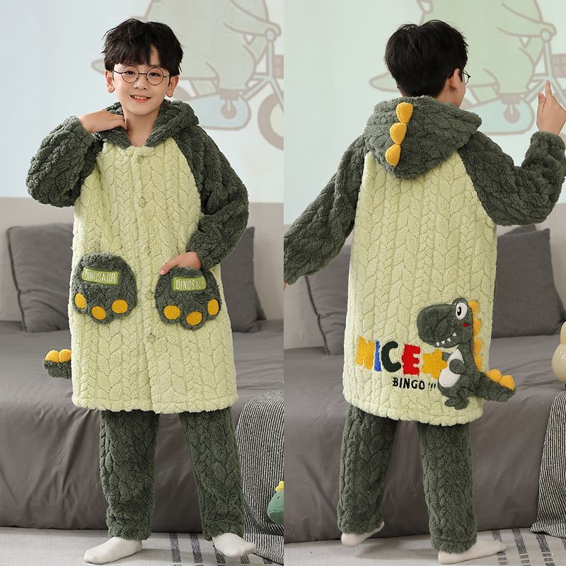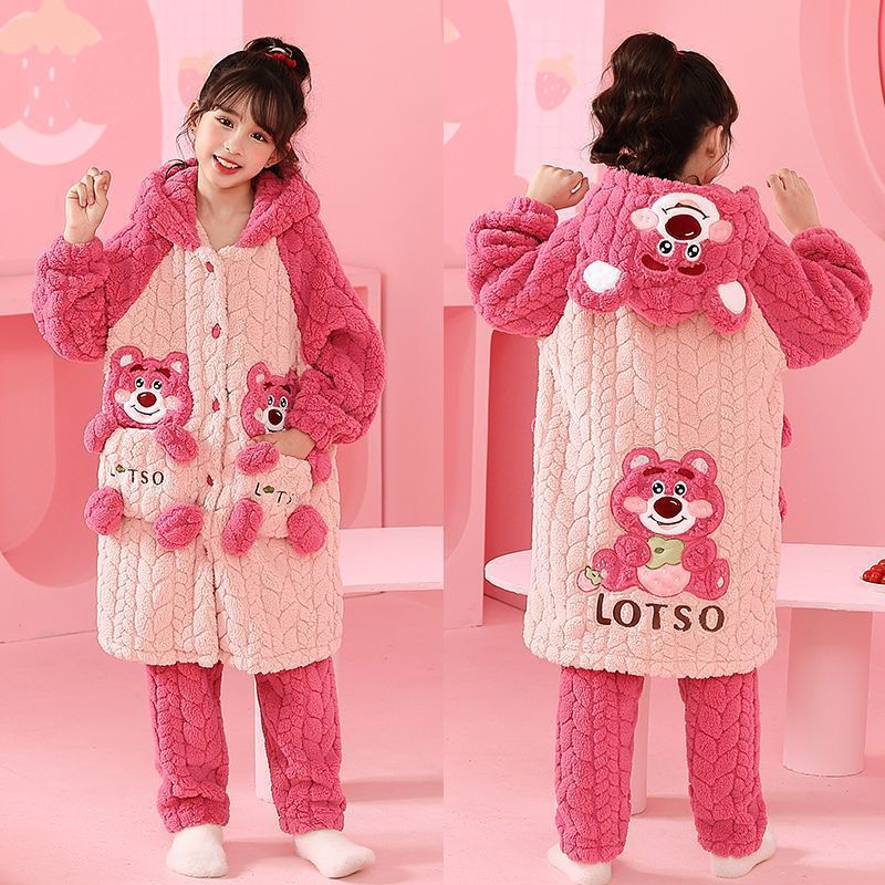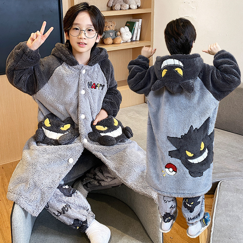 한국 스타일 가을 겨울 소년 소녀를위한 어린이 잠옷 두꺼운 자카드 봉제 어린이 만화 잠옷 바지 세트스토어 가기