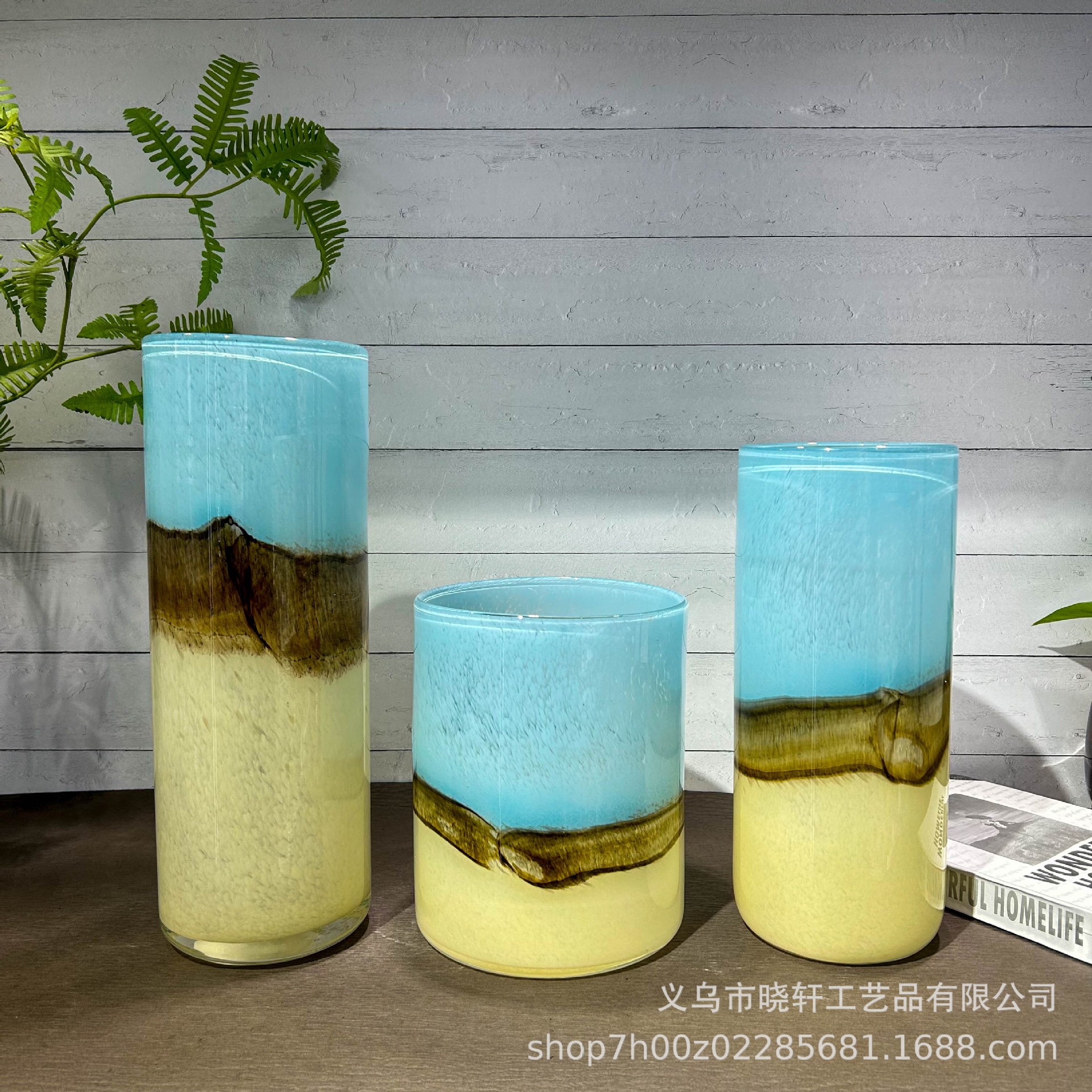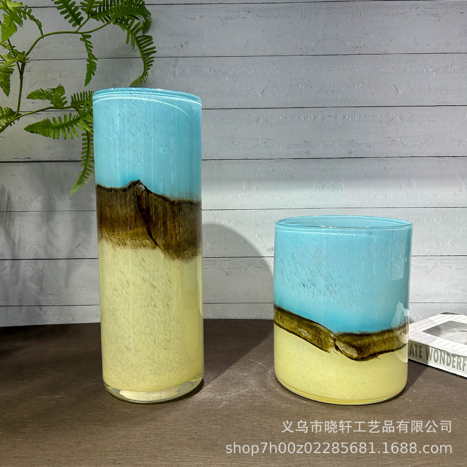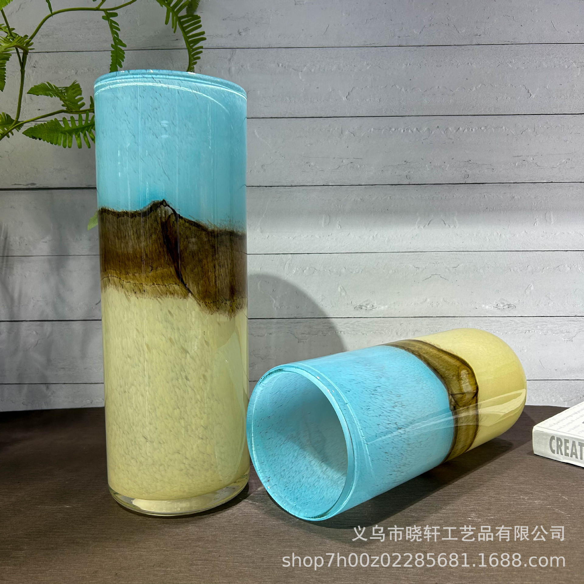 새로운 중국 스타일 더블 컬러 스트레이트 튜브 유약 꽃병 홈 다이닝 테이블 와인 캐비닛 하이 엔드 센스 장식품 유행 수경 꽃 배열