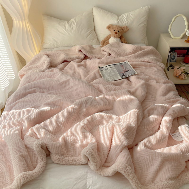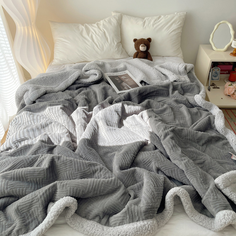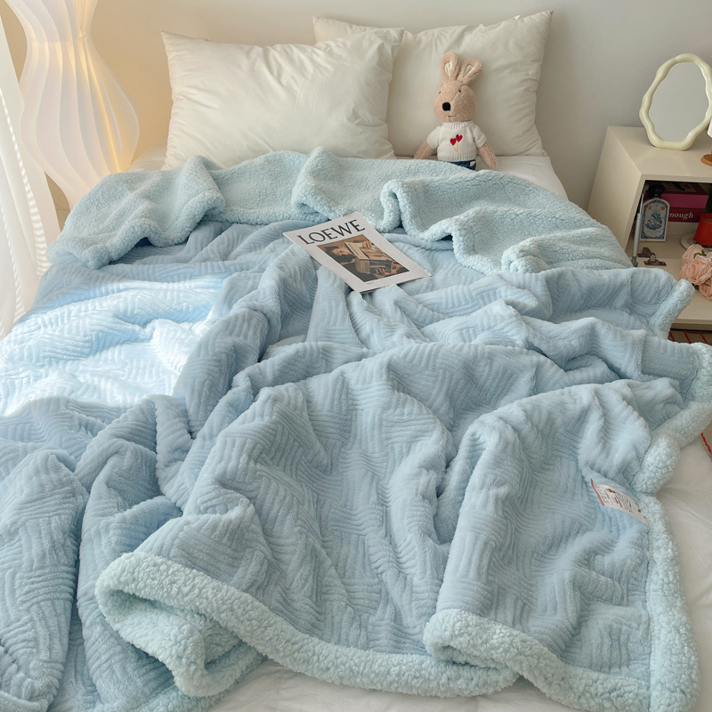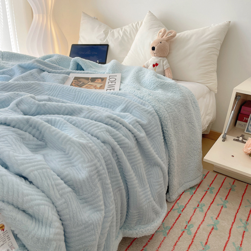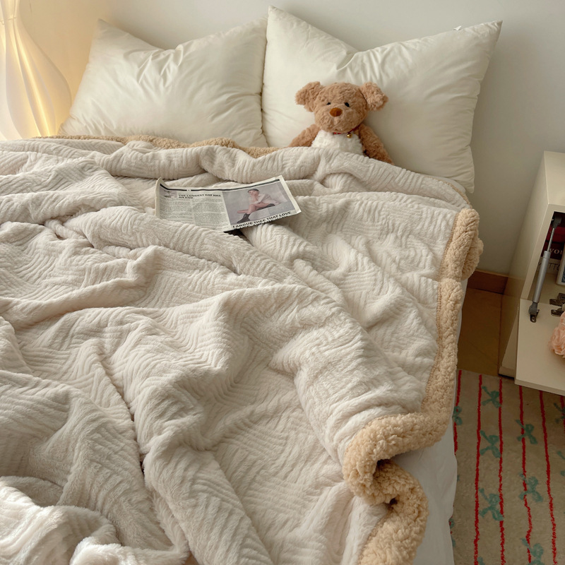 자카드 토끼 봉제 캐시미어 담요 간단한 스타일 솔리드 컬러 따뜻한 캐주얼 담요 작은 담요 한국 스타일 싱글 더블 담요스토어 가기