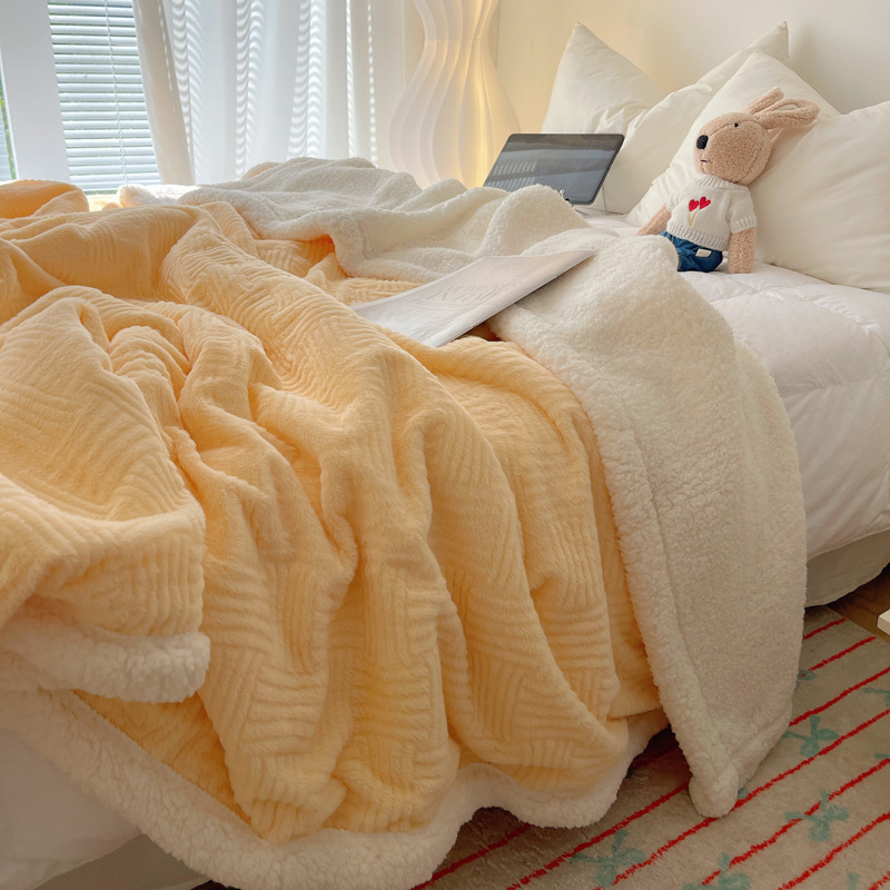 자카드 토끼 봉제 캐시미어 담요 간단한 스타일 솔리드 컬러 따뜻한 캐주얼 담요 작은 담요 한국 스타일 싱글 더블 담요