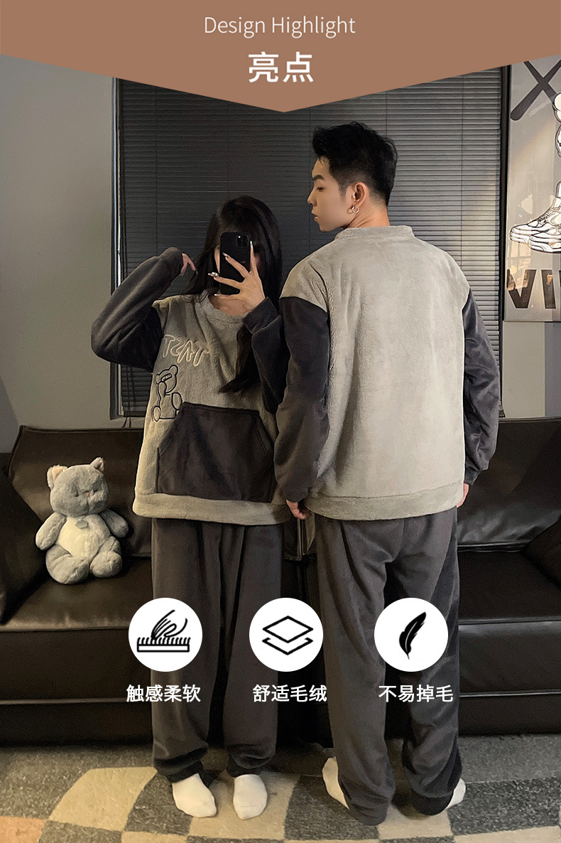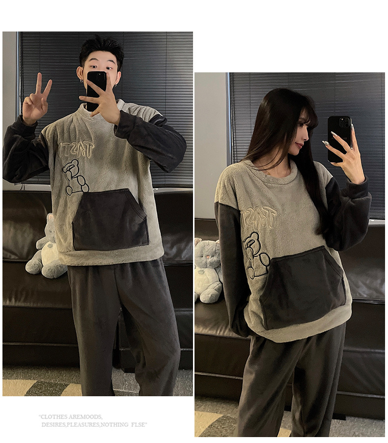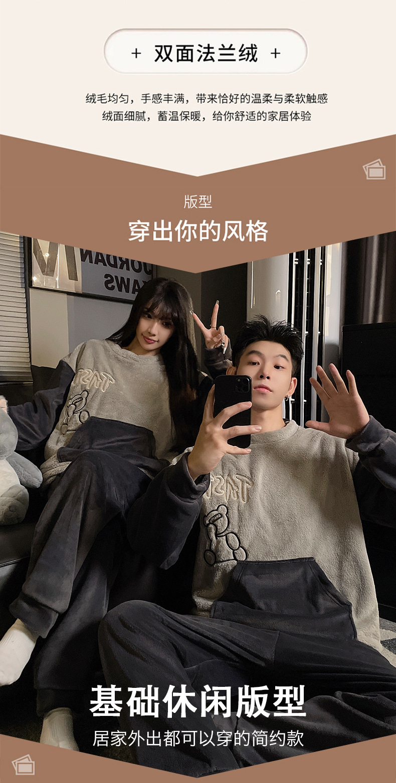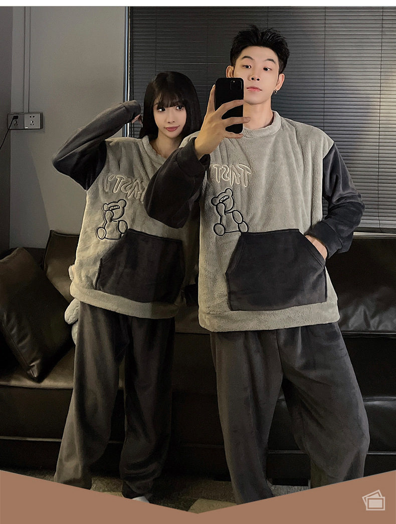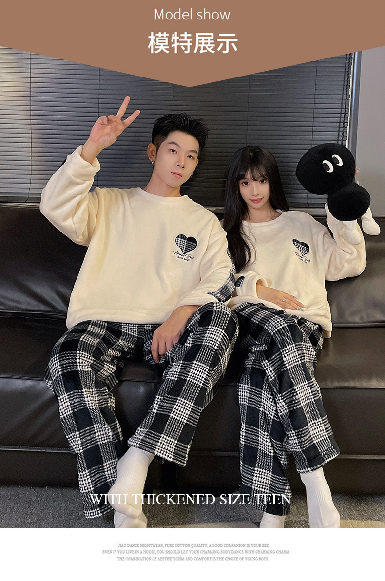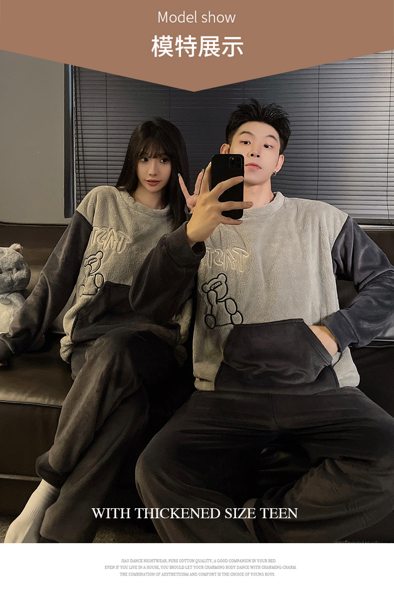 가을과 겨울 산호 양털 커플 잠옷 여자 기모 두꺼운 따뜻한 긴팔 겨울 남자와 여자의 플란넬 홈 옷스토어 가기