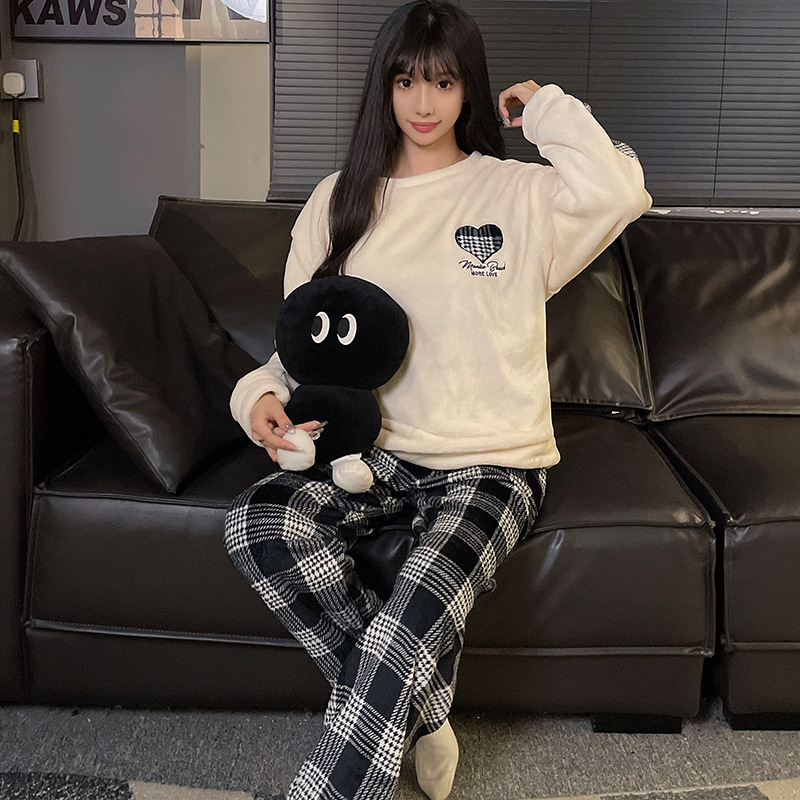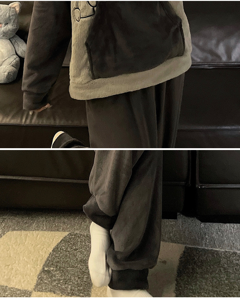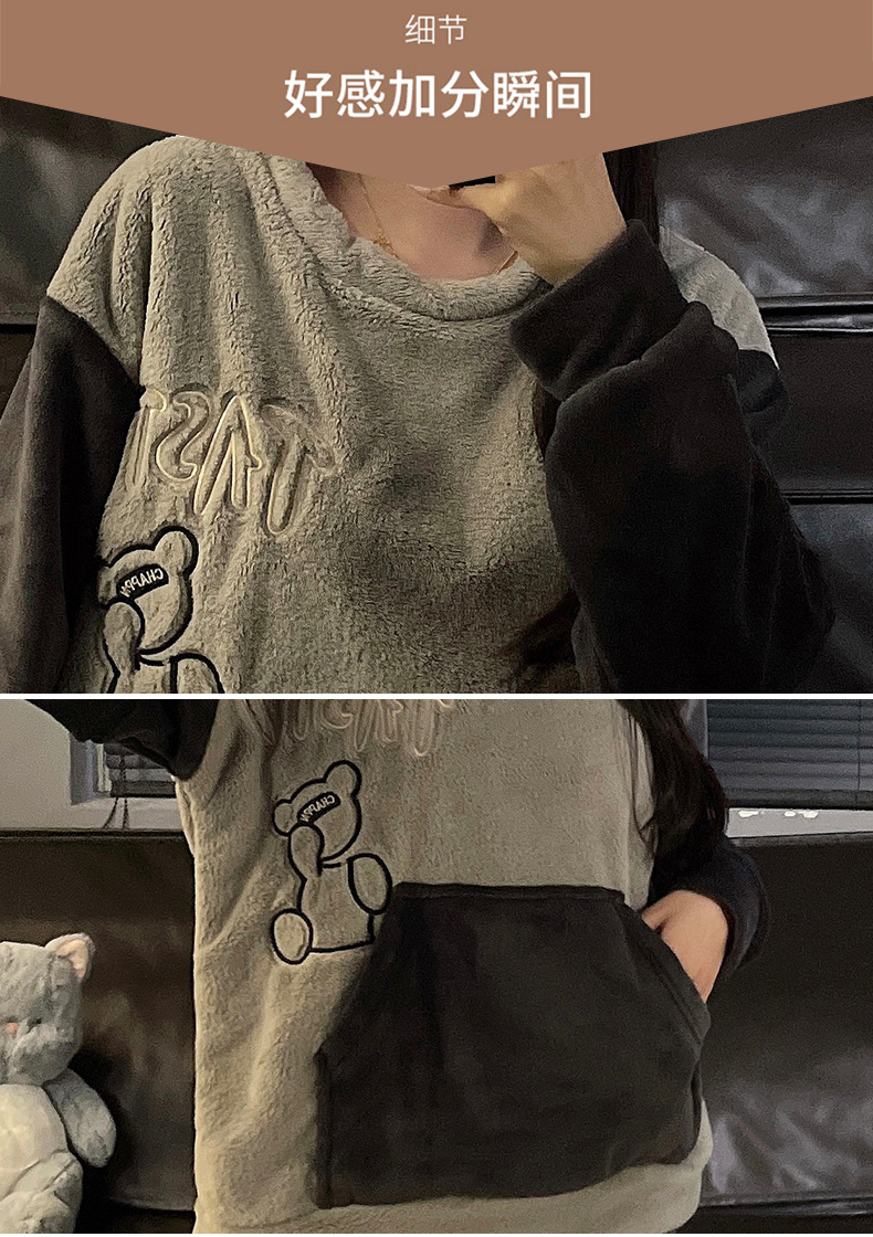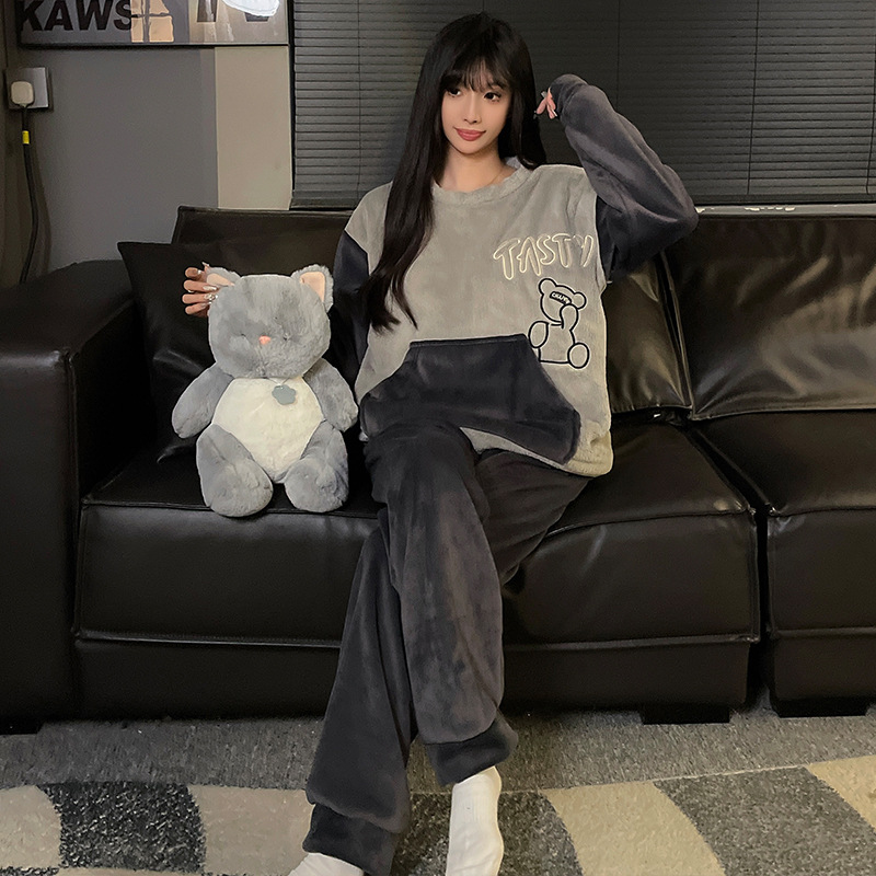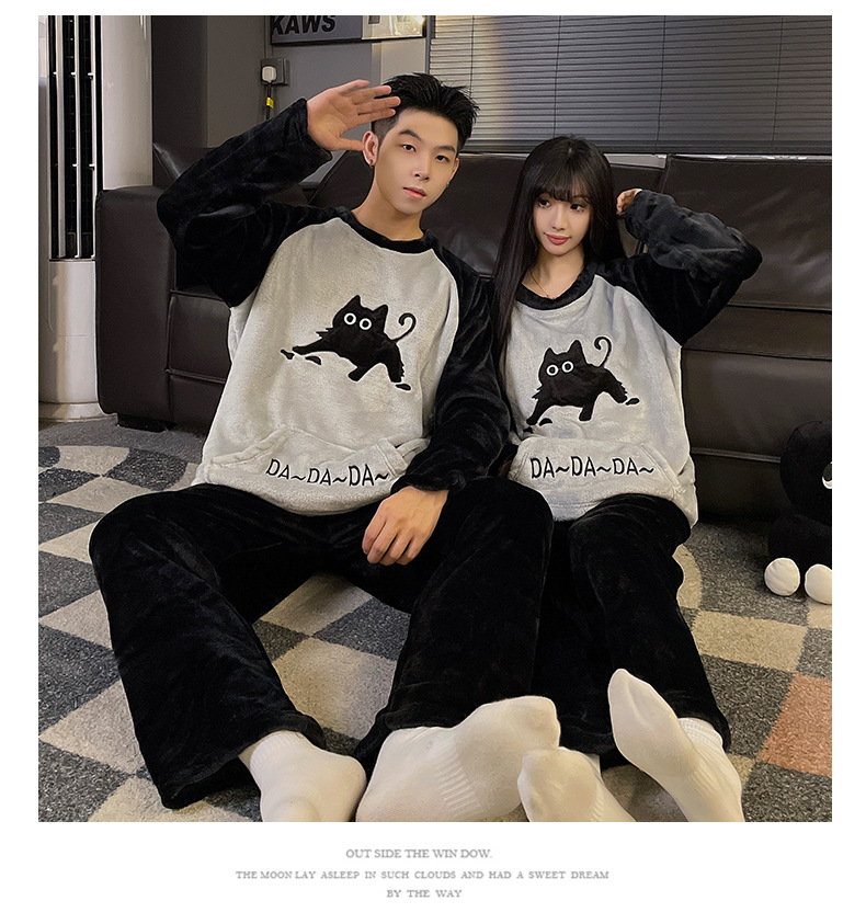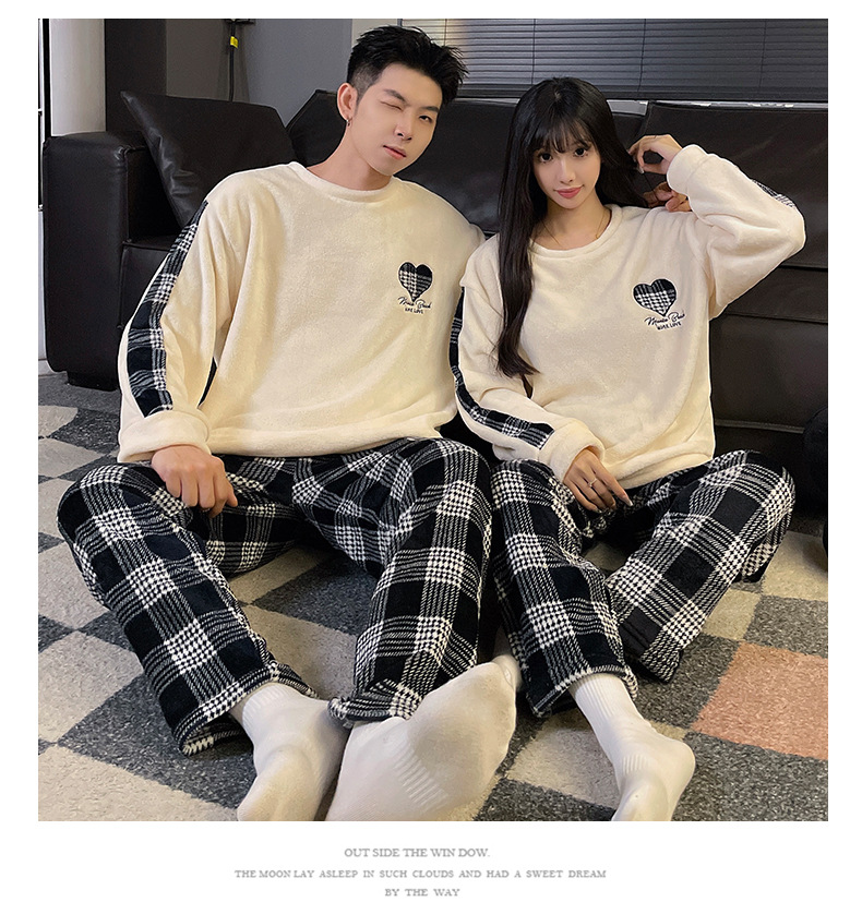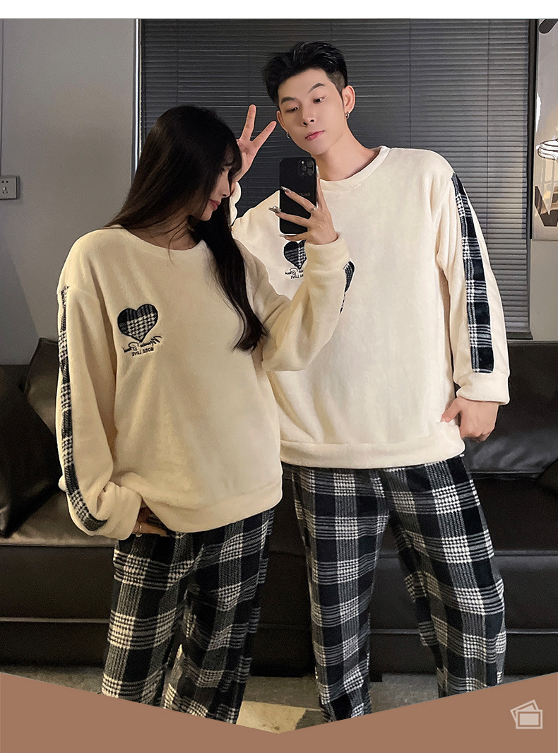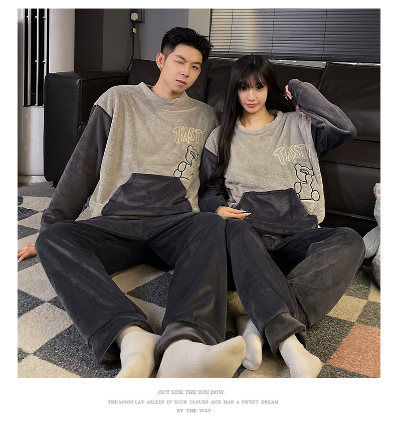 가을과 겨울 산호 양털 커플 잠옷 여자 기모 두꺼운 따뜻한 긴팔 겨울 남자와 여자의 플란넬 홈 옷스토어 가기