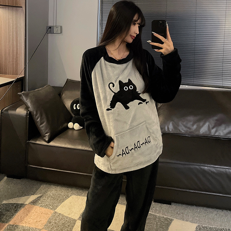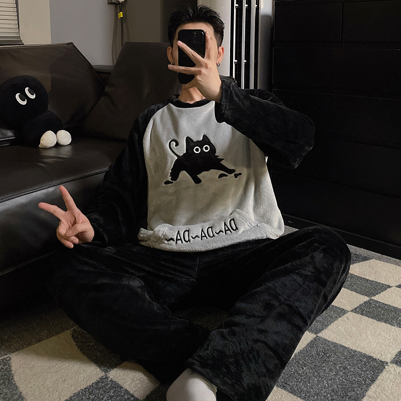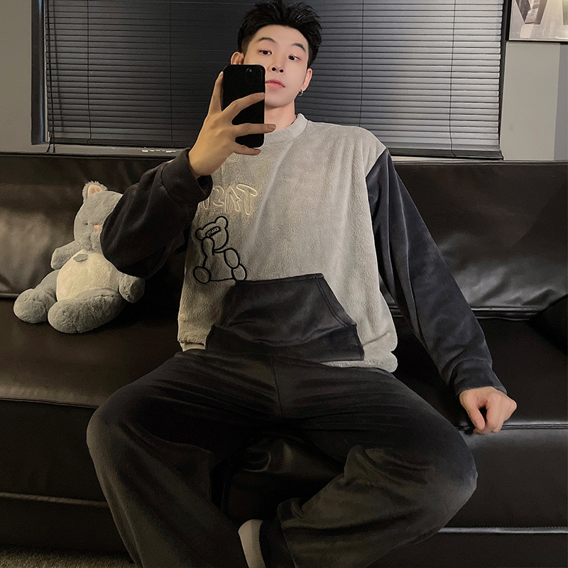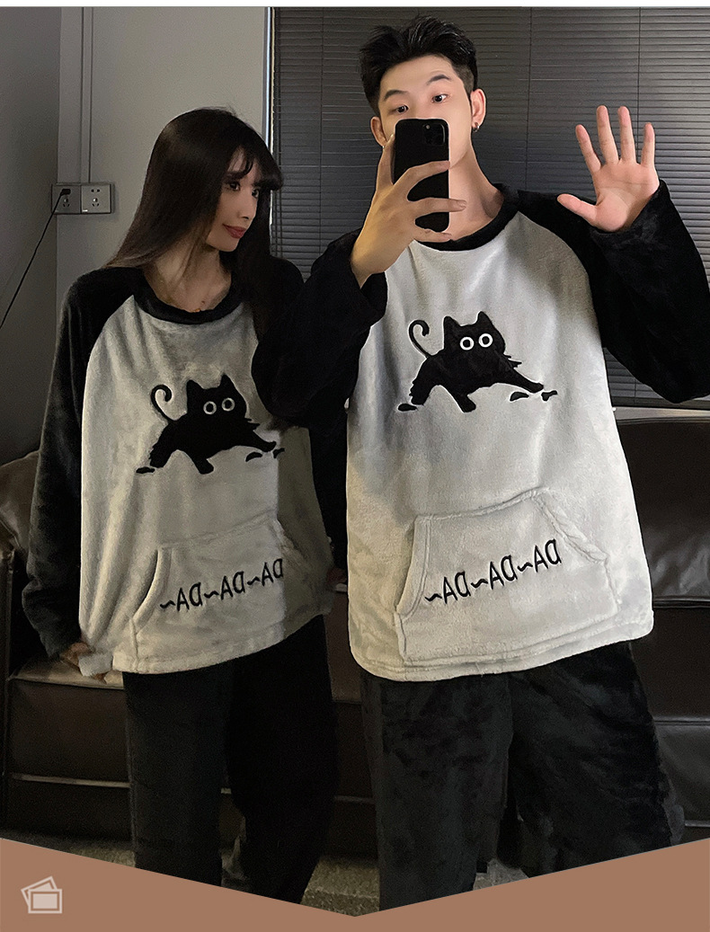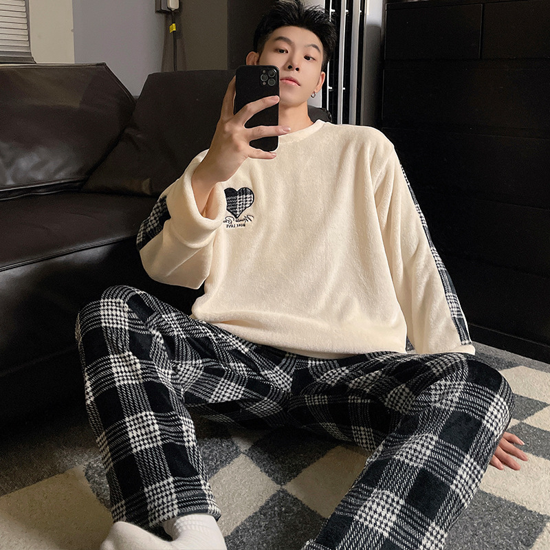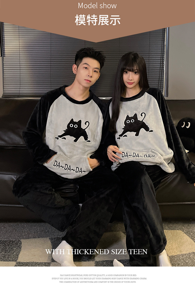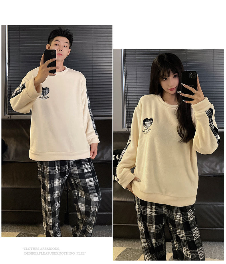 가을과 겨울 산호 양털 커플 잠옷 여자 기모 두꺼운 따뜻한 긴팔 겨울 남자와 여자의 플란넬 홈 옷