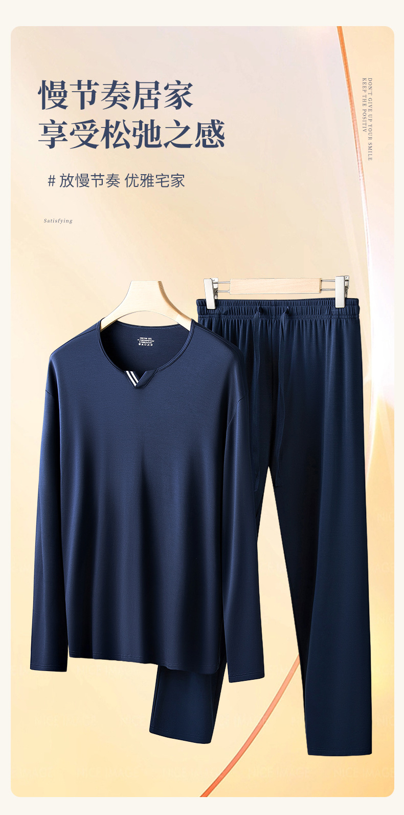 [카운터 동일 스타일] 봄 여름 신작 크로스보더 양면 80수 모달 남성 잠옷 세트 얇은 홈웨어
