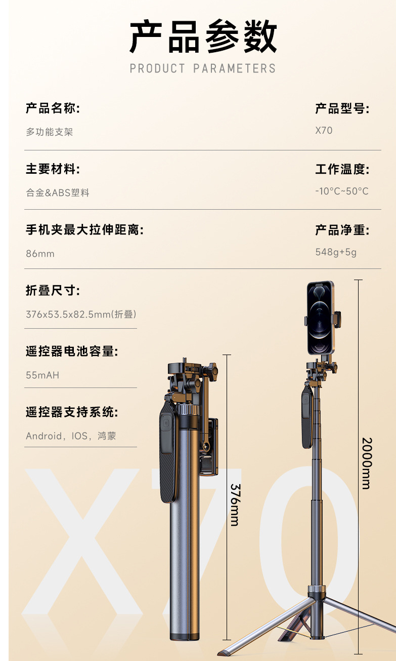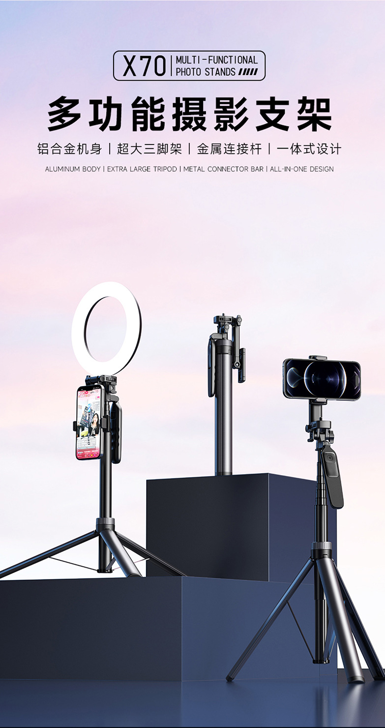 새로운 X70 블루투스 셀카 스틱 라이브 안티 쉐이크 PTZ 인터페이스 뷰티 지속 바닥 휴대 전화 스탠드 삼각대