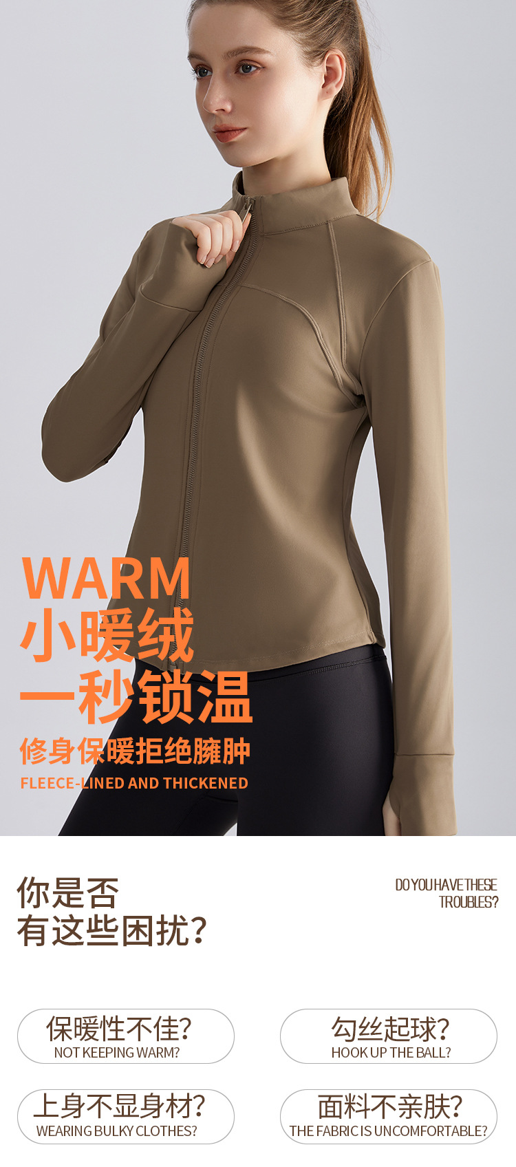 웨이만 가을 겨울 기모 요가 자켓 여성용 허리 슬림핏 스탠드 칼라 지퍼 요가복 피트니스 보온 스포츠 자켓