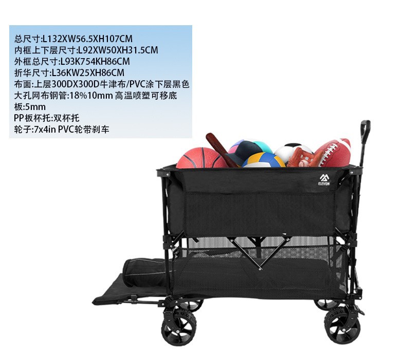 야외 캠핑카 이중층 카트, 판매용 손수레, 캠핑용 접이식 소형 트레일러, 대용량 이중층스토어 가기