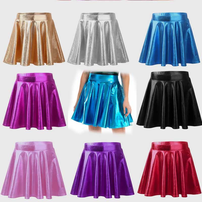 아마존 해외 여성용 짧은 치마 광택 메탈릭 페이턴트 가죽 금박 미니 우산 스커트 클럽 페스티벌 공연용 스커트스토어 가기