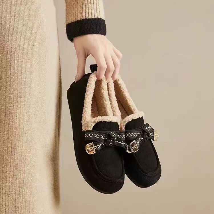 캐주얼 따뜻한 마오 마오 신발 여성의 2024 년 새 겨울 기모 코튼 신발 외부 착용 가방 힐 슬립 온 로퍼