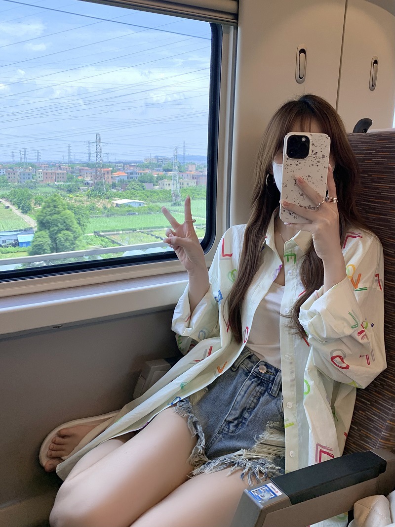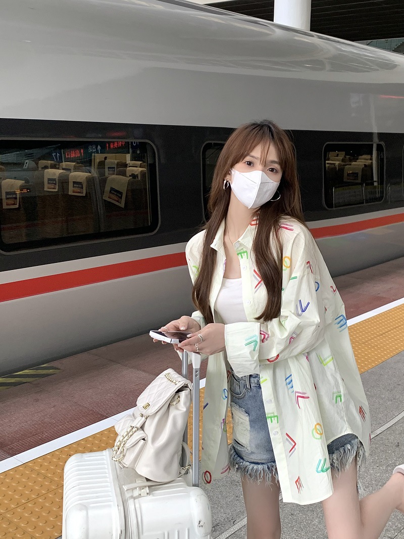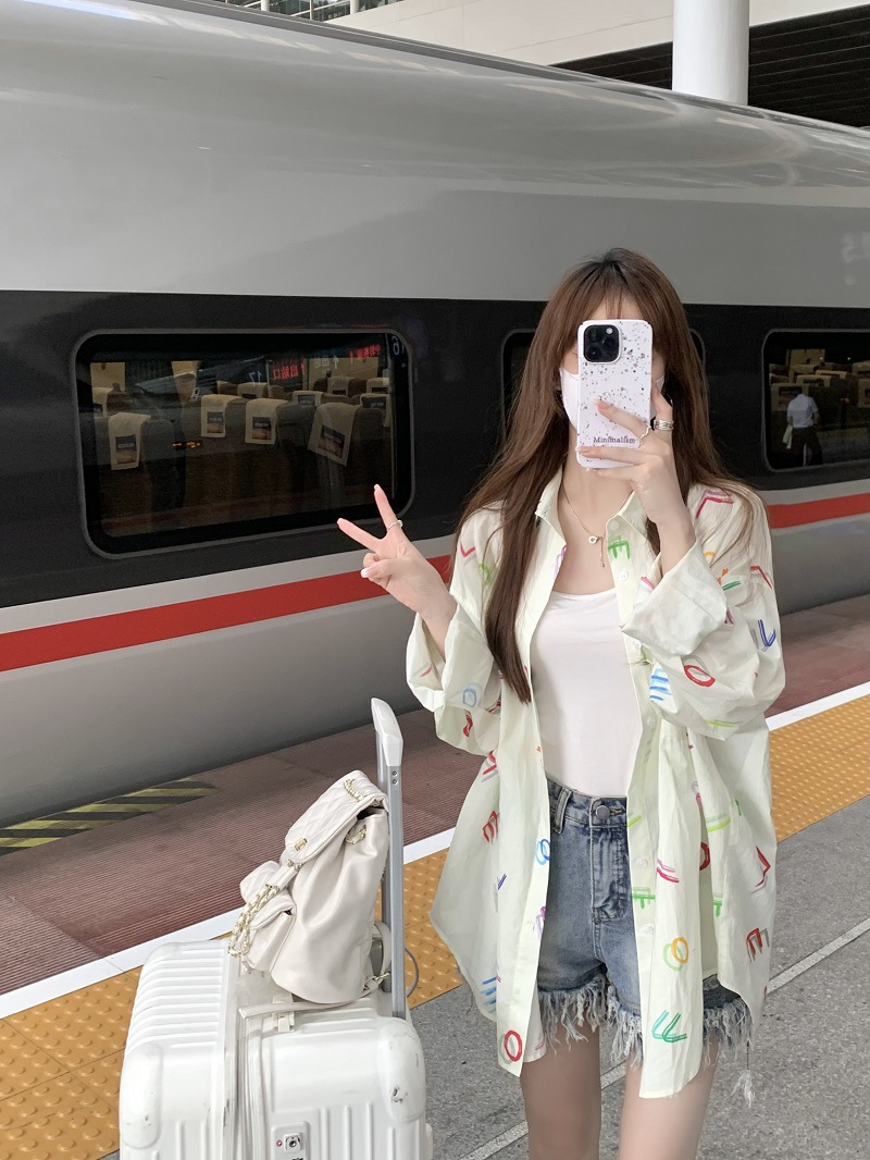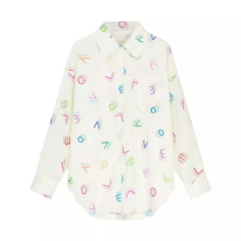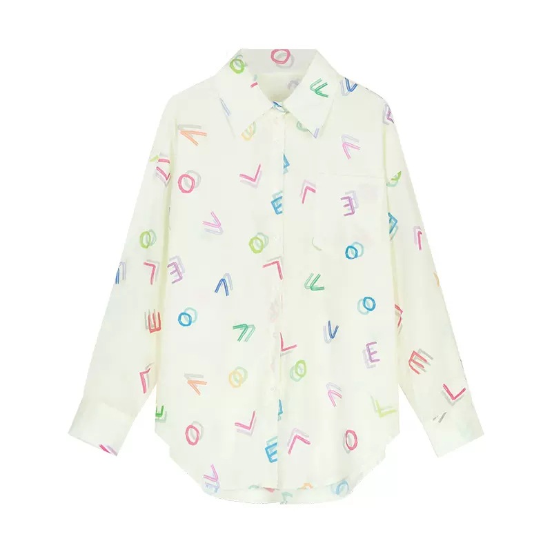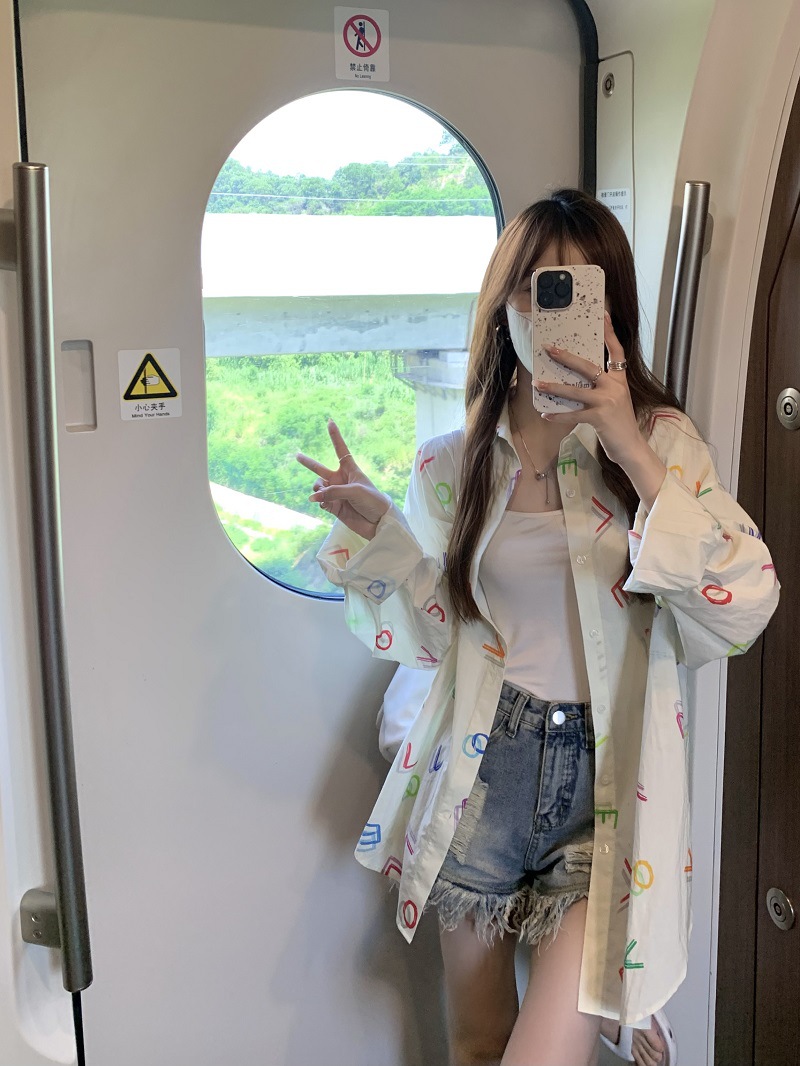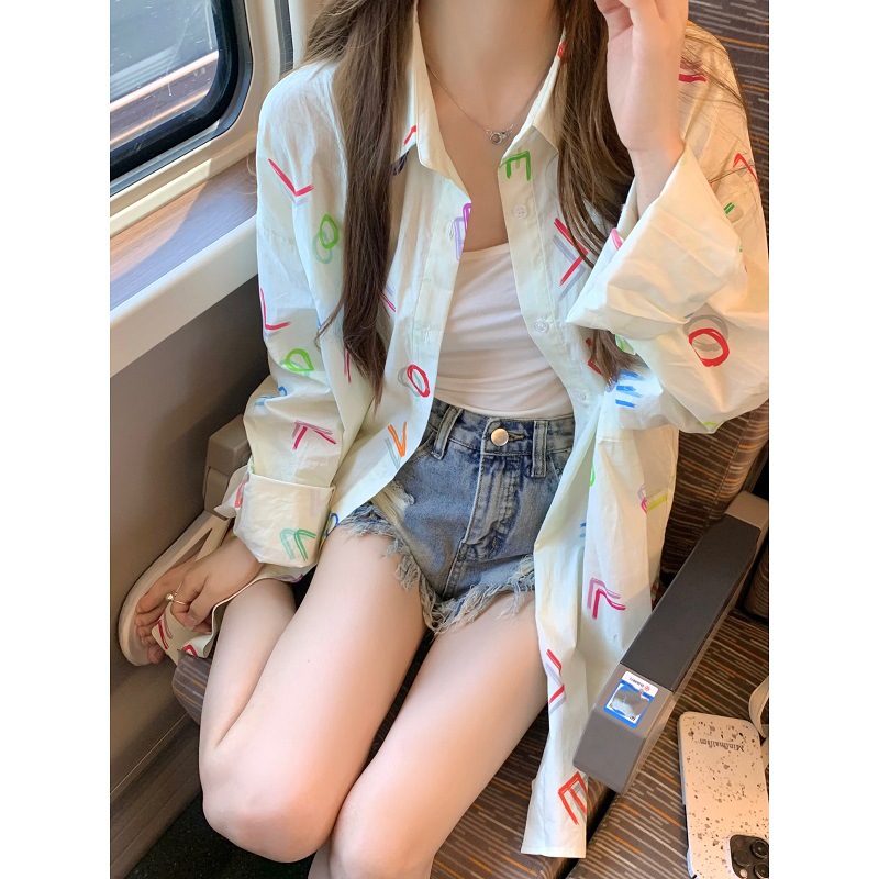 독특한 낙서 인쇄 셔츠 게으른 스타일 긴팔 셔츠 재킷 여성의 봄과 여름 느슨한 슬리밍 캐주얼 태양 보호 탑