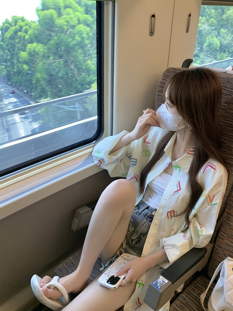 독특한 낙서 인쇄 셔츠 게으른 스타일 긴팔 셔츠 재킷 여성의 봄과 여름 느슨한 슬리밍 캐주얼 태양 보호 탑스토어 가기