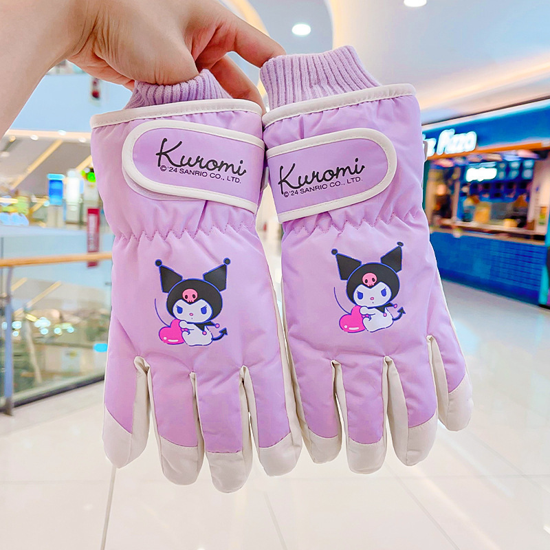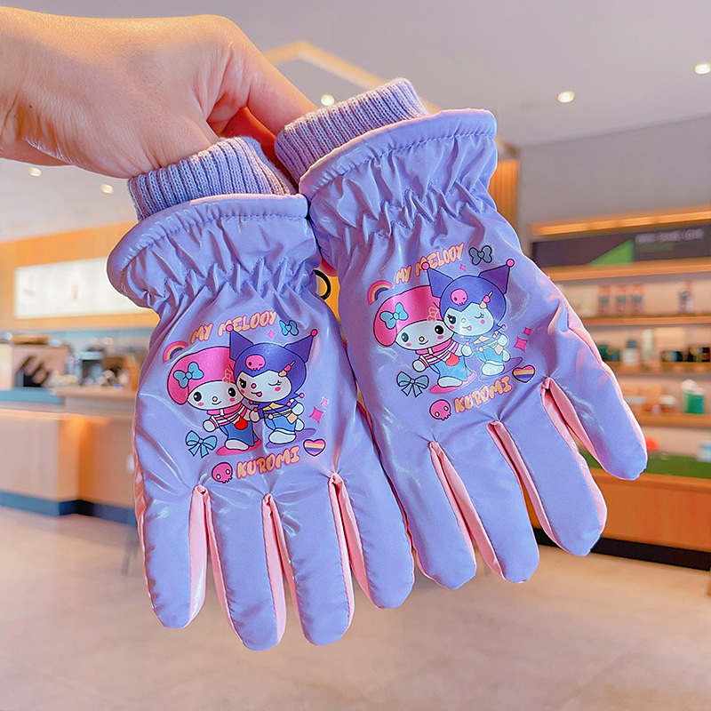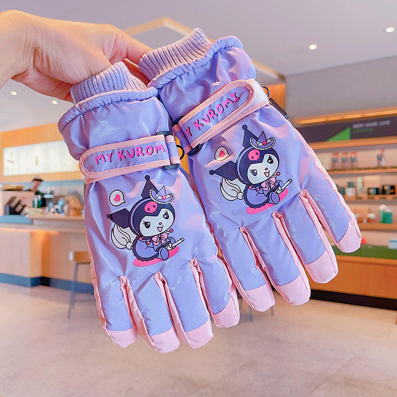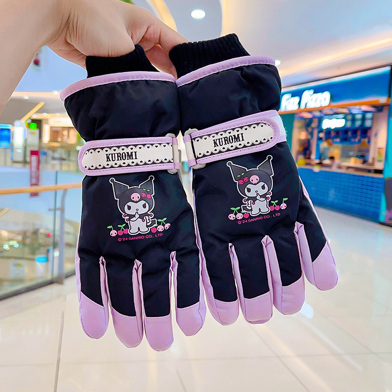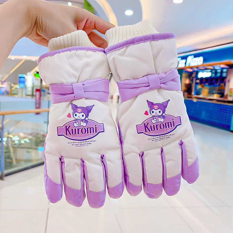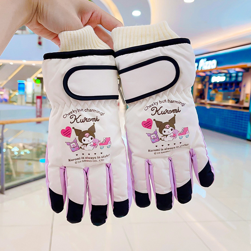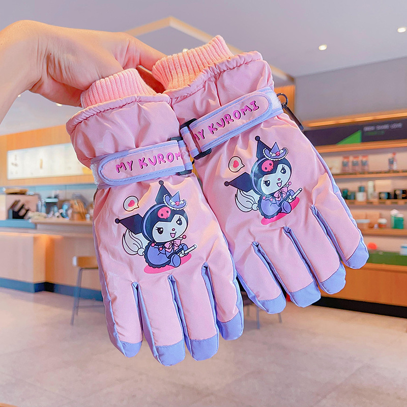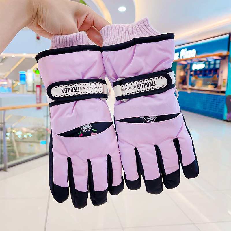 산리오 쿨로미 어린이 스키 장갑 겨울 아기 귀여운 따뜻한 기모 두꺼운 소녀 눈 방수